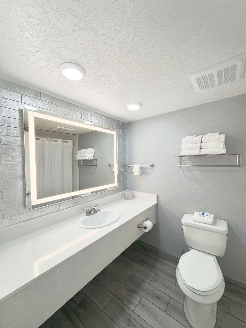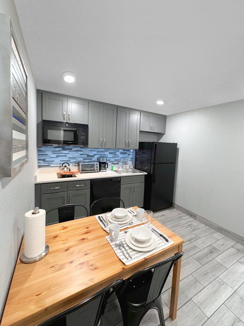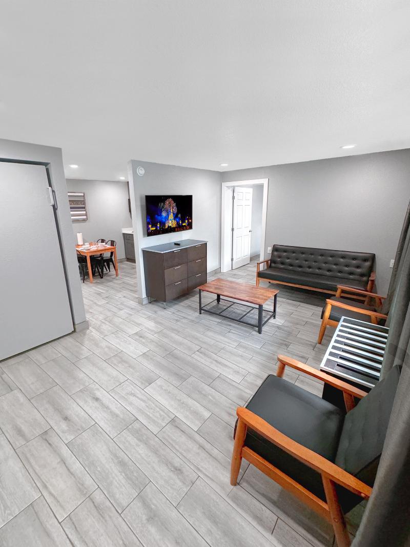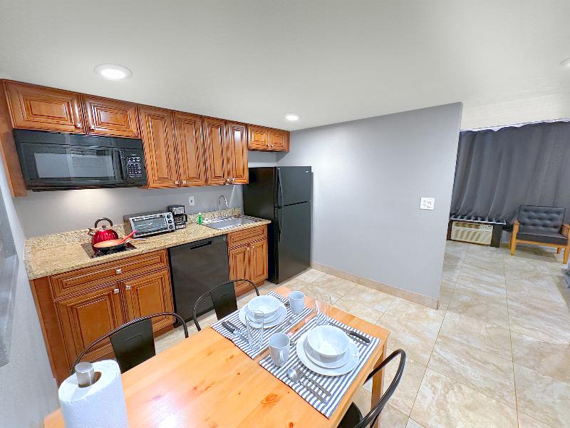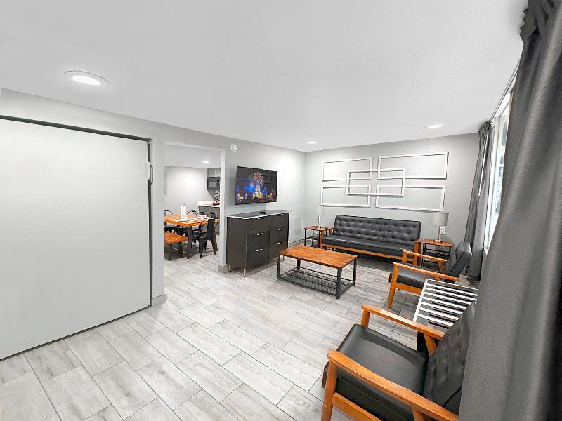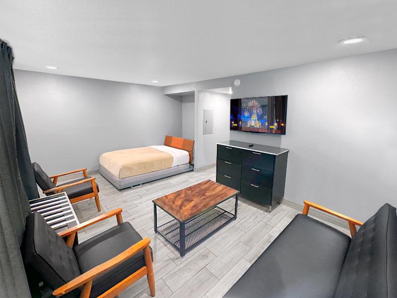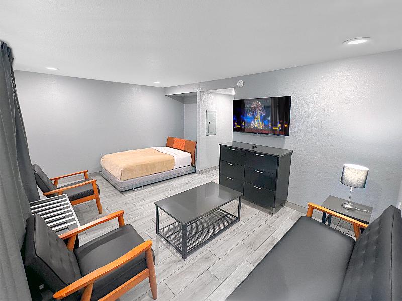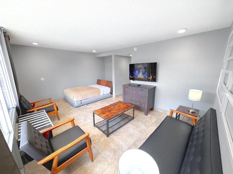 El hotel está ubicado a minutos de Disney, Oulets, Walmarts, Farmacias y otros servicios. La habitación es super completa con todo lo necesario para pasar los días como en casa.
