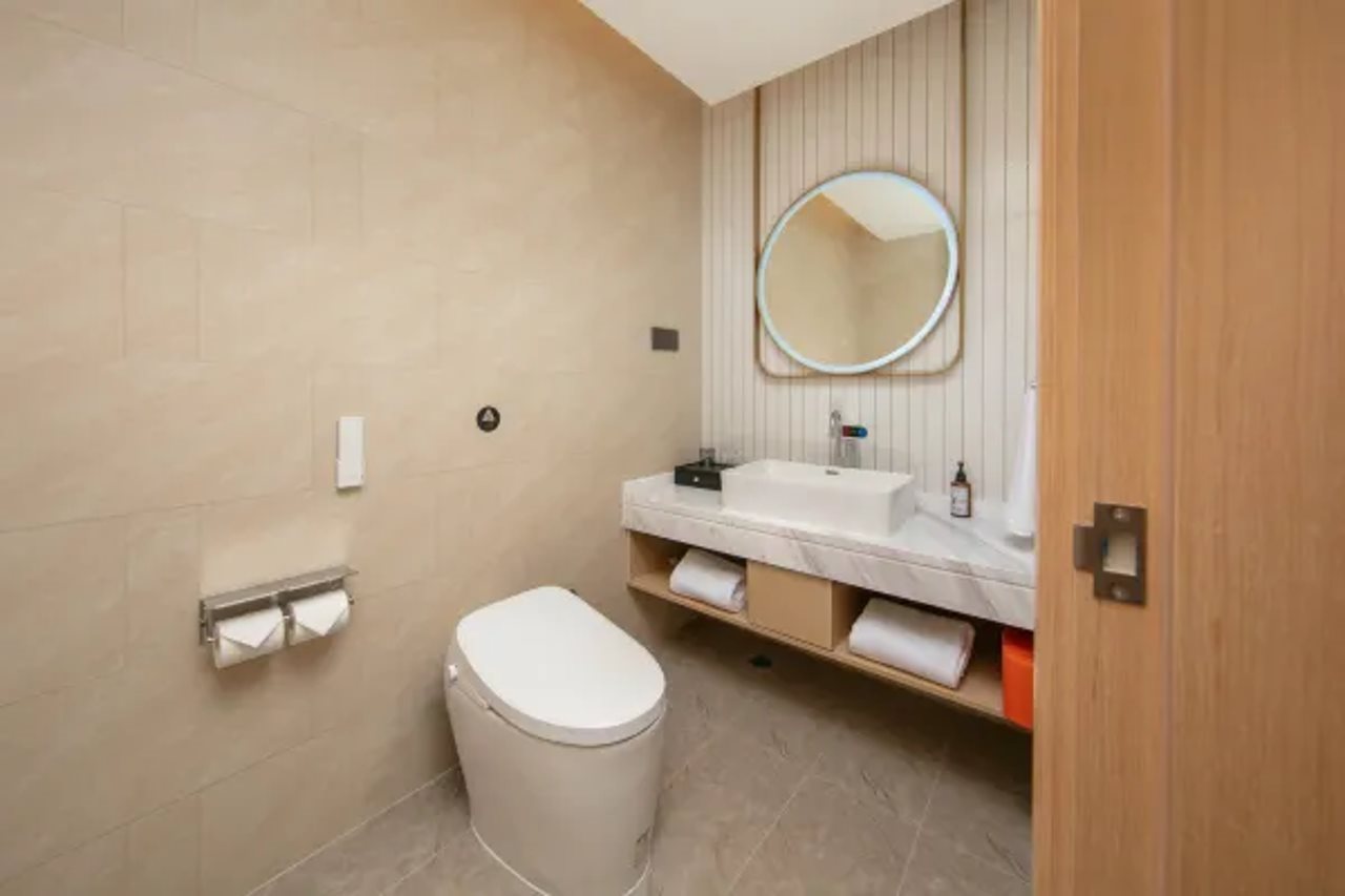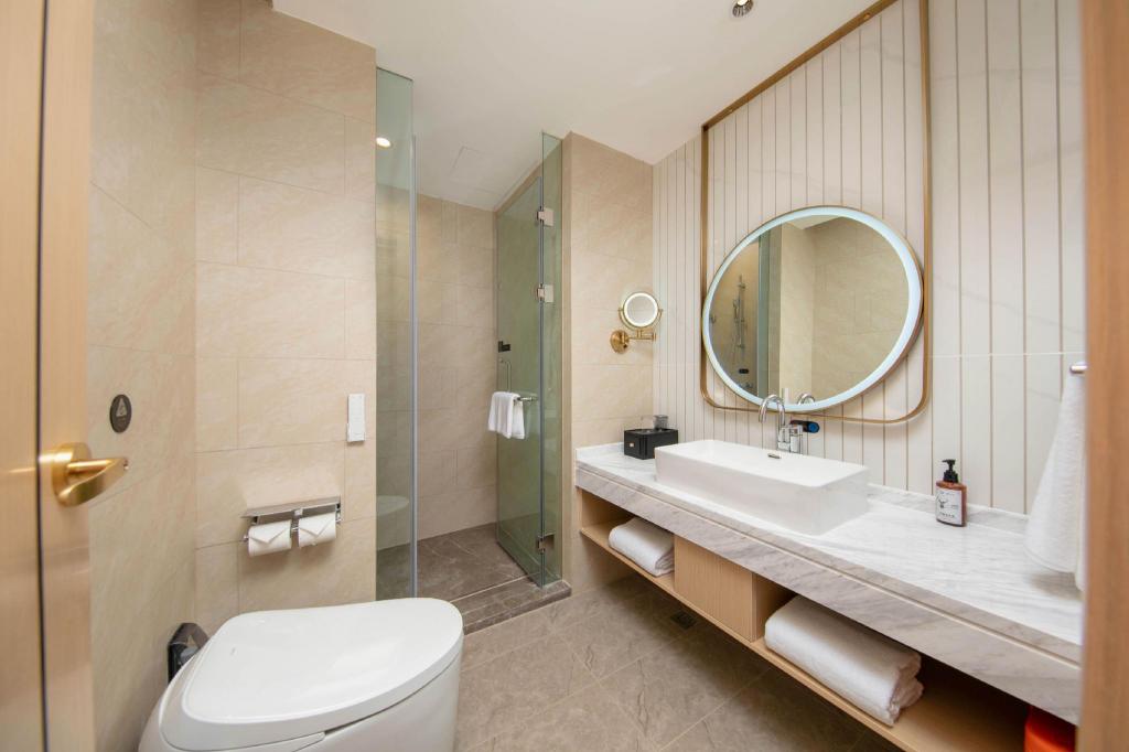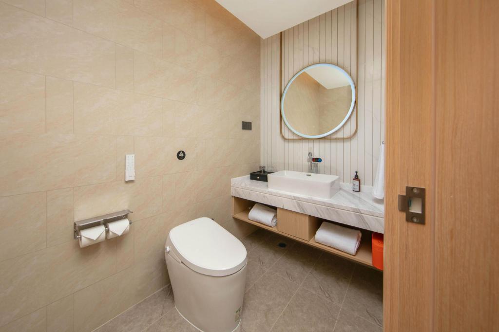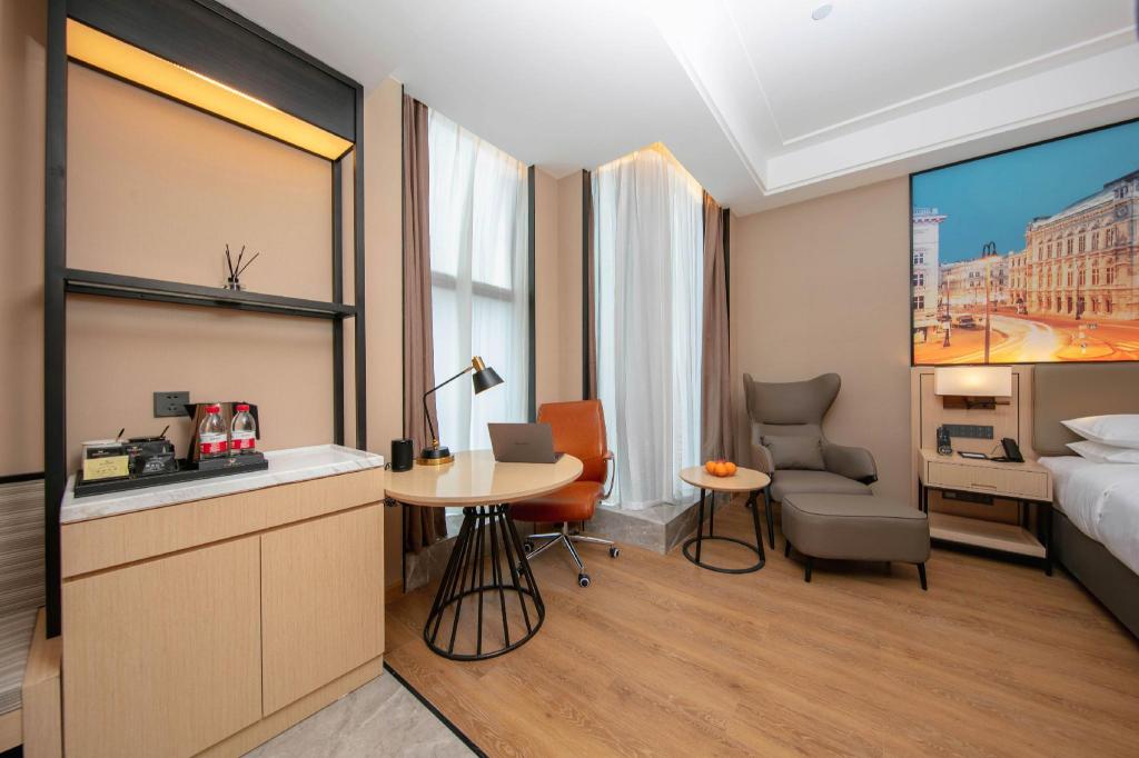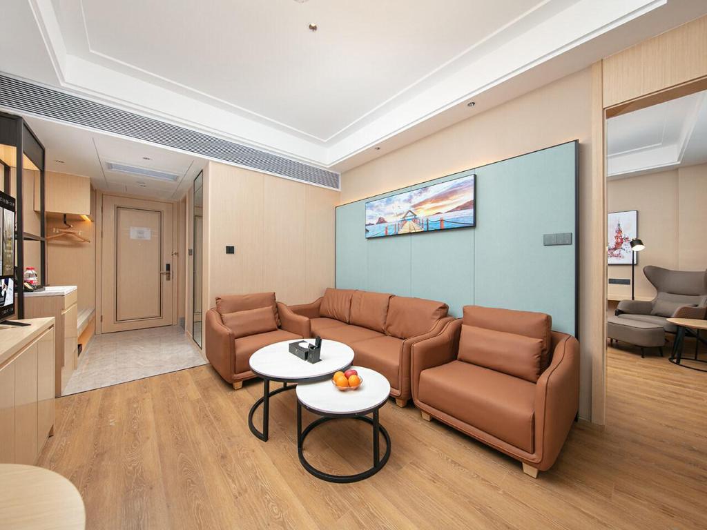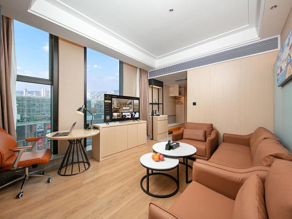 Till den inrättningar och tjänster hör en Fitnessstudio, en Konferenzrum, en restaurang, Wäschemöglichkeiten och WLAN-Zugang.Zimmer verfügen über Klimaanlage, WLAN-Zugang, Fernseher and one ownes Bad mit Dusche.Adress: Gebäude 1, Nr. 133, Abschnitt 2, Jinhua Road, Bezirk Shuangliu, Chengdu, Sichuan, Kina