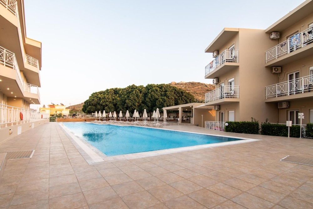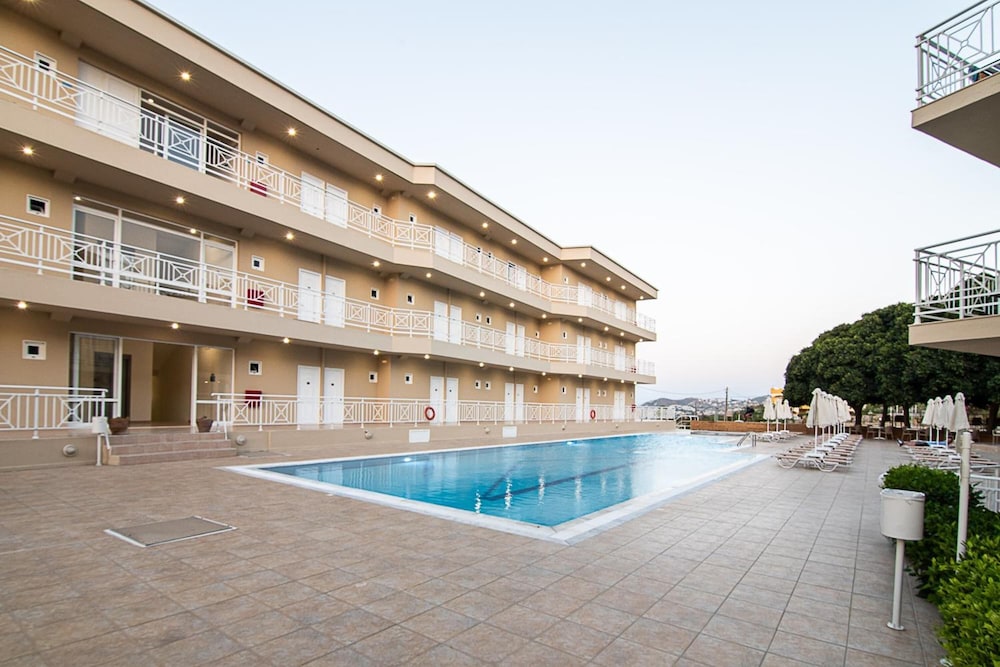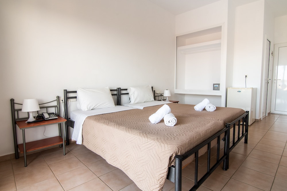Los servicios e instalaciones incluyen aire acondicionado, WiFi en áreas públicas, aparcamiento, restaurante, bar, piscina, piscina para niños y ascensor.Las habitaciones están equipadas con aire acondicionado, WiFi, televisión y nevera.Limpieza 6 veces por semana.Cambio de sábanas 2 veces por semana.Cambio de toallas 2 veces por semana.Dirección: Agia Pelagia, Heraklion 71500, Grecia.