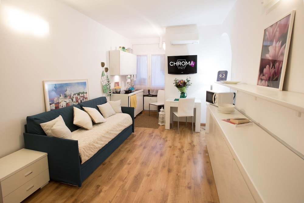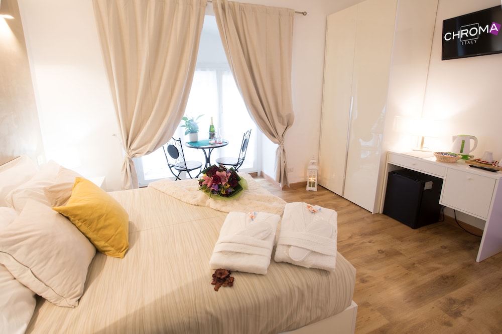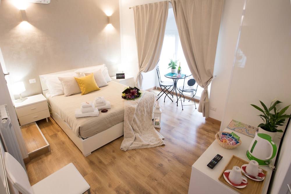 En Chroma Octho gozarás de una ubicación céntrica en Roma, a pocos pasos de Iglesia de Santa Maria dei Monti y Basílica de Massenzio. Esta casa adosada se encuentra cerca de Foro Romano y de Coliseo.Habitaciones Te sentirás como en tu propia casa en una de las 4 habitaciones con frigorífico y televisor de pantalla plana. Mantén el contacto con los tuyos gracias a la conexión a Internet wifi gratis. El baño privado con ducha está provisto de artículos de higiene personal gratuitos y zapatillas. Las comodidades incluyen un servicio de limpieza disponible todos los días y la posibilidad de solicitar cunas gratuitas y camas supletorias.Para comer Aprovecha el servicio de habitaciones con horario limitado de esta casa adosada.Servicios de negocios y otros Tendrás servicio de recepción 24 horas y ascensor a tu disposición. Se ofrece servicio de transporte al aeropuerto (ida y vuelta) de pago (a petición).