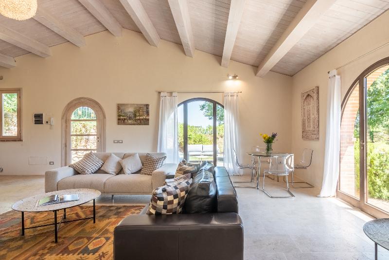 Cignella Resort nace de la transformación de una antigua granja porcina, ubicada entre el Val d'Orcia y el Val di Chiana, dos de los valles más bellos y famosos de la provincia de Siena, con más de 200 años de historia. Abandonada cuando ese negocio dejó de ser rentable, los actuales propietarios quedaron impresionados por la ubicación única y las vistas de postal, y se propusieron crear un resort moderno donde una estancia tradicional toscana se combina con los ideales más modernos del viajero actual. Sin descuidar ningún detalle, y con miras a la conservación de todos los elementos arquitectónicos típicos, comenzó la transformación de la finca, utilizando los materiales originales, como vigas de techo y piedras centenarias de la casa de labranza, con técnicas tradicionales para preservar su aspecto de hace dos siglos. Hoy, Cignella Resort es el punto de partida perfecto para quienes desean experimentar el corazón de la Toscana. Cada alojamiento da a un gran jardín que casi funciona como una plaza, mientras que al mismo tiempo todos tienen su propia terraza en la que pasar momentos de tranquilidad con sus seres queridos. Aquí puedes experimentar la vida local y descubrir la provincia de Siena con sus pueblos y famosas colinas.