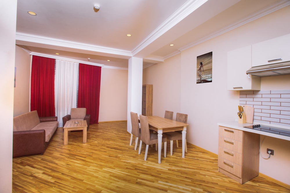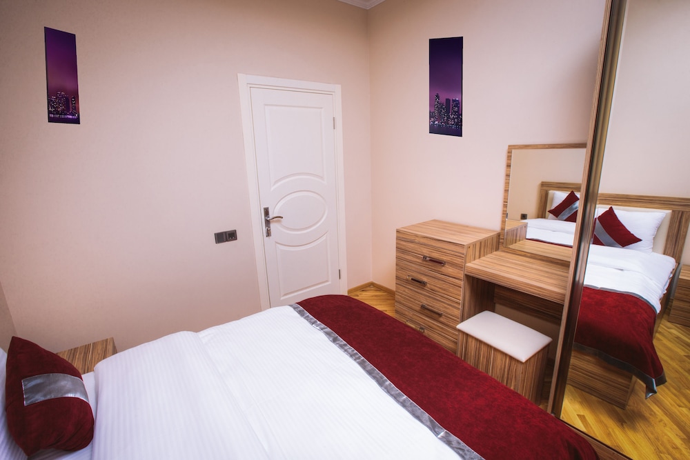 City Apartments está en pleno centro de Bakú, a pocos pasos de Centro Cultural Haydar Aliyev y a unos minutos de Centro comercial Metropark. Este apartotel se encuentra cerca de Centro comercial Azure y de Estadio Tofik Bakhramov. Reserva una de las 14 habitaciones climatizadas, todas dotadas de cocina con frigorífico/congelador grande y placa de cocina. Las habitaciones disponen de balcón o patio. El Smart TV de 101 cm con canales digitales es ideal para los momentos de ocio. Entre las comodidades, se incluyen escritorio, microondas y teléfono con y llamadas locales gratuitas. Aprovecha los prácticos servicios que se te ofrecen, como conexión a Internet wifi gratis o servicios de conserjería. El servicio de transporte (de pago) te llevará a la playa o al centro comercial más cercanos. Toma algo de local and international cuisine en City Lounge, restaurante con un bar, aunque también puedes llamar al servicio de habitaciones las 24 horas. Se sirve un desayuno bufé todos los días de 8:00 a 11:00 con un coste adicional. Tendrás check-in rápido, check-out rápido y servicio de tintorería a tu disposición. Pagando un pequeño suplemento podrás aprovechar prestaciones como servicio de transporte al aeropuerto (ida y vuelta) (disponible las 24 horas) y servicio de transporte al punto de embarque del ferry.