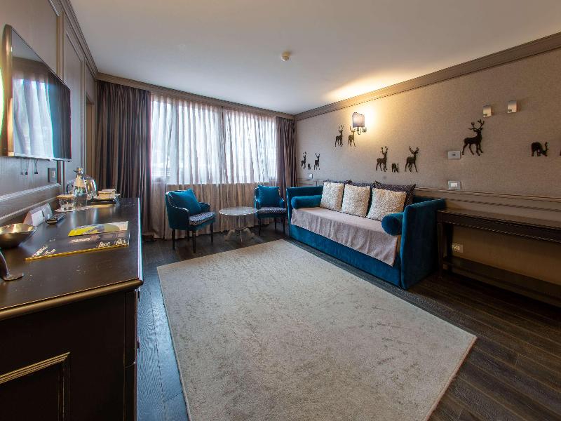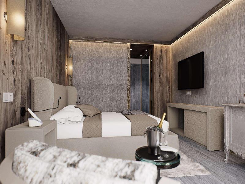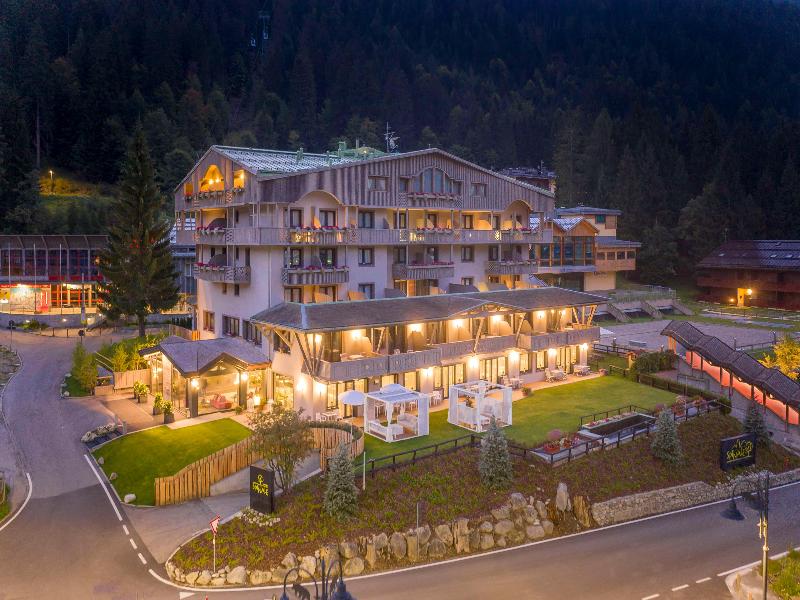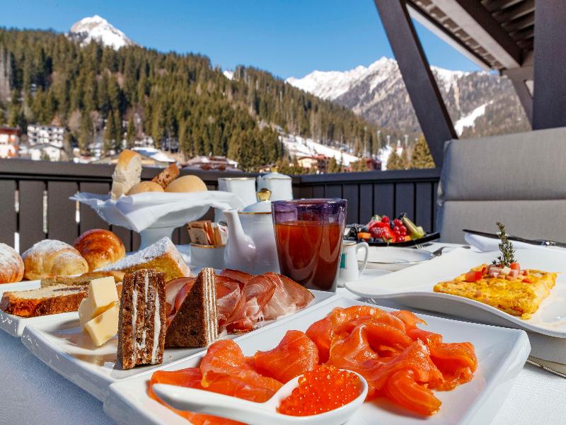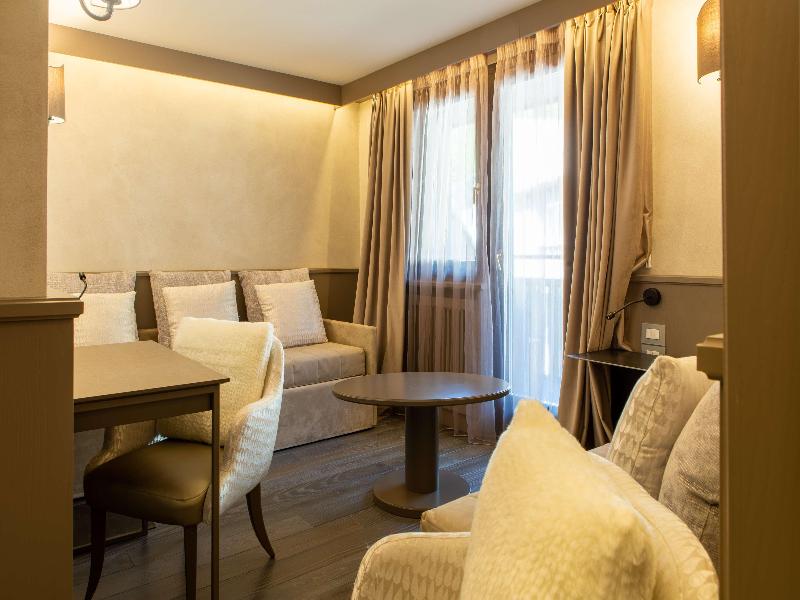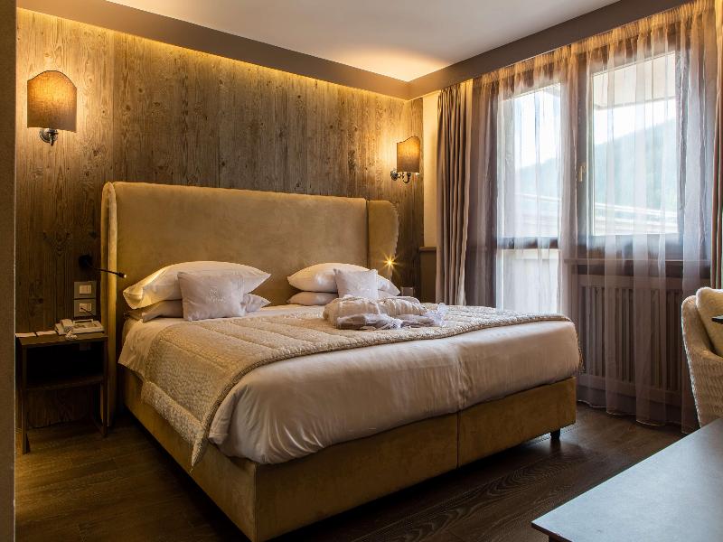 Ubicado en la parte occidental de la provincia de Trento, en Val Gardena, Madonna di Campiglio se encuentra en el corazón de los Dolomitas, en un hermoso valle rodeado por el Parque Adamello-Brenta, a una altitud de 1550 m. Encontrarás restaurantes, bares, tiendas, conexiones con la red de transporte público y las pistas de esquí a menos de 150 m del complejo de spa, mientras que la ciudad de Trento y su estación de tren están a unos 80 km de distancia. Este refinado y exclusivo hotel fue renovado recientemente, pero aún conserva su estilo tradicional, con un servicio impecable y una cocina reconocida. El hotel de esquí ofrece un total de 61 habitaciones. Las habitaciones ofrecen cálidos tonos de montaña y originalidad para crear una atmósfera fascinante y elegante a la vez. Todas las habitaciones cuentan con baño privado con bañera y secador de pelo, TV vía satélite, cama doble, teléfono, minibar, caja fuerte, acceso a internet, calefacción central y vistas panorámicas. El desayuno y la cena se sirven en forma de bufé, mientras que para el almuerzo y la cena se ofrecen opciones a la carta y de menú fijo.
