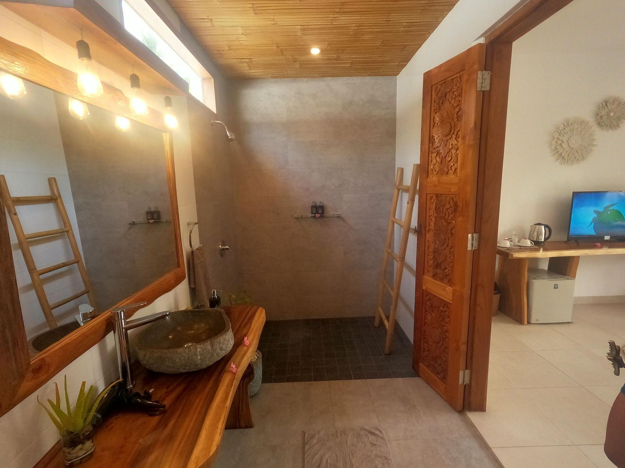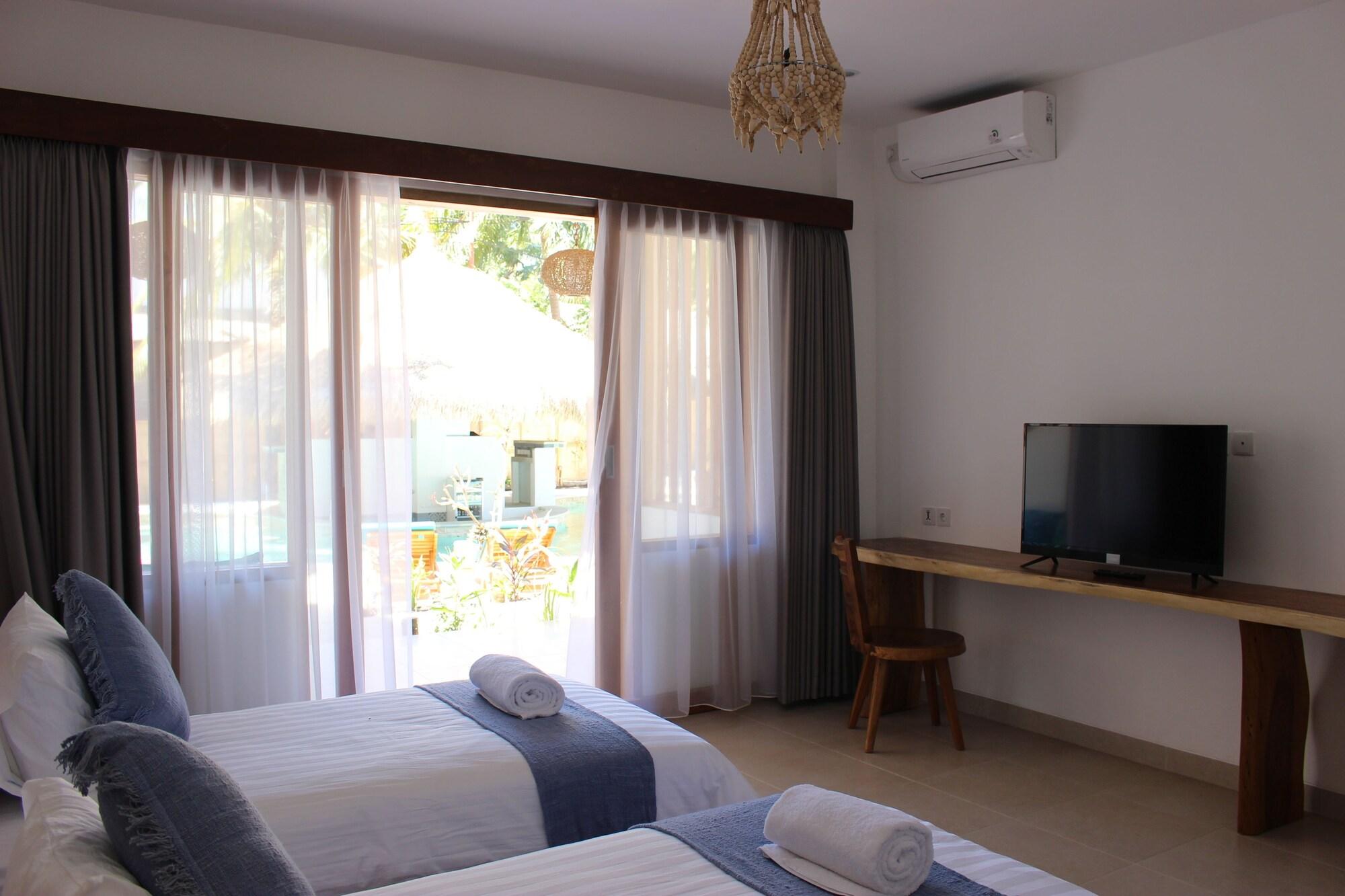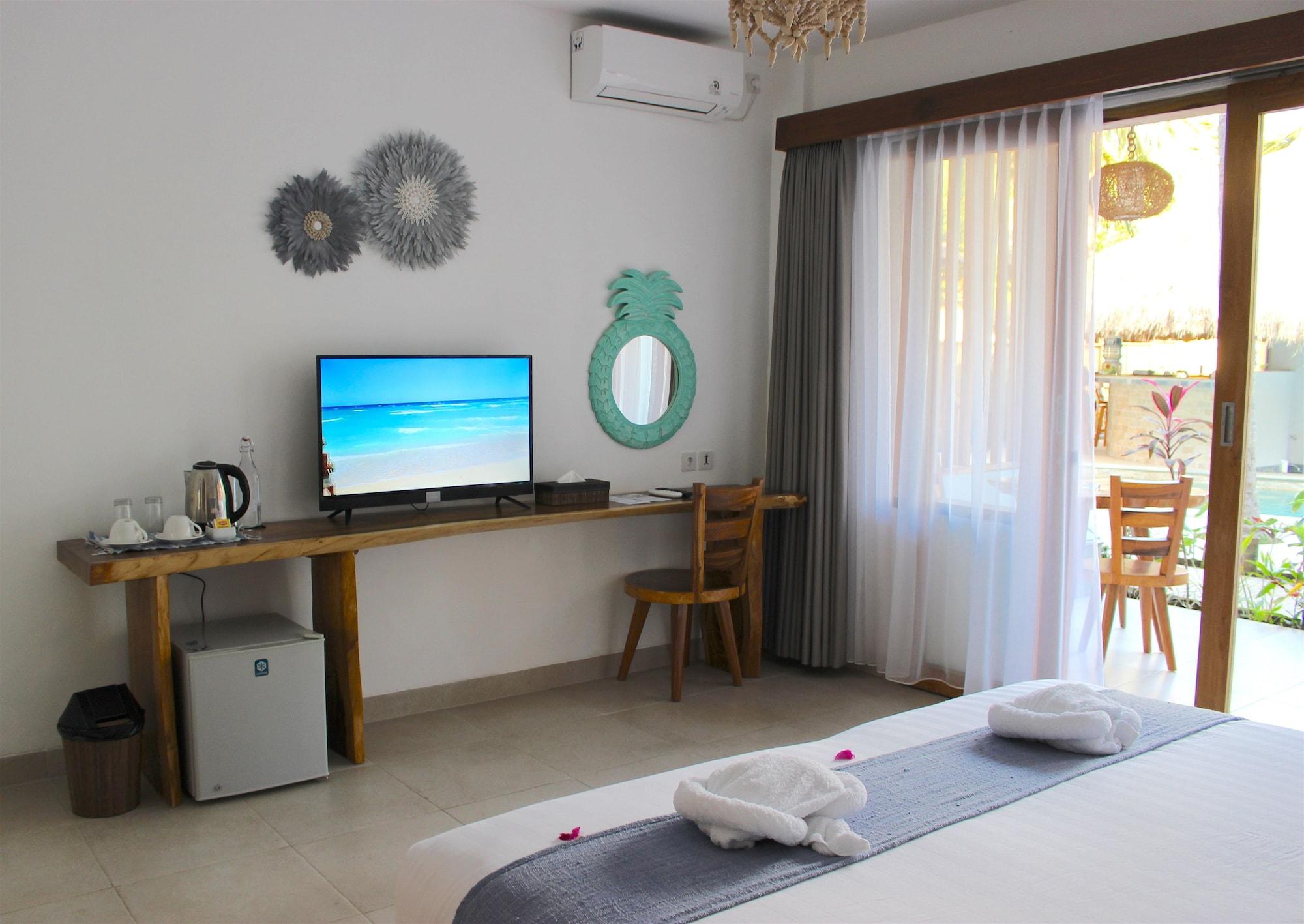 Si decides alojarte en Coco Cabana de Gili Trawangan, estarás al lado del mar y a solo 14 min en coche de Mercado nocturno Gili Trawangan. Esta casa de huéspedes se encuentra a pocos kilómetros de Puerto de Bangsal y de Playa de Nipah. Te sentirás como en tu propia casa en cualquiera de las 10 habitaciones con aire acondicionado, minibar y Smart TV. Mantén el contacto con los tuyos gracias a la conexión a Internet wifi gratis. El baño privado con ducha está provisto de artículos de higiene personal gratuitos y bidé. Entre las comodidades, se incluyen escritorio y hervidor eléctrico, además de un servicio de limpieza disponible todos los días. No te pierdas instalaciones recreativas como piscina al aire libre o bicicletas de alquiler: ¡lo pasarás en grande! Se ofrece además conexión a Internet wifi gratis y asistencia turística y para la compra de entradas. Pon la guinda en el pastel a un día fantástico con una bebida en el bar o lounge o en el bar junto a la piscina. Se sirve un desayuno a la carta gratuito todos los días de 7:30 a 12:00. Tendrás servicio de tintorería, consigna de equipaje y caja fuerte en recepción a tu disposición.
