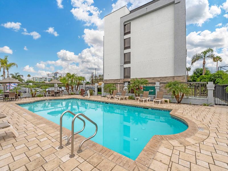 El hotel Comfort Inn Anaheim Resort, para no fumadores, en Anaheim, CA, te permitirá descansar y estar listo para todo. Ubicado a solo minutos de Disneyland, también estamos cerca del Anaheim Convention Center, el Honda Center y el OC Fair and Event Center. Ofrecemos wifi gratis, un centro de negocios, espacio para reuniones de hasta 25 personas, un gimnasio y desayuno caliente gratuito. Relájate en una de nuestras amplias habitaciones, todas con televisores, microondas, cafeteras, secadores de pelo, planchas y tablas de planchar. Además, gana recompensas que incluyen noches gratis y tarjetas de regalo con nuestro programa Choice Privileges Rewards. Venta de entradas para Disneyland en recepción las 24 horas, los 7 días de la semana.