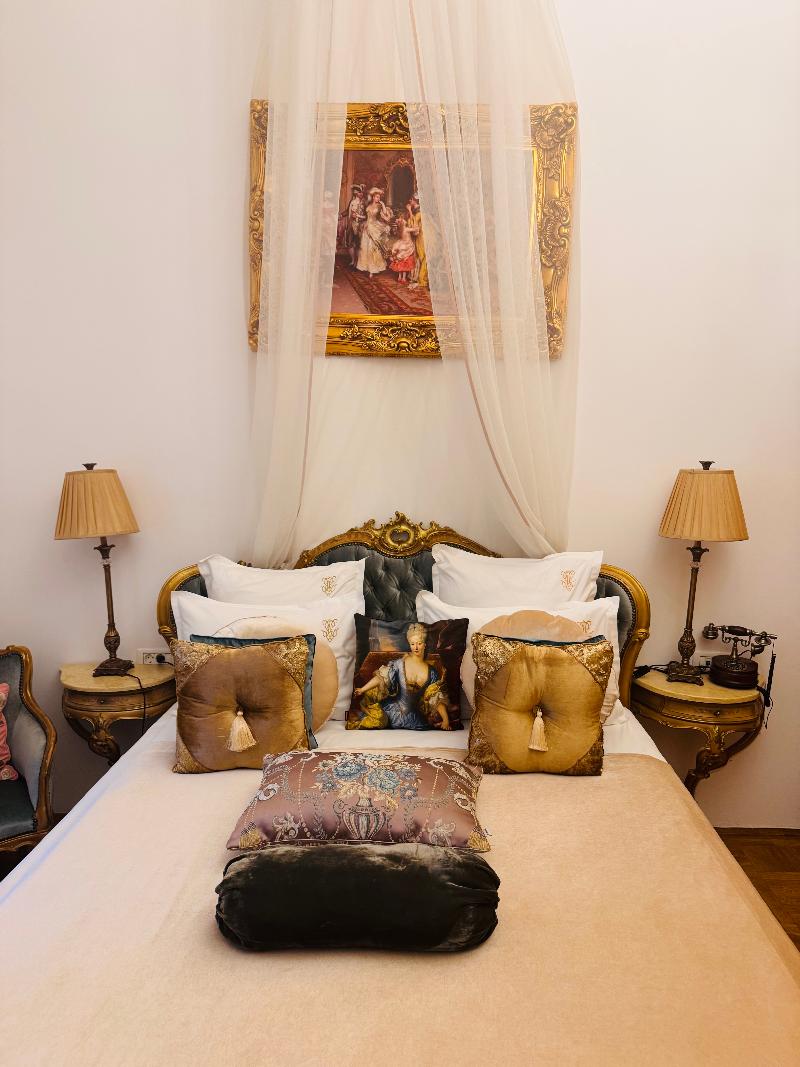 Ubicado en el corazón de Bucarest, el Conacul Coroanei Luxury Boutique Hotel es un hotel boutique de lujo que se alza en un edificio histórico de arquitectura clásica, el cual perteneció al general Samsonovici, amigo cercano de Carlos II de Rumanía. Se encuentra a tan solo 6 minutos a pie de la Plaza de la Universidad y del Teatro Nacional de Bucarest (TNB). Ofrece servicio de conserjería, recepción 24 horas, traslados al aeropuerto, servicio de habitaciones y wifi gratuito en todas sus instalaciones. Todas las habitaciones presentan una decoración única y lujosa, combinando elementos venecianos y franceses. Cuentan con aire acondicionado, TV de pantalla plana con canales por cable y armario. Los baños privados incluyen secador de pelo, artículos de aseo gratuitos, espejos venecianos y granito estampado con imágenes de condesas venecianas.