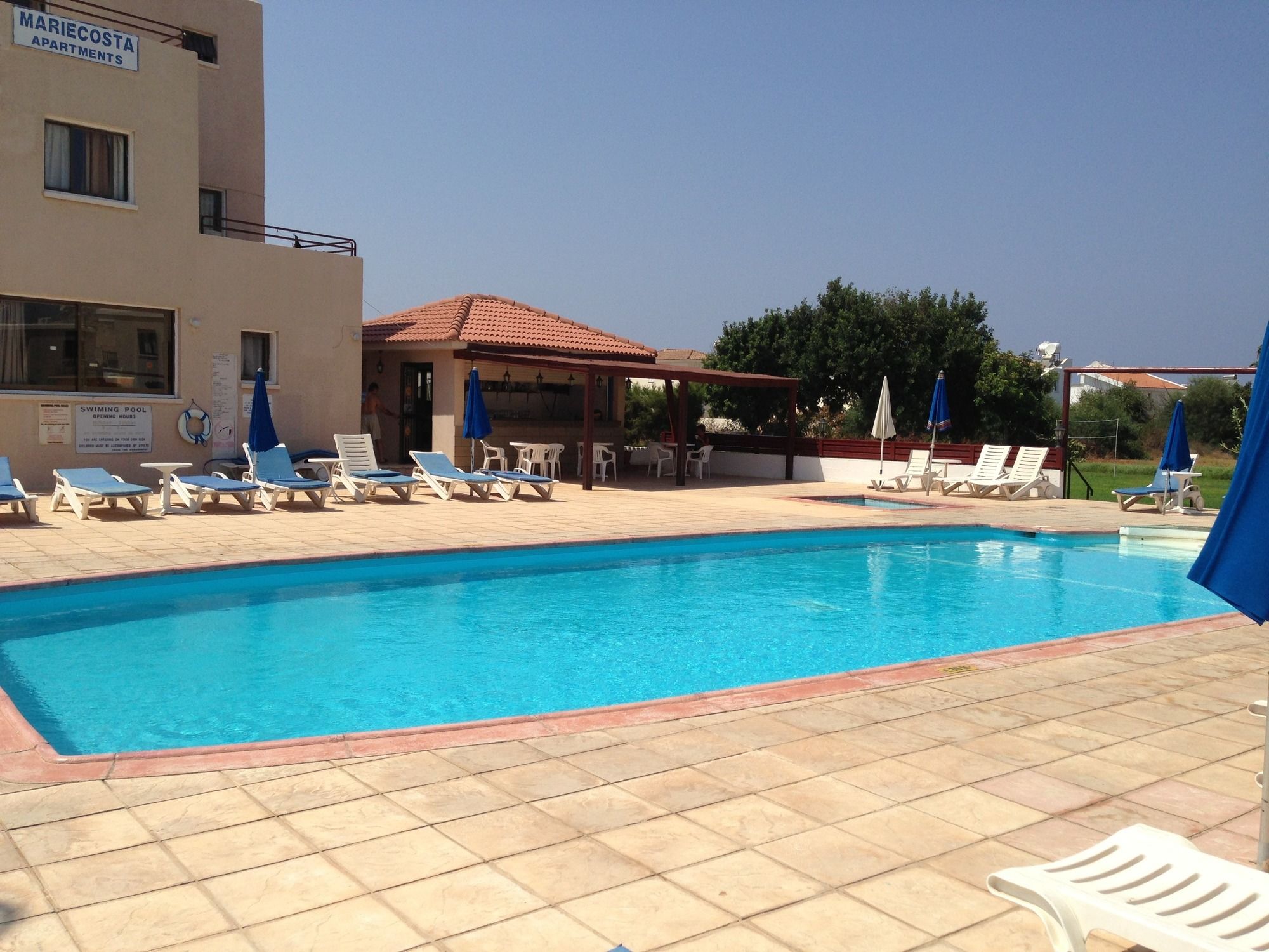 Si te alojas en Constantaras Apartments, en Protaras (Paralimni - Protaras), estarás a pocos pasos de Playa de Kalamies y a unos minutos de Iglesia Profeta Elias. Este complejo de apartamentos se encuentra cerca de Trinity Beach y de Playa Agia Triada.Habitaciones Reserva una de las 8 habitaciones climatizadas, todas dotadas de cocina básica con frigorífico y placa de cocina. Las habitaciones disponen de balcón. Para los momentos de ocio, tienes un televisor de plasma. Las comodidades incluyen cafetera y tetera, además de un servicio de limpieza disponible de forma limitada y la posibilidad de solicitar cunas gratuitas. Con jardín donde descansar y comodidades como conexión a Internet wifi gratis, ¡no te faltará de nada!Para comer Mientras te das un chapuzón puedes pedir tu bebida favorita en el bar de la piscina. Todos los días se sirve un desayuno bufé de pago.Servicios de negocios y otros Tendrás servicio de recepción 24 horas y caja fuerte en recepción a tu disposición. Hay un aparcamiento sin asistencia gratuito disponible.