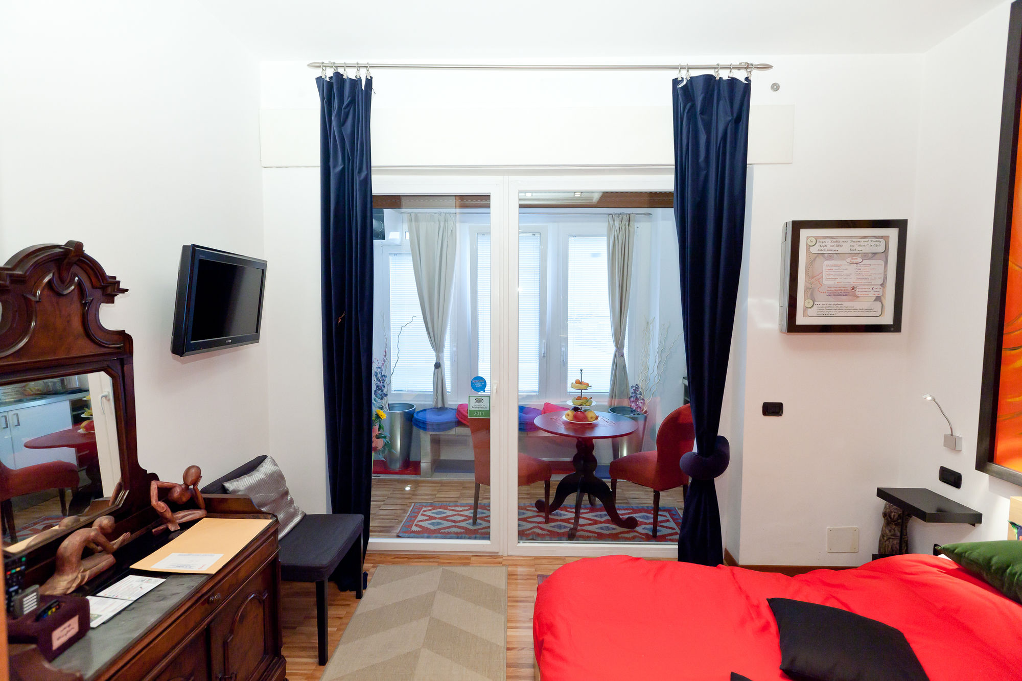 Si te alojas en Coppola MyHouse, en Roma (Nomentano), estarás a pocos minutos de Mercado cubierto y Parque Villa Chigi. Este hostal se encuentra cerca de Catacumbas de Priscila y de Club de tenis Parioli.Habitaciones Te sentirás como en tu propia casa en una de las 4 habitaciones con decoraciones diferentes, dotadas de minibar y televisor LCD. La conexión a Internet wifi gratis te mantendrá en contacto con los tuyos; también podrás ver tu programa favorito en el televisor con canales digitales. El baño privado con ducha está provisto de cabezal de ducha tipo lluvia y artículos de higiene personal gratuitos. Las comodidades incluyen escritorio y botella de agua gratuita, además de un servicio de limpieza disponible todos los días.Servicios Aprovecha los prácticos servicios que se te ofrecen, como conexión a Internet wifi gratis, servicio de canguro (de pago) o asistencia turística y para la compra de entradas.Para comer Aprovecha el servicio de habitaciones con horario limitado de este hostal.Servicios de negocios y otros Tendrás una zona de ordenadores, check-out rápido y atención multilingüe a tu disposición. Hay un aparcamiento sin asistencia (de pago) disponible.