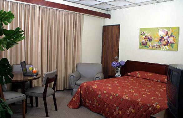 Ubicación - Este hotel está situado a 5 km del centro de San José. Para llegar al aeropuerto internacional necesitará unos 25 minutos.. Instalaciones - El hotel se construyó en el año 1969. El establecimiento ofrece 27 habitaciones. En el alojamiento los huéspedes son recibidos en el vestíbulo con servicio de recepción las 24 horas y servicio de registro y salida las 24 horas. Las instalaciones incluyen una caja fuerte y una oficina de cambio. Los huéspedes pueden conectarse a Internet en las zonas públicas mediante Wi-Fi. En cuanto a opciones gastronómicas, el hotel cuenta con un restaurante, un comedor y un bar. Es posible comprar souvenirs en la tienda de recuerdos. Además, hay un jardín. Las instalaciones del establecimiento incluyen un quiosco de prensa. Aquellos que viajen con vehículo propio pueden dejarlo en el aparcamiento del alojamiento. La oferta disponible incluye un servicio de traslado, servicio de habitaciones y una lavandería.. Habitaciones - En las habitaciones hay aire acondicionado, una cocina y un cuarto de baño. El equipamiento estándar de la mayoría de las habitaciones incluye un balcón. Para el descanso nocturno en las habitaciones hay una cama king size a disposición. Hay cunas para los más pequeños. Además, hay una caja fuerte. El rincón de cocina cuenta con una nevera. Pequeños extras se encargan de proporcionar una estancia agradable, como conexión a Internet, teléfono, televisor y Wi-Fi. Es posible reservar habitaciones aptas para personas en silla de ruedas. El cuarto de baño cuenta con una ducha. Además, hay un secador de pelo. El hotel ofrece habitaciones de no fumadores.. Deporte y ocio - El establecimiento dispone de diversas opciones para refrescarse los días de calor, como una piscina y una piscina al aire libre. Hay sombrillas a disposición de los huéspedes. La bañera de hidromasaje en la zona de baño promete una relajación total. En el bar de piscina se ofrecen bebidas refrescantes. Para aquellos que tengan ganas de moverse, se ofrece tenis, voleibol y baloncesto. El alojamiento también ofrece a los aficionados al deporte muchas actividades en el recinto interior, como un gimnasio, ping-pong, billar, bolos, squash y aeróbic. El hotel cuenta con diferentes ofertas de bienestar, como spa, sauna, baño de vapor, hamam y masajes. Los servicios ofrecidos incluyen un programa de entretenimiento para niños con numerosas actividades. Copyright GIATA 2004 - 2016. Multilingual. Comidas - Se puede reservar alojamiento con desayuno. Los huéspedes pueden escoger entre desayuno, almuerzo y cena.. Tarjetas de crédito - En el establecimiento se aceptan las siguientes tarjetas de crédito: American Express, Visa y MasterCard..