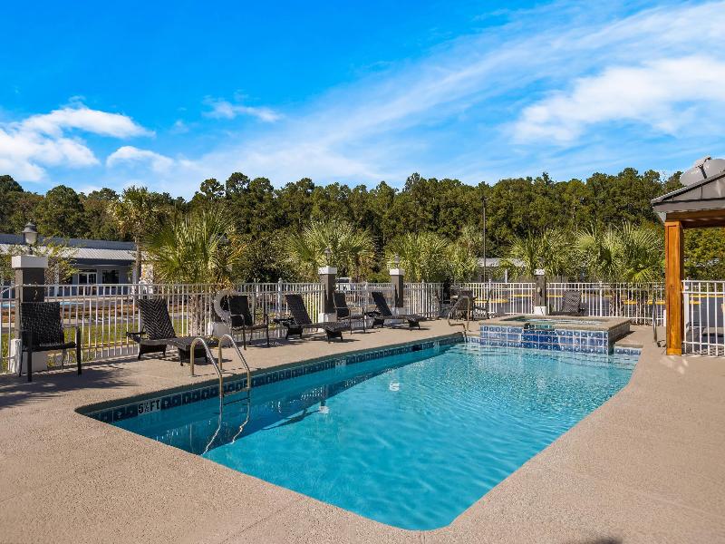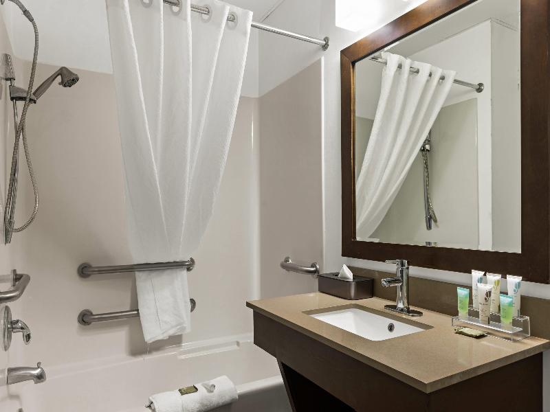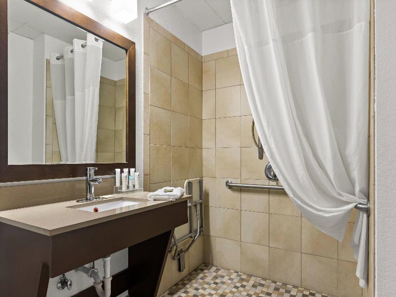Nuestras amplias habitaciones ejecutivas cuentan con microondas, refrigeradores y conexiones DSL, además de tres áreas de acceso telefónico (dormitorio, escritorio y baño). Las suites tipo estudio incluyen un sofá cama en la sala de estar. Los baños disponen de preciosos mostradores de mármol color rosa, y elegantes detalles en madera de cerezo adornan cada habitación. Las comodidades incluyen plancha, tabla de planchar y cafetera. Nuestras románticas suites con jacuzzi ofrecen relajación tanto para huéspedes de placer como de negocios. El centro de negocios proporciona servicios esenciales como fax y fotocopias. Disfruta de nuestra piscina al aire libre con su jacuzzi en cascada y amplias zonas para sentarse en la terraza, o relájate en el jacuzzi interior con zona de ducha. Mantén tu rutina de ejercicios en nuestro gimnasio totalmente equipado y calma los músculos doloridos en la sauna de madera de secuoya. Comienza tu día en el acogedor vestíbulo con nuestro desayuno continental ampliado, que incluye huevos revueltos, sémola de maíz, salchichas, gofres belgas y bizcochos.