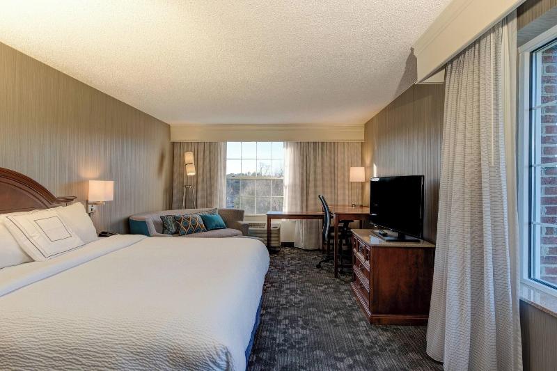 Disfruta de una cómoda estancia en el Courtyard by Marriott Chapel Hill, que cuenta con piscina cubierta, bañera de hidromasaje y gimnasio abierto las 24 horas. Mantén la conexión con wifi gratuito y relájate junto a la chimenea del vestíbulo. The Bistro ofrece cocina americana con bar y salón, y también hay una cafetería. Se sirven desayunos a la carta (de pago). El hotel ofrece 169 habitaciones con televisores LCD y programación por cable. Cada habitación incluye baño privado, escritorio y cafetera/tetera. Para tus necesidades de negocios, dispones de un centro de negocios abierto las 24 horas y check-in/check-out exprés. El espacio para eventos incluye un centro de conferencias y tres salas de reuniones. Ofrecemos aparcamiento gratuito. Situado cerca de la Universidad de Carolina del Norte y otras atracciones, el hotel es una opción práctica tanto para viajeros de placer como de negocios.