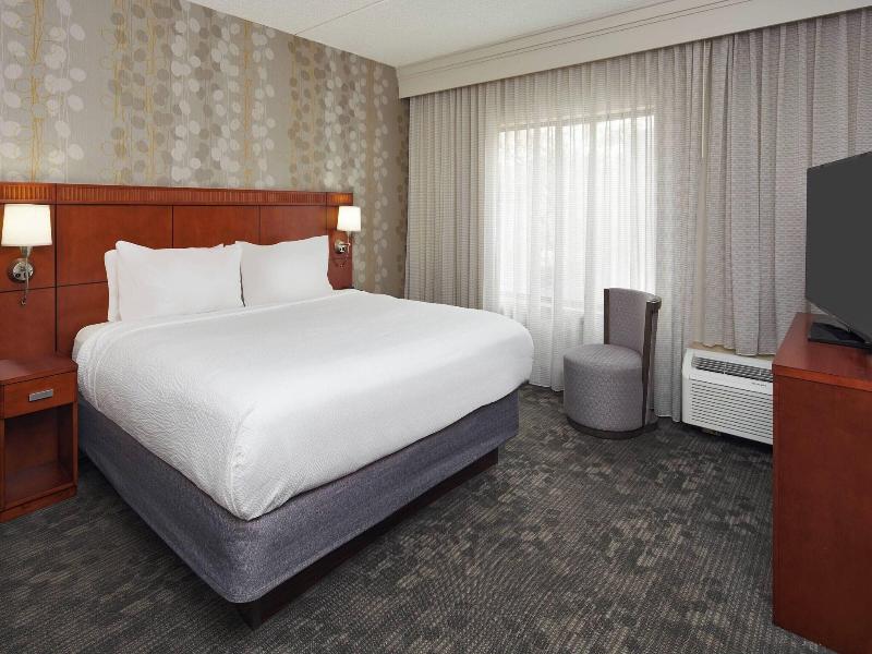 Ubicado en el distrito financiero de Wood Dale, el Courtyard by Marriott Chicago Wood Dale se encuentra a 5 minutos en coche de TopGolf Chicago y del Alexian Brothers Medical Center. Este hotel está a 10, 8 km de Woodfield Mall y a 11 km del Allstate Arena. Disfruta de opciones recreativas como una piscina cubierta y un gimnasio. El hotel también ofrece acceso inalámbrico a internet de cortesía, servicios de conserjería y una chimenea en el vestíbulo. Alójate en una de las 147 habitaciones con televisores de pantalla plana y camas con pillow-top. Se proporciona acceso a internet por cable e inalámbrico gratuito, junto con canales de televisión premium. Los baños parcialmente abiertos con combinaciones de ducha/bañera incluyen artículos de tocador gratuitos y secadores de pelo. Satisface tu apetito en The Bistro, que cuenta con un bar/salón, o come algo rápido en la cafetería. Los desayunos a la carta están disponibles todos los días por una tarifa. Los servicios destacados incluyen un centro de negocios, check-in exprés y check-out exprés. Un servicio de traslado de ida y vuelta al aeropuerto es gratuito en horarios programados.