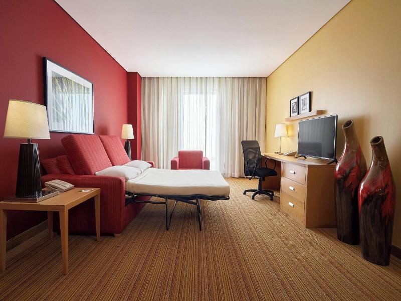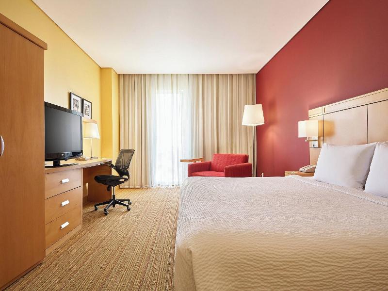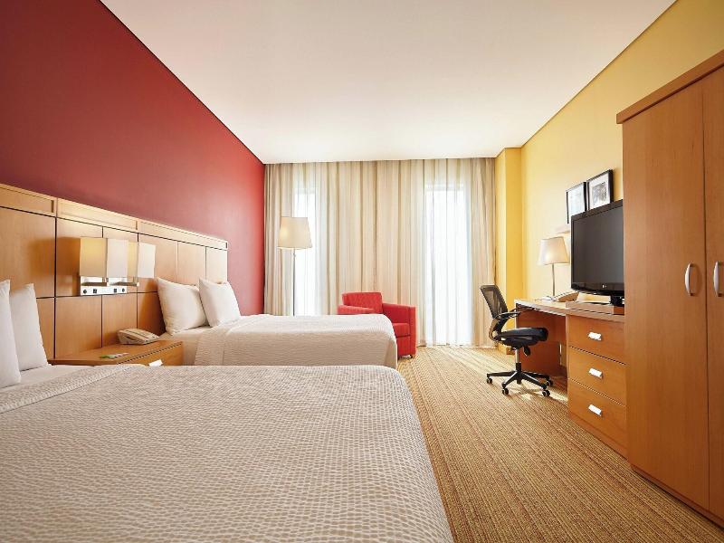 Ubicado en el corazón de León, el Courtyard by Marriott Leon at the Poliforum está a pasos del Distrito León MX y del Poliforum León Convention and Exhibition Center. Este hotel ofrece 140 habitaciones con refrigerador, base para iPod, camas con pillowtop y televisores LCD de 37 pulgadas con canales por cable. Disfruta de acceso a internet alámbrico e inalámbrico de cortesía. Los baños privados incluyen artículos de tocador de diseñador y secadora de pelo. Aprovecha las comodidades del hotel, que incluyen una piscina al aire libre, un gimnasio abierto las 24 horas y tiendas en las instalaciones. Come en Centro, el restaurante y bar/salón del hotel, que ofrece cocina internacional y servicio a la habitación con horario limitado. Se sirve desayuno buffet todos los días con cargo adicional. Para viajeros de negocios, el hotel ofrece un centro de negocios abierto las 24 horas y 153 metros cuadrados de espacio para eventos. El León Stadium y el Explora Science Center están a poca distancia en coche. Hay servicio de transporte al área (con cargo adicional). El estacionamiento en las instalaciones está disponible (con cargo).