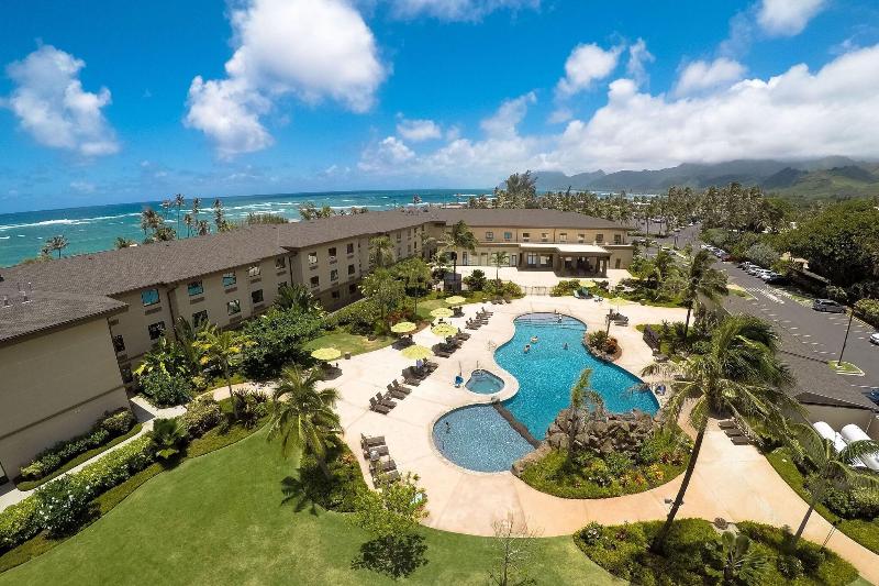 Courtyard by Marriott Oahu North Shore de Laie se encuentra cerca del mar, a apenas 3 min a pie de Polynesian Cultural Center y a solo 9 min de Universidad Brigham Young de Hawaii. Además, este hotel de playa se encuentra a 12 km de Playa Turtle Bay y a 16 km de Playa Sunset. . Aprovecha las instalaciones recreativas, que incluyen una piscina al aire libre y un gimnasio abierto las 24 horas. Encontrarás además conexión a Internet wifi gratis, servicios de conserjería y una televisión en la zona común. . Te sentirás como en tu propia casa en cualquiera de las 144 habitaciones con aire acondicionado, frigorífico y Smart TV. Descansa como nunca en una cama con edredón de plumas y ropa de cama de alta calidad. Para los momentos de ocio, tendrás un televisor con canales por cable y conexión a Internet por cable y wifi gratis. El baño privado con ducha y bañera combinadas está provisto de artículos de higiene personal gratuitos y secadores de pelo. . Aprovecha para cenar en el restaurante The Bistro, que se especializa en cocina internacional. También hay una cafetería, por si te apetece una fabulosa merienda. Se ofrece un desayuno a la carta todos los días de 06:00 a 12:00 con un coste adicional. . Tendrás conexión a Internet por cable gratis, un centro de negocios abierto las 24 horas y check-in exprés a tu disposición. Este hotel pone a tu disposición 2 salas de reuniones donde celebrar todo tipo de eventos. Hay un aparcamiento sin asistencia (de pago) disponible. . Las distancias se expresan en números redondos.
