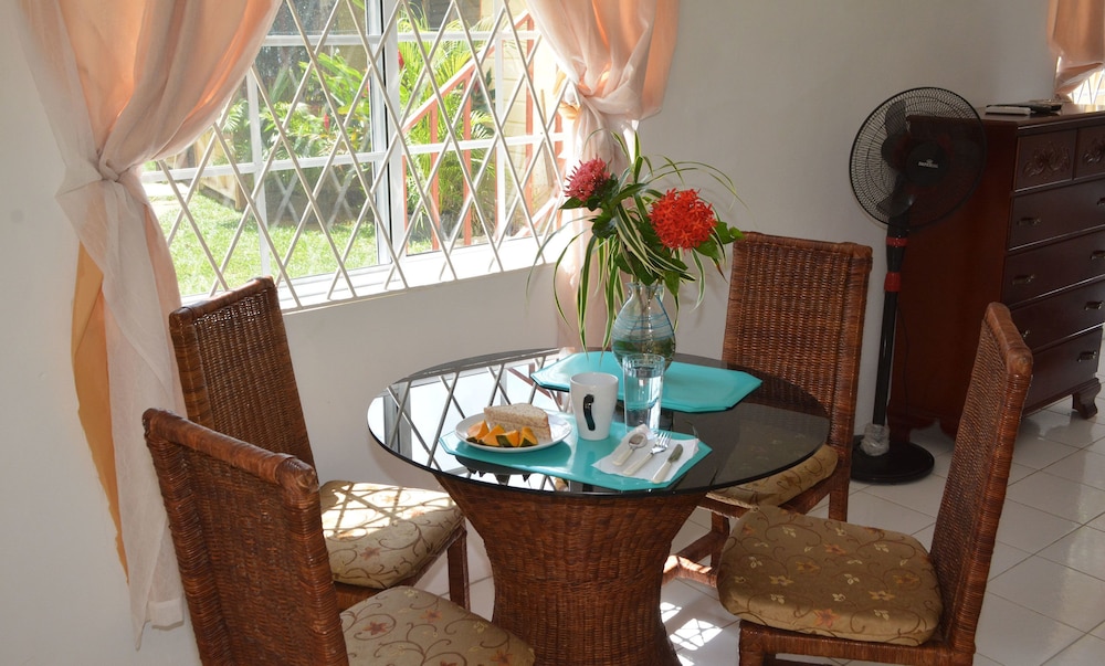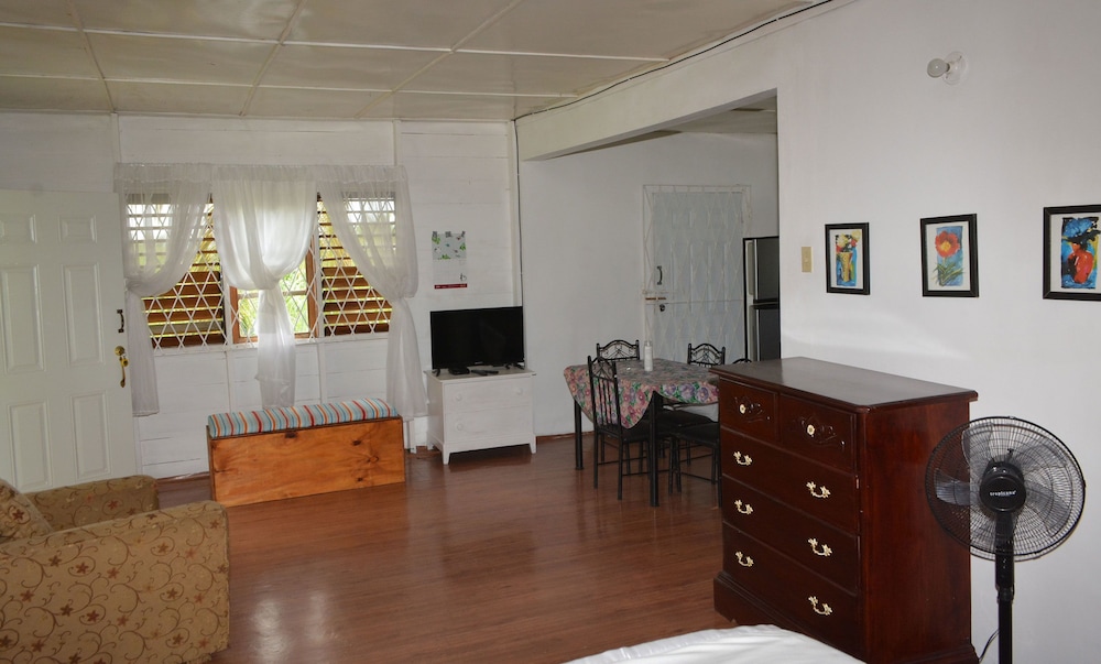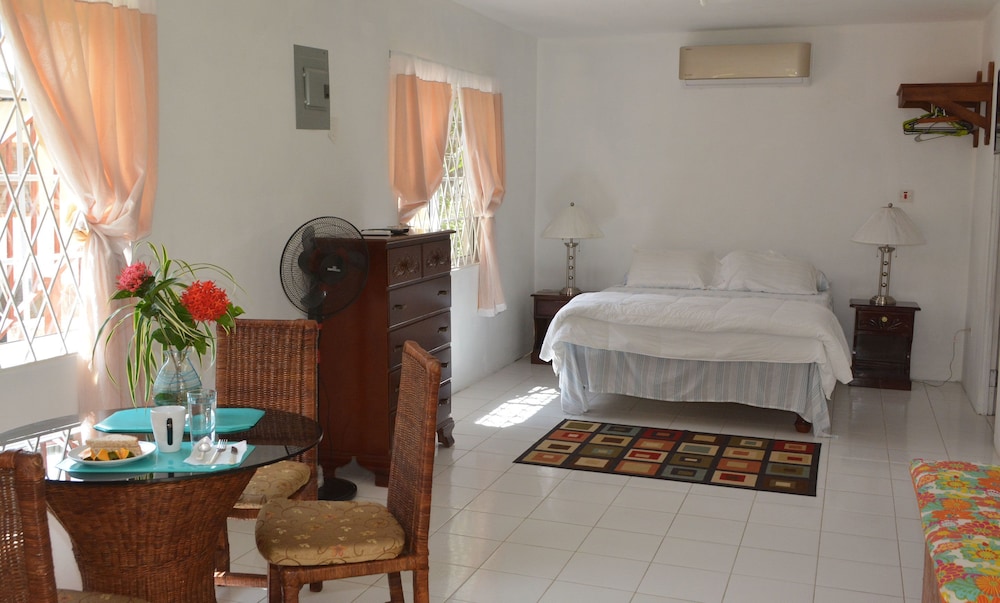 Si decides alojarte en Cozy Coco de Negril, estarás cerca de la playa, a pocos pasos de Seven Mile Beach y a apenas 2 min en coche de Centro comercial Times Square. Además, esta casa de huéspedes se encuentra a 3,1 km de Salón del trono y a 3,1 km de Parque acuático Kool Runnings. Reserva una de las 6 habitaciones climatizadas, todas equipadas con cocina básica con frigorífico y horno. Las habitaciones disponen de balcón o patio. La conexión a Internet de alta velocidad por cable (gratuita) te permite comunicarte con los tuyos, y en tus ratos libres tendrás un televisor de pantalla plana con canales por cable para entretenerte. Entre las comodidades, se incluyen una zona de estar separada y microondas, además de un servicio de limpieza disponible una vez por estancia. Con una terraza y jardín donde descansar y comodidades como conexión a Internet wifi gratis, ¡no te faltará de nada! Pagando un pequeño suplemento podrás aprovechar prestaciones como servicio de transporte al aeropuerto (ida y vuelta) (disponible las 24 horas) y aparcamiento sin asistencia gratuito.