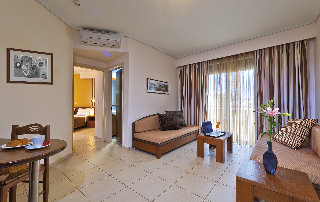 El hotel esta situado en un pequeno pueblo llamado Kato Stalos y dista solo 7 Km de la ciudad de La Canea, 19 Km del puerto de Souda y 23 Km del aeropuerto.En el complejo hay estudios, apartamentos y suites. El edificio principal alberga recepcion 24 horas, salon, zona de TV, supermercado, conexion a Internet y bar. El restaurante (a la carta y buffet) esta junto a la piscina. En la azotea hay un jardin con bar de cocteles y vista panoramica.Todas las habitaciones estan decoradas con gusto y totalmente equipadas con una cocina pequena con nevera. Todas tienen balcon con excelentes vistas al jardin o al mar. Incluyen un amplio y lujoso cuarto de bano, TV via satelite, radio, cafetera, telefono de linea directa, conexion a Internet, secador de pelo y cajas de seguridad (bajo sobrecargo). Ademas, cada apartamento, suite o estudio tiene aire acondicionado regulable en todas las habitaciones (aunque tambien bajo sobrecargo). El servicio de limpieza pasa 6 veces por semana, las toallas y las sabanas se cambian 3 veces a la semana.La piscina incluye su propia zona infantil, de modo que todos pueden disfrutar un bano placentero y seguro. Las sillas, sombrillas y tumbonas son gratis y tambien hay chiringuito. Tambien cuenta con gimnasio y sauna para relajarse.