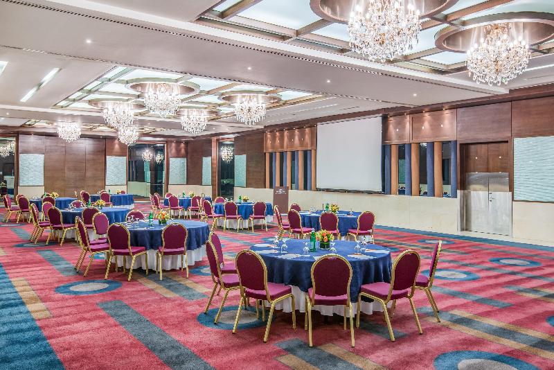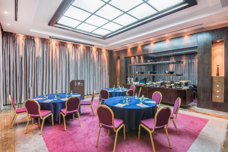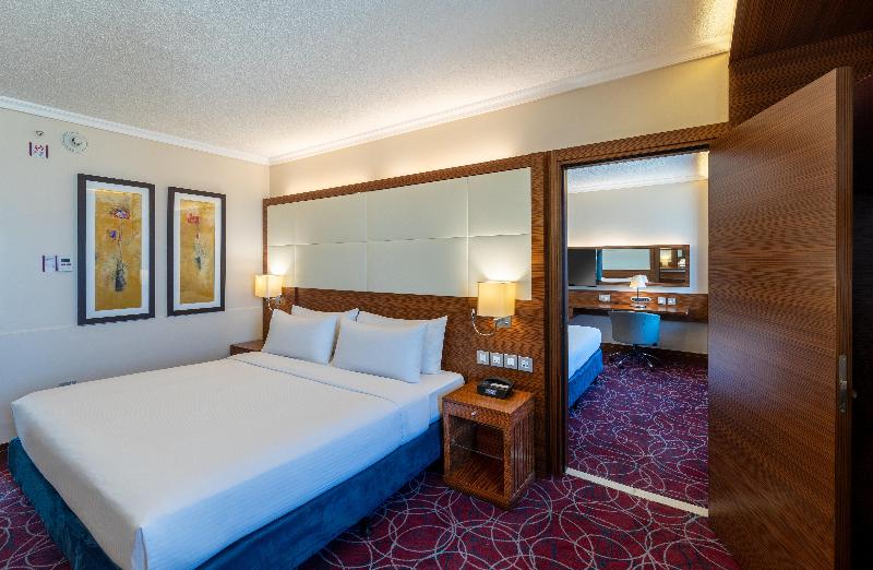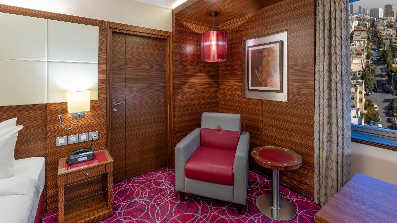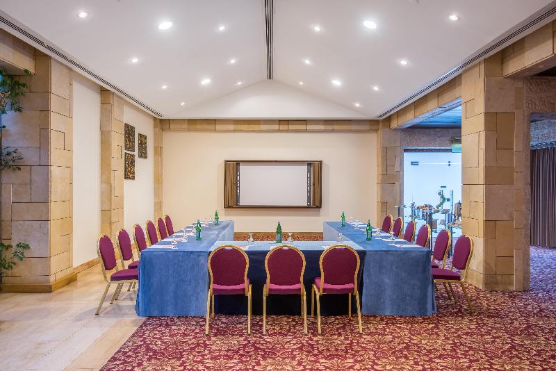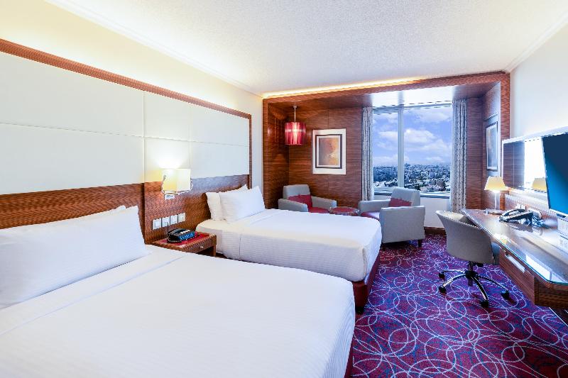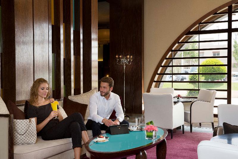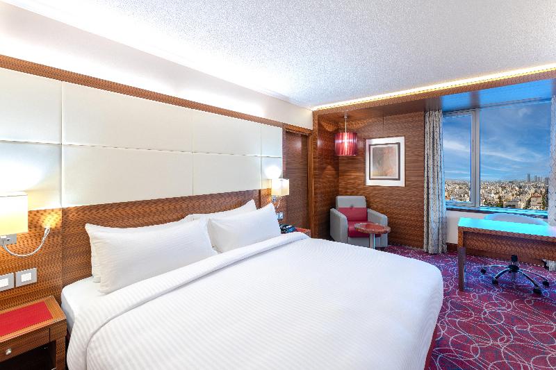 El hotel Crowne Plaza Amman se alza sobre el punto más alto de Amán, con fácil acceso a una importante zona comercial y a solo cuatro kilómetros del nuevo centro de la ciudad (Abdali). Disfruta de un delicioso cóctel en el Black Iris Rooftop mientras contemplas una impresionante vista de 270 grados durante la puesta de sol. También puedes saborear exquisitos filetes en el V-Lounge o tener reuniones informales con un café en el Jasmine Lobby Lounge. Nuestro dedicado personal te asegura una experiencia de negocios sin contratiempos, con el respaldo de un Centro de Negocios abierto las 24 horas. Date un capricho en nuestro spa o disfruta de un relajante chapuzón en nuestras piscinas climatizadas, tanto interior como exterior. Mantén tu rutina de ejercicios en nuestro gimnasio completamente equipado. Nuestro conserje estará encantado de ayudarte a explorar nuestro hermoso país, desde Petra, Áqaba y Wadi Rum en el sur, hasta los cautivadores paisajes del norte. Cabe destacar que somos el hotel más cercano al Aeropuerto Internacional Queen Alia y que nos encontramos a solo 15 minutos en coche de la mayoría de las embajadas, sin tráfico. Nuestro hotel cuenta con cinco salas de reuniones estratégicamente ubicadas, cada una con capacidad para conferencias y eventos de hasta 1000 invitados. Nuestras instalaciones para eventos y bodas son excepcionalmente únicas, desde el elegante Nabataean Ballroom hasta la pintoresca zona exterior junto a la piscina.