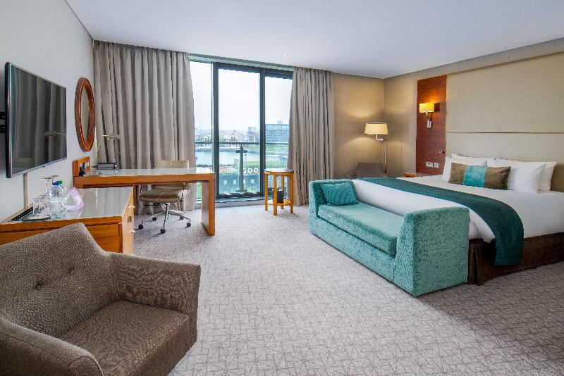 Un elegante hotel en Londres con restaurante de lujo, piscina cubierta y spa. El hotel Crowne Plaza® London Docklands ofrece un alojamiento elegante a seis minutos a pie del centro de exposiciones ExCeL London. El Aeropuerto de London City está a 10 minutos en taxi del hotel. El O2 arena está a 15 minutos en el teleférico IFS Cloud Cable Car sobre el Támesis; la estación Custom House de la línea Elizabeth y la estación Royal Victoria del DLR están a solo cinco minutos a pie. Desde allí, puedes llegar a Canary Wharf en tren en 15 minutos o a la estación Bank en la City en 25 minutos. Puedes organizar conferencias de hasta 275 personas en nuestras ocho salas de reuniones flexibles, con luz natural, equipo audiovisual y wifi gratis. Hay una zona de descanso para networking, y nuestro director de reuniones Crowne Plaza Meetings Director puede encargarse de todos los detalles. Después de un día ajetreado, puedes nadar en la piscina cubierta, hacer ejercicio en el gimnasio totalmente equipado o reservar un tratamiento de belleza en el spa. Si tienes tiempo, súbete al teleférico IFS Cloud Cable Car sobre el río para disfrutar de los animados bares y restaurantes del O2. El amplio Docklands Bar & Grill sirve desayunos, así como jugosos filetes, hamburguesas y platos internacionales para el almuerzo y la cena. Disfruta de las vistas a los muelles desde la terraza cubierta. Relájate con una copa de vino o un cóctel en nuestro moderno bar, o tómatelo con calma y pide del menú de servicio de habitaciones las 24 horas.
