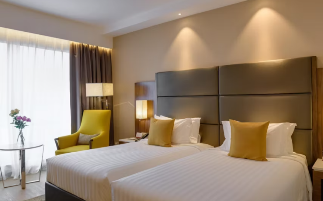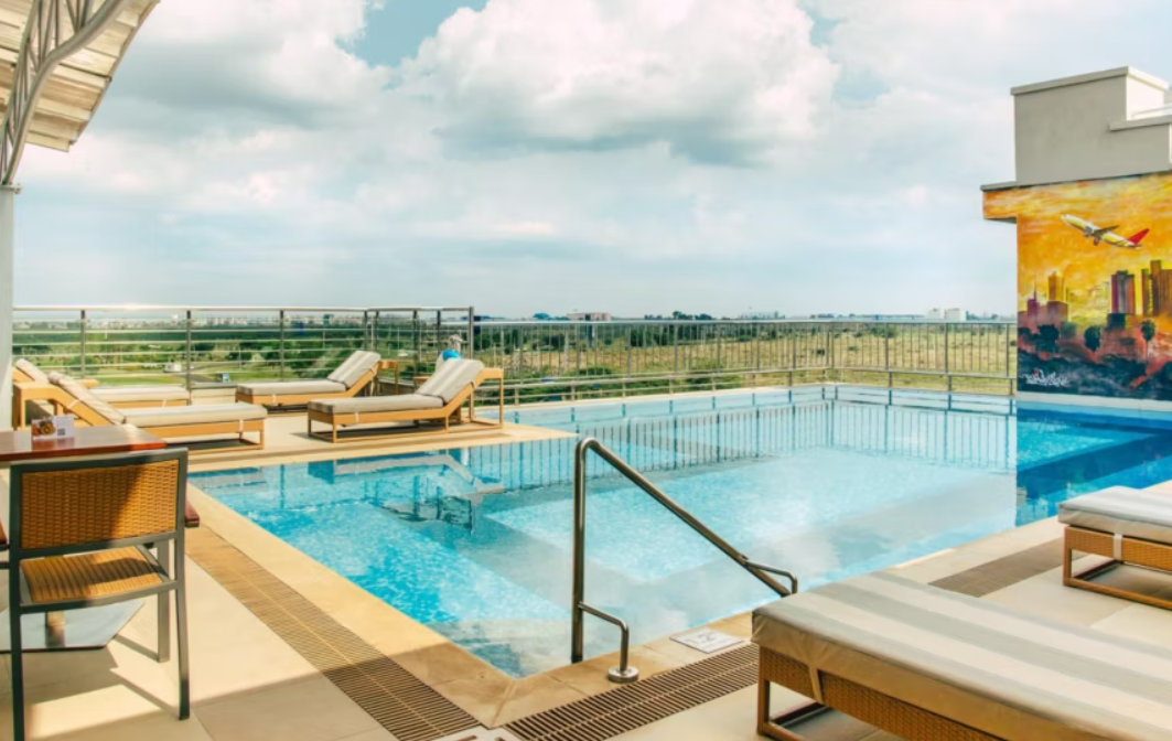 El Crowne Plaza Nairobi Airport es un hotel de cuatro estrellas ubicado a tan solo cinco minutos en coche del Aeropuerto Jomo Kenyatta, con servicio de traslado gratuito para mayor comodidad. Ofrece 144 habitaciones amplias y silenciosas, equipadas con aire acondicionado, minibar, cafetera, Wi‑Fi gratuito, escritorio y TV de pantalla grande, ideales tanto para viajeros de negocios como de tránsito . El complejo cuenta con varias opciones gastronómicas: un restaurante principal, una cafetería abierta 24 h, un bar en el lobby y otro en la piscina de la azotea. Dispone de gimnasio 24 h, spa con sauna, baño de vapor y tratamientos relajantes, y una piscina en la terraza panorámica . Además, cuenta con tres salas de reuniones, estacionamiento gratuito, y personal multilingüe disponible las 24 h. Su ubicación estratégica, servicios completos y atención profesional lo convierten en una excelente opción para estancias cortas, escalas o viajes de negocios en Nairobi.