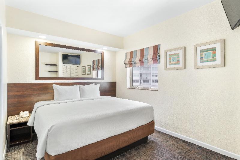 El Crystal Beach Suites Miami Oceanfront Hotel está ubicado directamente frente al mar en Miami Beach. Todas nuestras suites cuentan con un dormitorio privado con cama tamaño queen o king, una sala de estar con un sofá cama tamaño queen, una pequeña cocina totalmente equipada, dos televisores de pantalla plana de 43 pulgadas y acceso a internet WIFI gratuito. El hotel dispone de un gimnasio bien equipado y una piscina con vista al mar. Hay un paseo marítimo justo detrás del hotel que ofrece kilómetros de espacio para caminar, andar en bicicleta, correr, patinar o simplemente observar a la gente. Hay muchas tiendas, restaurantes, supermercados y tiendas de conveniencia agradables ubicadas justo al otro lado de la calle de la entrada del hotel.