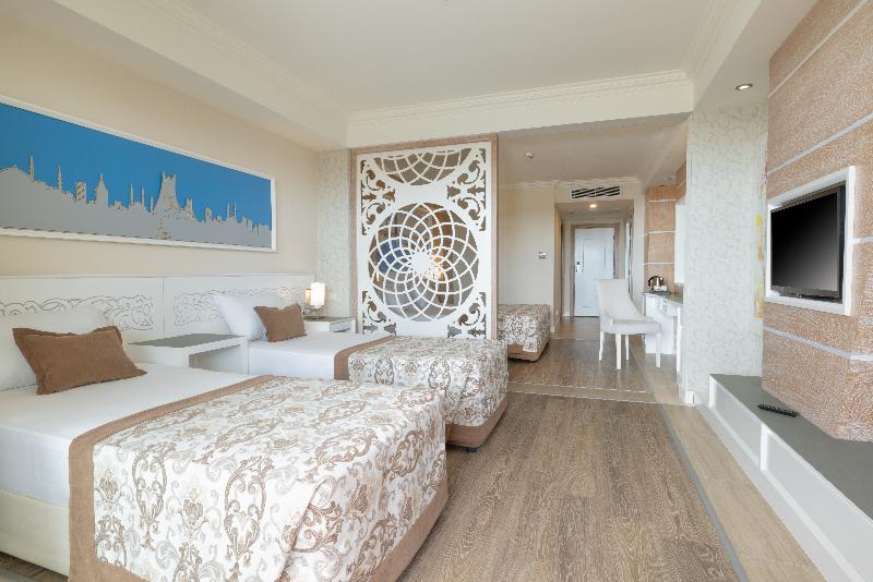 Un corto paseo por la playa de arena te lleva a Side Village, a solo 3, 5 km, o puedes llegar en menos de 10 minutos en transporte público. El aeropuerto de Antalya está a 60 minutos en coche de este elegante hotel resort. Relájate en habitaciones ricamente decoradas con colores cálidos, aire acondicionado central, TV vía satélite, caja fuerte y balcón. Ubicado en un terreno de 15 000 m², este moderno resort ofrece una gran cantidad de servicios para parejas y familias, incluyendo un anfiteatro, varias piscinas y un magnífico parque acuático con 11 toboganes (para mayores de 7 años). Deléitate con una variedad de delicias culinarias en nuestros restaurantes, que ofrecen cocina asiática, mariscos, mediterránea y local. Mímate en nuestro spa y centro de salud totalmente equipado, con 1000 m² de espacio que incluye un baño turco, sauna, baño de vapor y peluquería. Disfruta de opciones de entretenimiento ilimitadas, incluyendo la emoción del parque acuático más grande de la región y el emocionante tobogán Big King Cobra. El hotel está situado a 65 km del centro de la ciudad de Antalya.