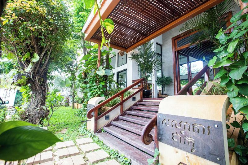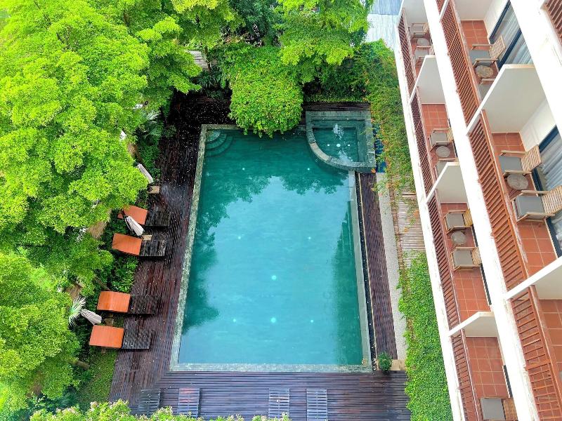 Disfruta de masajes, tratamientos corporales y faciales en este hotel de Siem Reap. Aprovecha el wifi gratuito, los servicios de conserjería y una acogedora chimenea en el vestíbulo. Saborea la cocina local e internacional en DACO, un bistró junto a la piscina con bar, salón y vistas al jardín, o come algo en la cafetería. Socializa con otros huéspedes en la recepción gratuita diaria y relájate con una bebida en el bar de la piscina. El desayuno bufé está disponible por un cargo adicional de 6:00 a 10:00. El hotel cuenta con un centro de negocios abierto las 24 horas, recepción 24 horas y personal multilingüe. Hay un servicio de traslado al aeropuerto disponible por un suplemento (24 horas) y aparcamiento gratuito. Cada una de las 33 habitaciones, decoradas de forma individual, ofrece chimenea y televisión de pantalla plana. Relájate en tu cama con pillow-top, edredón de plumas y ropa de cama de primera calidad. También se proporciona wifi gratuito y programación digital. Las comodidades incluyen caja fuerte y escritorio, con servicio de limpieza diario. El DACO Hotel está cerca de Angkor Night Market (0, 8 km), Artisans D'Angkor (0, 8 km) y Old Market Area (0, 8 km). El aeropuerto recomendado es el Aeropuerto Internacional de Siem Reap Angkor (SAI).
