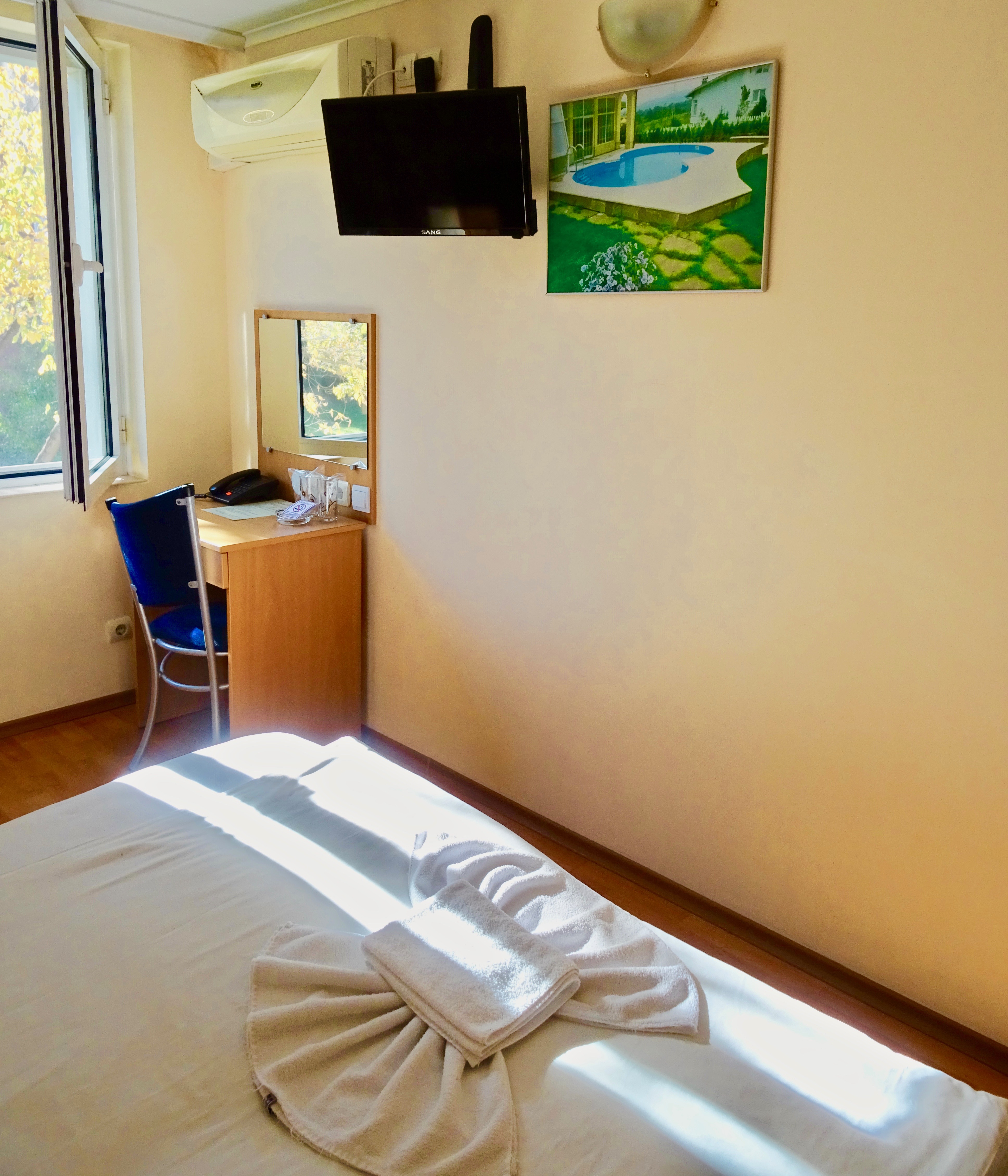 Instalaciones y servicios incluyen recepción las 24 horas, internet inalámbrico en áreas públicas, caja de seguridad en recepción (cargo extra), lobby bar y parking.Las habitaciones están equipadas con aire acondicionado y TV.Dirección: Blvd. White Brezi Block 16, 1618, Sofía, Bulgaria.