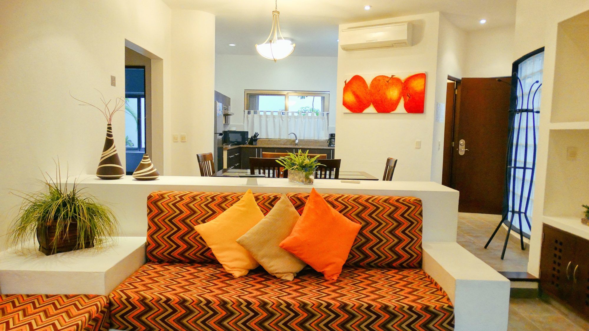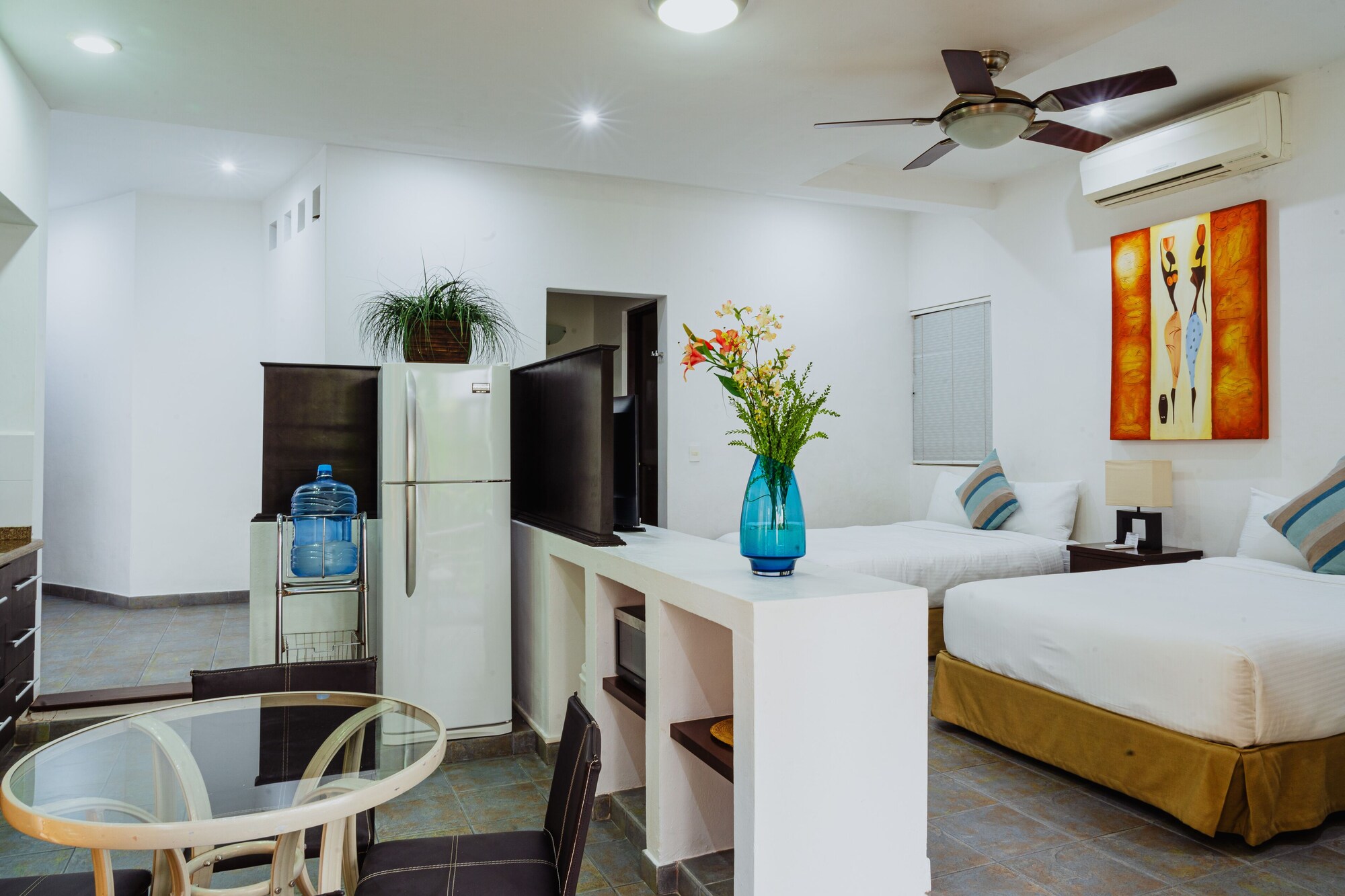 Dangelos 5ta Avenida Hotel está en pleno centro de Playa del Carmen, a pocos pasos de Club de playa Mamitas y a unos minutos de Playa del Coco. Este complejo de apartamentos se encuentra cerca de Quinta Alegría y de Muelle de Navega.Habitaciones Te sentirás como en tu propia casa en una de las 8 habitaciones con decoraciones diferentes, dotadas de frigorífico y televisor de pantalla plana. La conexión a Internet wifi gratis te mantendrá en contacto con los tuyos; también podrás ver tu programa favorito en el televisor con canales por cable. El cuarto de baño está provisto de ducha y artículos de higiene personal gratuitos. Las comodidades incluyen caja fuerte, cafetera y tetera y teléfono. Con piscina al aire libre y muchas otras instalaciones recreativas a tu disposición, no te quedará ni un minuto libre. Tienes también una terraza y jardín donde sentarte a contemplar el paisaje. Encontrarás también conexión a Internet wifi gratis, servicio de niñera (de pago) y asistencia turística y para la compra de entradas.Servicios de negocios y otros Tendrás periódicos gratuitos en el vestíbulo, servicio de recepción 24 horas y atención multilingüe a tu disposición. Se ofrece servicio de transporte al aeropuerto (ida y vuelta) de pago (a petición).