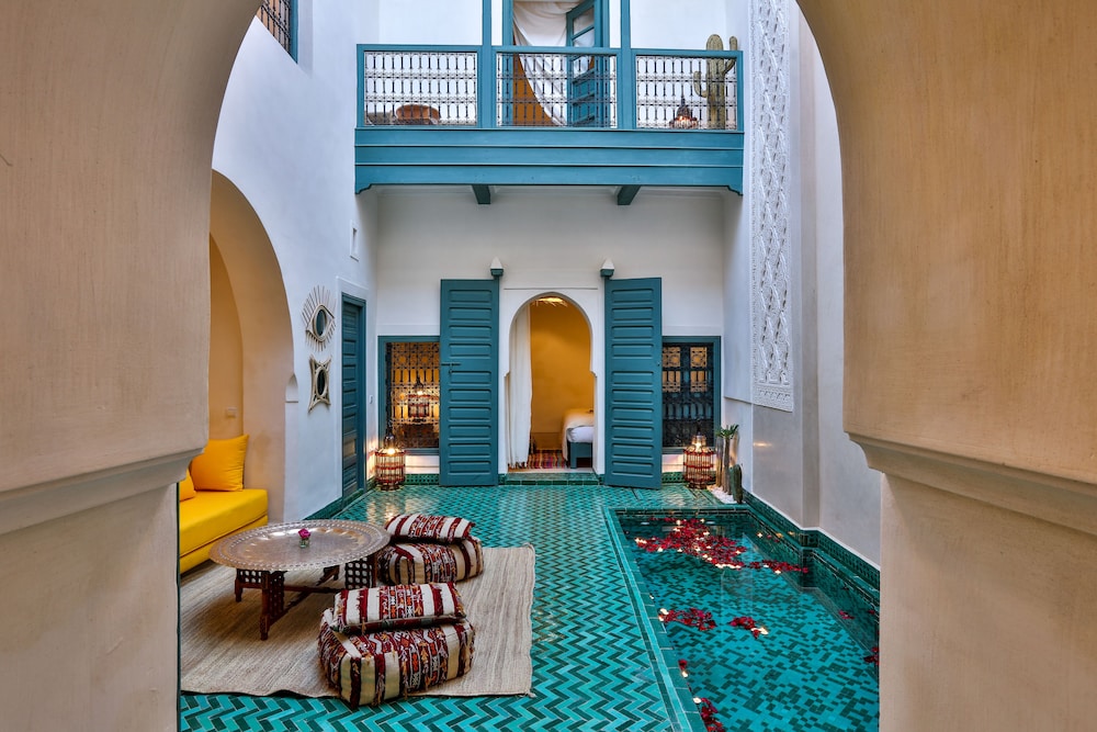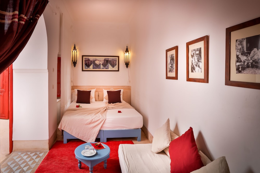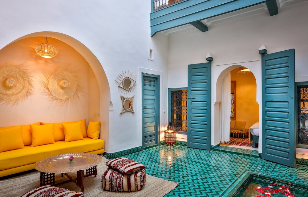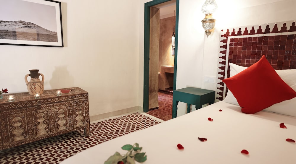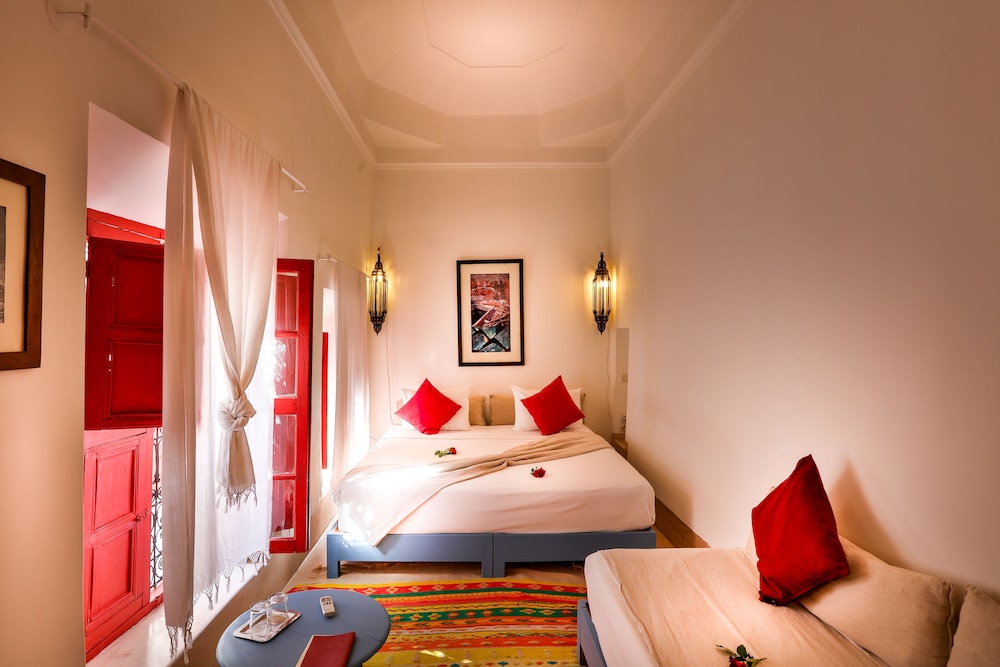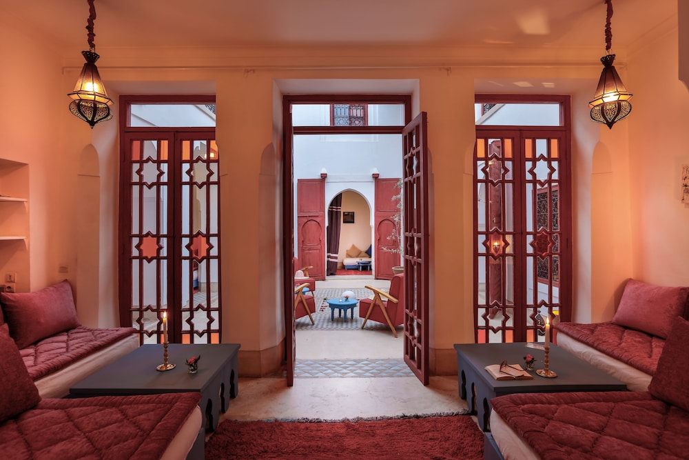 Si te alojas en Dar Baraka & Karam, en Marrakech (Medina), estarás a pocos minutos de Palacio Dar el Bacha y de Jardín Majorelle. Este riad de 4 estrellas se encuentra muy cerca de Mezquita de Mouassine y Mezquita de Ben Youssef.Habitaciones Te sentirás como en tu propia casa en una de las 9 con decoraciones diferentes habitaciones. El baño privado con ducha y bañera combinadas está provisto de artículos de higiene personal gratuitos y secador de pelo. Las comodidades incluyen escritorio y la posibilidad de solicitar cunas gratuitas. Te sentirás como nuevo gracias a los masajes. Tienes además jardín donde sentarte a contemplar el paisaje. Otros servicios de este riad incluyen conexión a Internet wifi gratis, servicio de niñera (de pago) y servicio de celebración de bodas.Para comer Si tienes hambre, pasa por el restaurante de este riad, que ofrece desayunos, almuerzos y cenas o utiliza el servicio de habitaciones con horario limitado.Servicios de negocios y otros Tendrás servicio de recepción 24 horas, lavandería y biblioteca a tu disposición. Se ofrece servicio de transporte al aeropuerto (ida y vuelta) de pago (a petición).