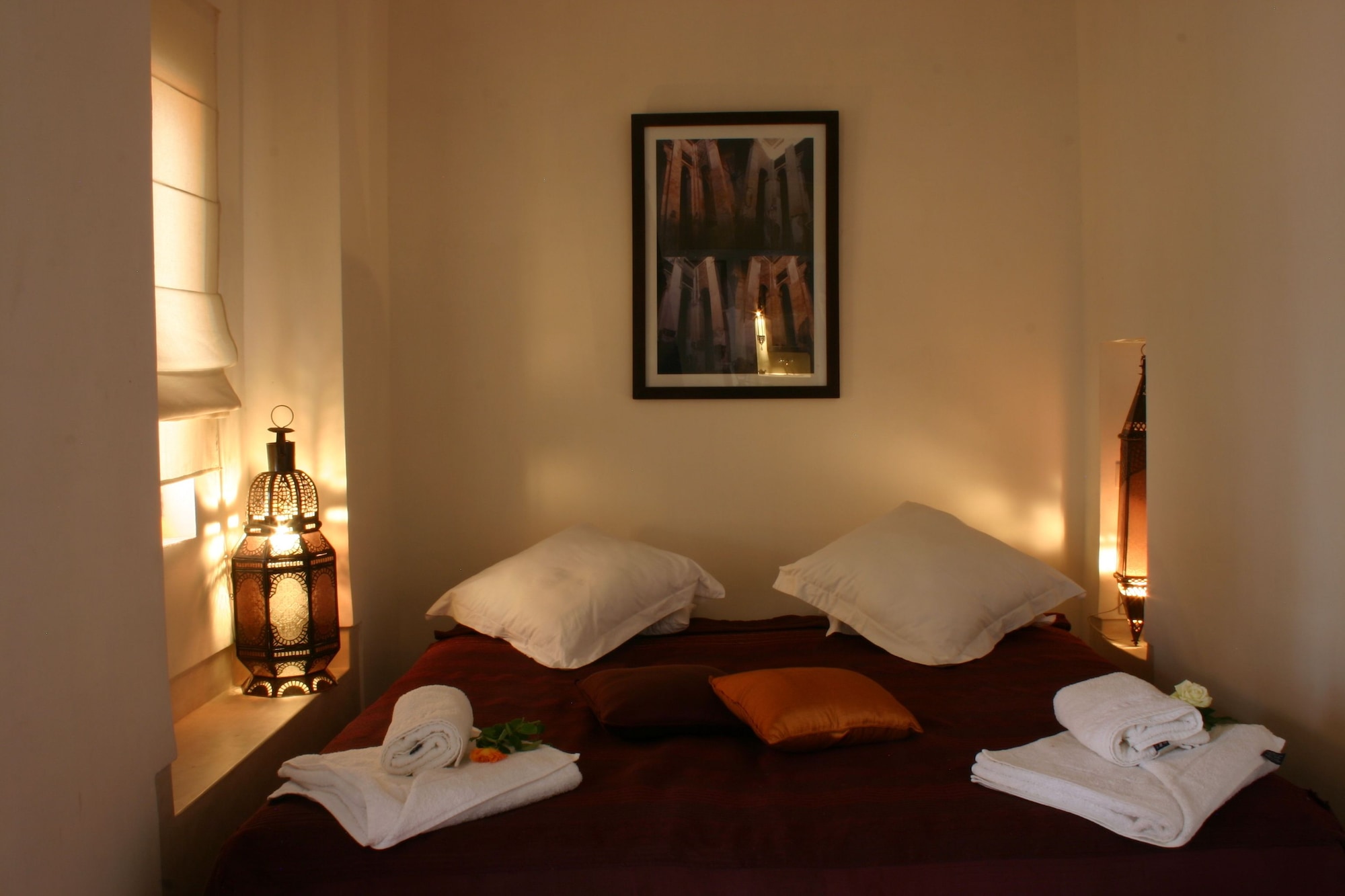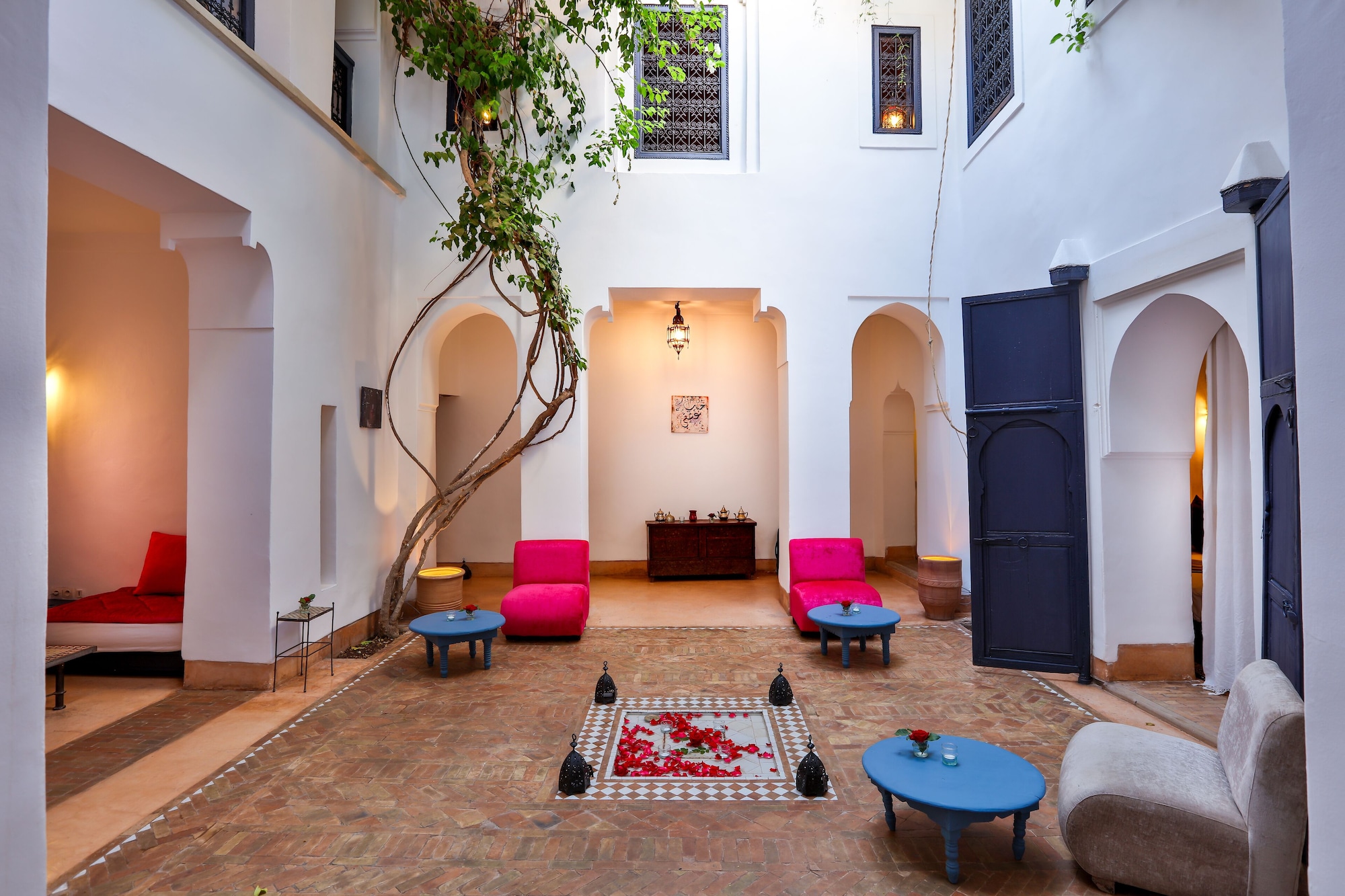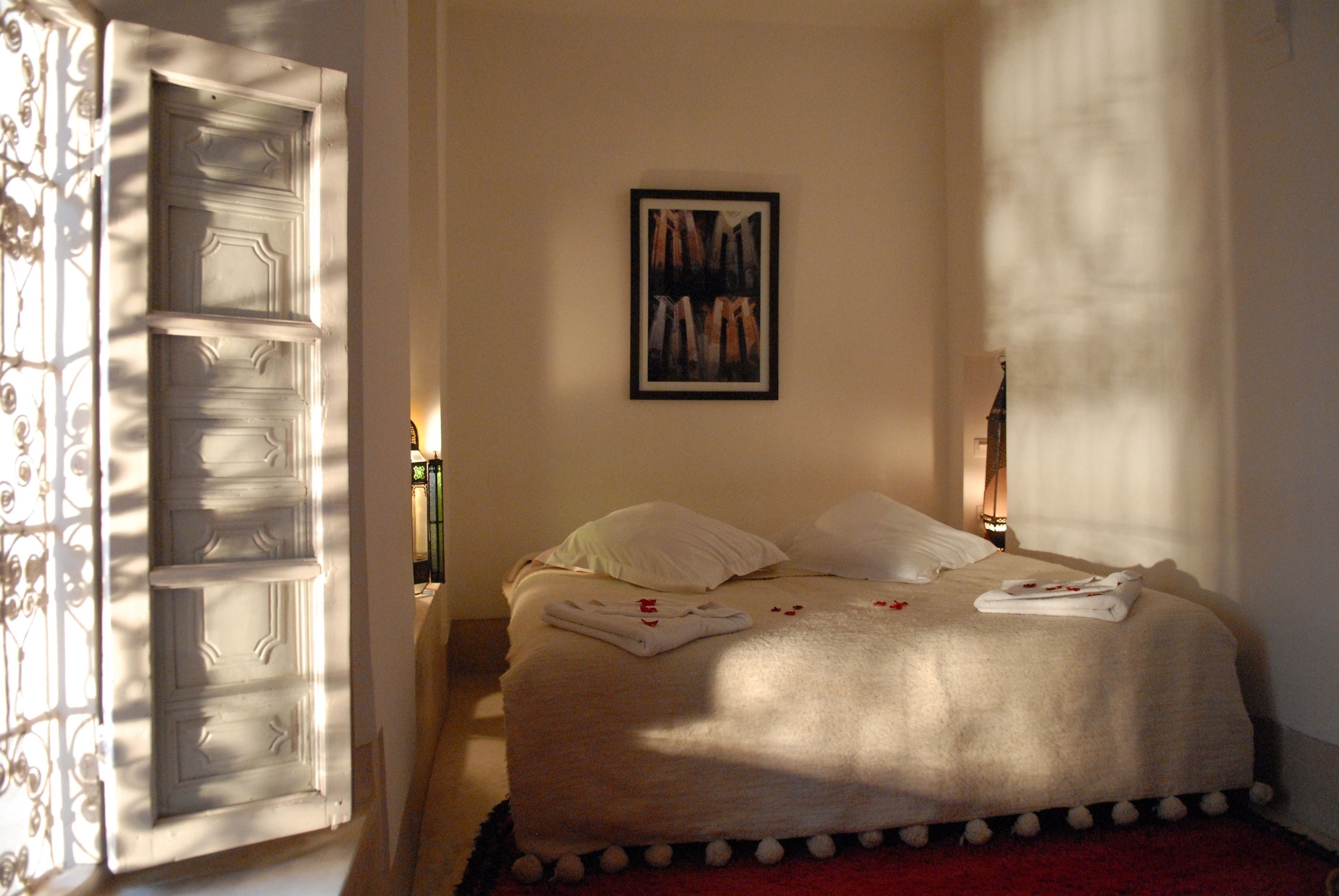 Si te alojas en Dar Baraka & Karam, en Marrakech (Medina), estarás a pocos minutos de Palacio Dar el Bacha y de Jardín Majorelle. Este riad de 4 estrellas se encuentra muy cerca de Mezquita de Mouassine y Mezquita de Ben Youssef.Habitaciones Te sentirás como en tu propia casa en una de las 9 con decoraciones diferentes habitaciones. El baño privado con ducha y bañera combinadas está provisto de artículos de higiene personal gratuitos y secador de pelo. Las comodidades incluyen escritorio y la posibilidad de solicitar cunas gratuitas. Te sentirás como nuevo gracias a los masajes. Tienes además jardín donde sentarte a contemplar el paisaje. Otros servicios de este riad incluyen conexión a Internet wifi gratis, servicio de niñera (de pago) y servicio de celebración de bodas.Para comer Si tienes hambre, pasa por el restaurante de este riad, que ofrece desayunos, almuerzos y cenas o utiliza el servicio de habitaciones con horario limitado.Servicios de negocios y otros Tendrás servicio de recepción 24 horas, lavandería y biblioteca a tu disposición. Se ofrece servicio de transporte al aeropuerto (ida y vuelta) de pago (a petición).