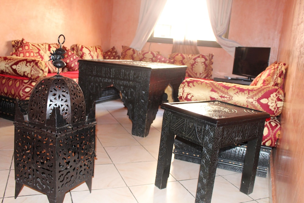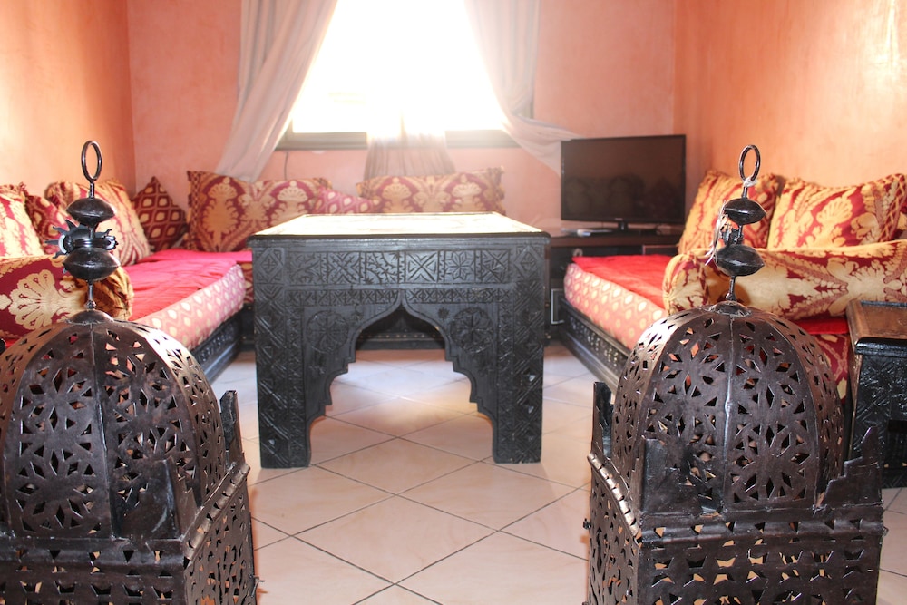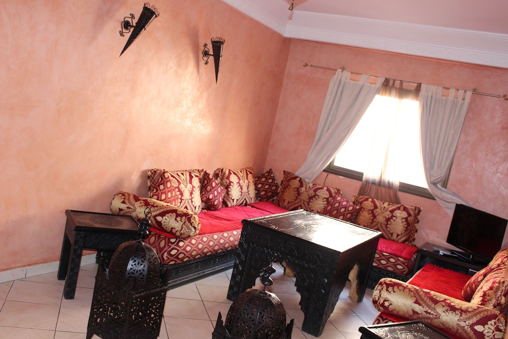 Si te alojas en Dar Salma, en Marrakech (Guéliz), estarás a pocos minutos de Hipermercado Marjane y Mezquita de Ben Youssef. Este apartamento se encuentra cerca de Museo Aman de la cultura del agua en Marruecos y de Museo de Yves Saint Laurent. Reserva una de las habitaciones climatizadas, dotadas de cocina con frigorífico y horno, y disfruta de una estancia inolvidable. Las habitaciones disponen de balcón. El televisor LCD de 32 pulgadas con canales por satélite es ideal para los momentos de ocio. Entre las comodidades, se incluyen escritorio, una zona de estar separada y la posibilidad de solicitar cunas gratuitas. Con piscina al aire libre de temporada y servicios de conserjería, entre muchas otras prestaciones, aquí tendrás todo lo que necesitas. Se sirve un desayuno de pago. Pagando un pequeño suplemento podrás aprovechar prestaciones como servicio de transporte desde el aeropuerto hasta el hotel (disponible las 24 horas) y aparcamiento sin asistencia gratuito.