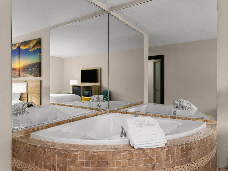 El vestíbulo del hotel y exterior parece agradable, cama y baño alfombra interior estaba bien, pero la habitación parece sucio. Ubicación cerca de la interestatal, pero parece la zona un poco...