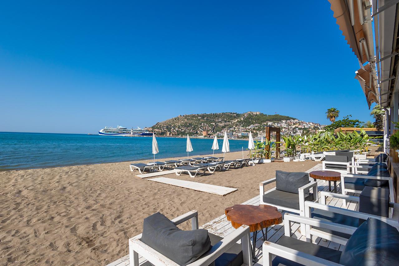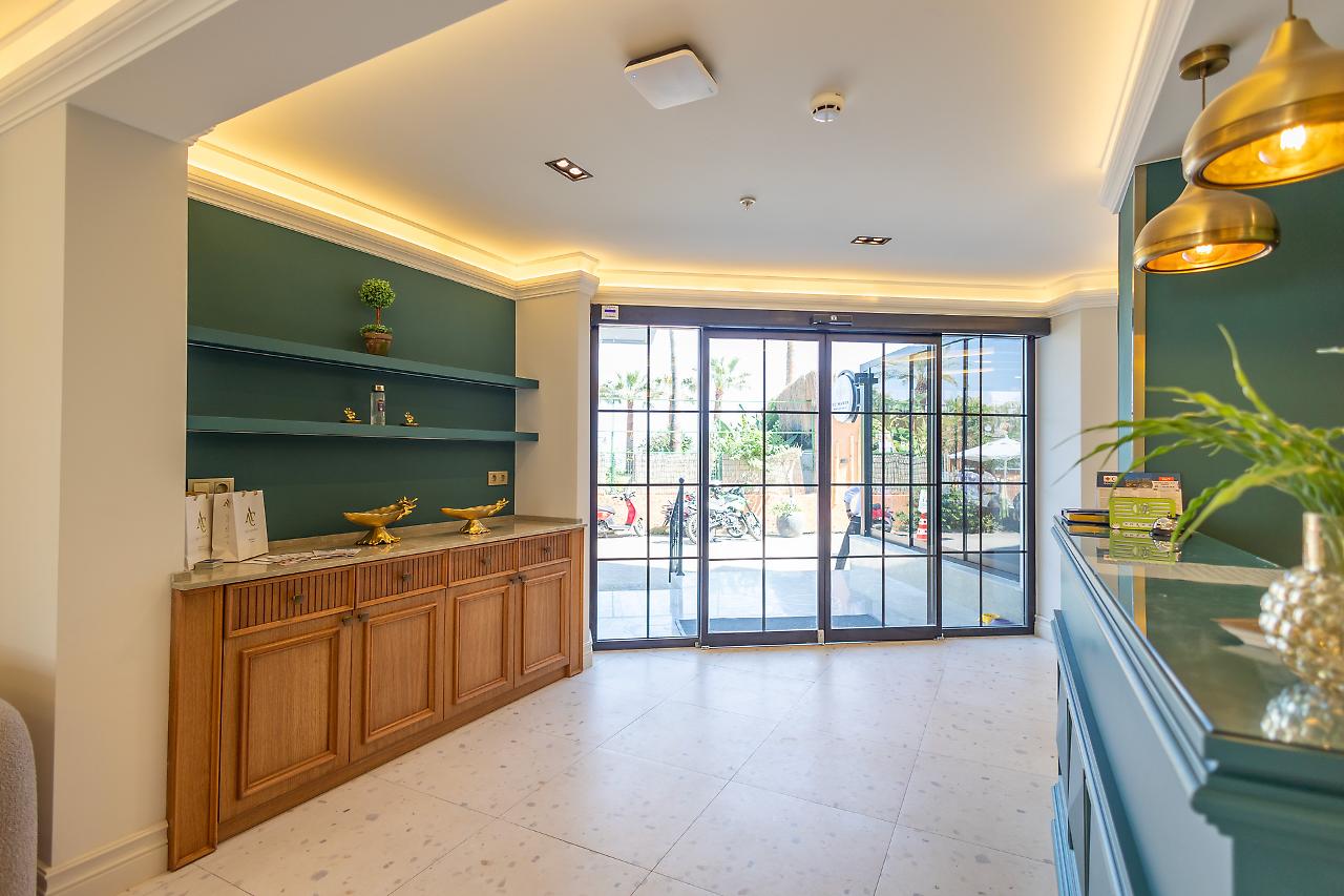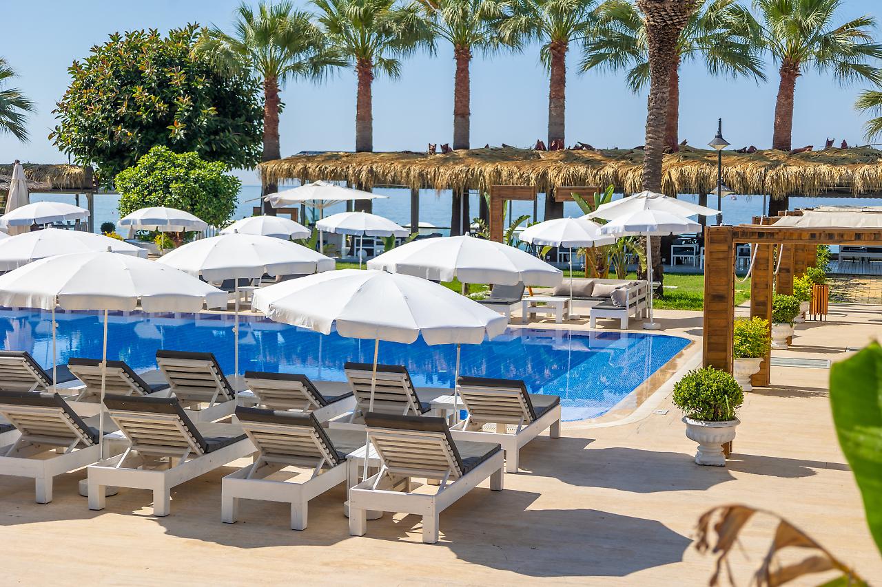 A unos 50 m de la playa privada y pública de arena, grava y piedra está el alojamiento De'Manor Hotel. Las tiendas y comercios están aprox. a 300 m del hotel, a unos 200 m puede encontrarse un supermercado. La distancia hasta el aeropuerto es de unos A unos 50 m de la playa privada y pública de arena, grava y piedra está el alojamiento De'Manor Hotel. Las tiendas y comercios están aprox. a 300 m del hotel, a unos 200 m puede encontrarse un supermercado. La distancia hasta el aeropuerto es de unos 40,4 km. Entre el hotel y el aeropuerto opera un servicio de traslado (de pago) durante 24 horas al día. Como opciones de entretenimiento, hay en las inmediaciones un teatro (a unos 2 km) y un cine (a unos 4 km). La playa es supervisada por un socorrista y galardonada con bandera azul. Los animales de compañía están permitidos en la playa. Aquí hay disponibles toallas de baño de pago y hamacas, colchonetas y sombrillas. Puede obtener bebidas frías directamente en el bar de la playa. Aquí hay también un paseo marítimo invita a dar un agradable paseo. El hotel con aire acondicionado y verificado por GPS cuenta con una recepción abierta las 24 horas del día (posibilidad de registrarse las 24 horas del día), un vestíbulo, conexión WiFi, conexión a Internet, un ascensor, un botiquín, aparcamiento (plazas limitadas) así como una sala de televisión con SAT-TV. En la parte exterior del establecimiento hay una piscina de temporada, en la cual puede disponerse de toallas de baño de pago y hamacas gratuito. Para su seguridad, el área de la piscina está supervisada por un salvavidas. Puede guardar sus objetos de valor en la caja fuerte y su equipaje en la consigna del hotel. Además, el hotel videovigilado las 24 horas. Pueden proporcionarse para los más pequeños cunas. Para su ropa, hay a su disposición un servicio de lavandería (de pago) y de planchado. Equipo de planchado también puede ser alquilado en el hotel por una tarifa. En caso de necesidad puede dirigirse al servicio médico todo el día. El voltaje del hotel es de 220 voltios. Para quienes disfrutan de su viaje de novios, el hotel tiene preparadas algunas ofertas especiales como, por ejemplo, una habitación decorada de forma romántica, habitaciones/artículos personalizados, habitaciones con una ubicación especialmente romántica y vistas, paquetes especiales de luna de miel, platos románticos en el restaurante, champán, vino espumoso, un regalo, una cesta de frutas o flores sobre la cama. En su hotel de vacaciones se da mucho valor a la sostenibilidad. A este propósito responden, entre otros, la separación de residuos en las habitaciones, un contenedor de reciclaje propio del hotel, la provisión de expendedores de jabón y champú y un sistema de limpieza compatible con el medio ambiente. El agua pueden dar lugar a costes adicionales en el hotel. Se aceptan Euro/Master Card o Visa como método de pago. Comidas Como servicios de restauración, el hotel ofrece: solo desayuno. Por la mañana se sirve un desayuno de bufé. Para el almuerzo se sirven platos de menú o a la carta con entrantes así como ensaladas (extras bajo petición y por un suplemento). Para la cena se sirven platos a la carta con entrantes y ensaladas. Todo incluido light incluye café y té, cerveza, vino así como bebidas alcohólicas locales e internacionales. Al reservar el todo incluido una bebida de bienvenida y - por un cargo adicional - algunas comidas en el restaurante a la carta se incluyen. Del disfrute culinario se ocupan un restaurante de bufé con terraza (comidas bajas en calorías y también vegetarianas) y una cafetería así como un bar de la piscina. La carta de bebidas del hotel incluye agua, refrescos, café y té, cerveza y vino. Distancias Parada de buses: A unos 50 m Parada de taxis: A unos 100 m Próximo médico: A unos 10 m Próximo dentista: A unos 1,2 km Próxima farmacia: A unos 25 m Hospital más cercano: A unos 900 m Próxima estación de diálisis: A unos 1,7 km Banco más cercano: A unos 550 m Información turística más