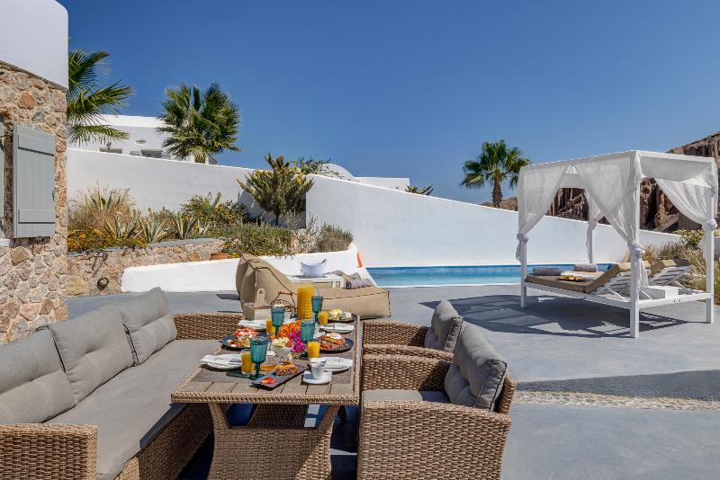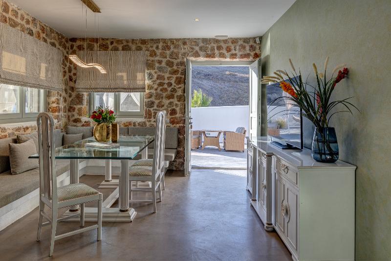 Desiterra Luxury Suites & Villas, un lugar para maravillarse con lo antiguo y experimentar lo nuevo, en el lugar más impresionante y mágico de Grecia, la isla de Santorini. Ofrecemos una experiencia vacacional única en un ambiente sereno con servicios de alta calidad bajo la excepcional luz griega y las mágicas vistas del mar Egeo. Equipado con todas las instalaciones de alta tecnología necesarias y un lujoso diseño interior, el resort Desiterra constituye una elección perfecta para quienes desean una experiencia excepcional y elegante en Santorini. Puedes relajarte al aire libre durante horas, solo o con amigos y familiares, en la espaciosa terraza o incluso en la terraza privada de cada suite, disfrutando tanto de la inspiradora vista al mar como de una piscina privada. Desiterra resort es una opción lujosa y excepcional de principio a fin.