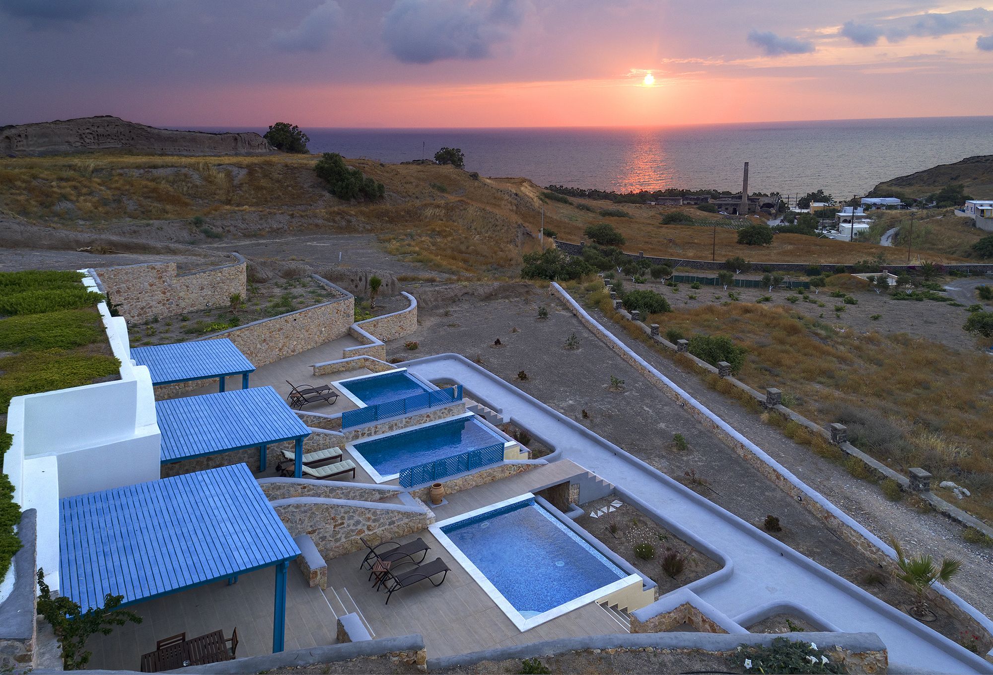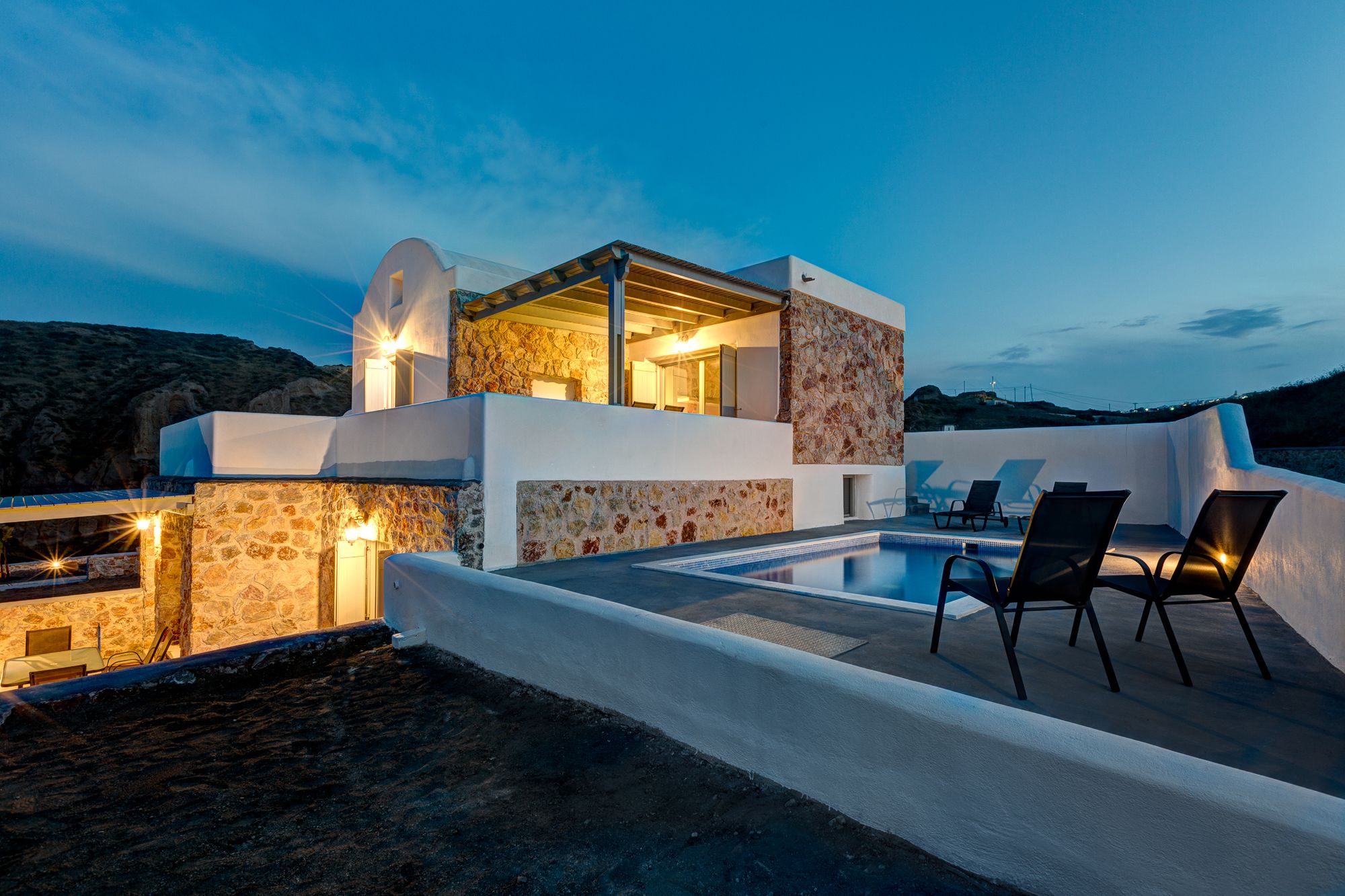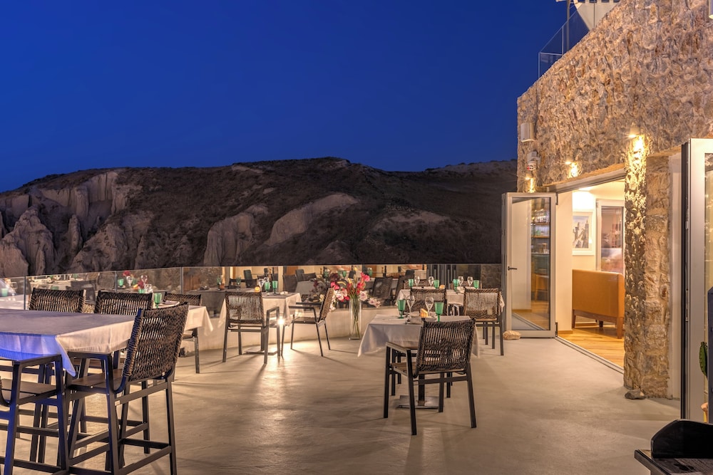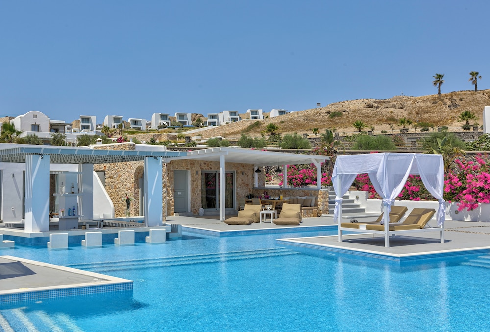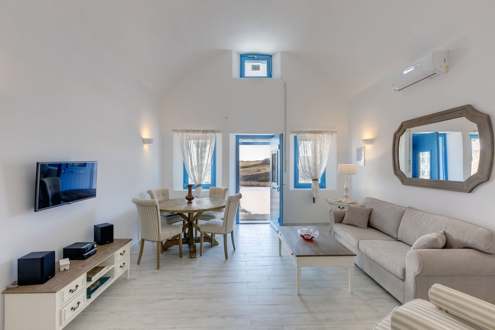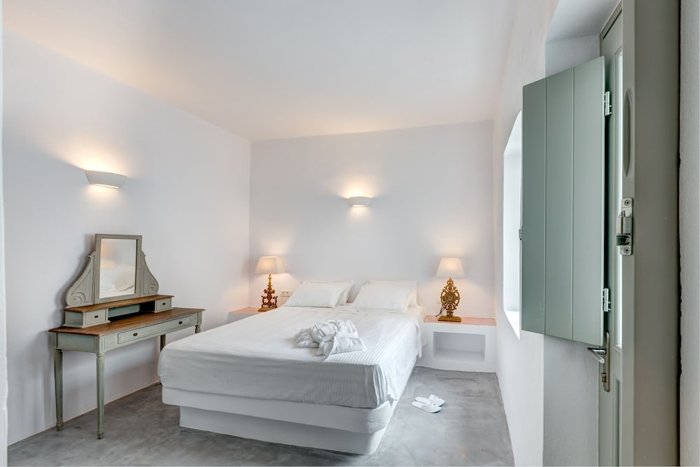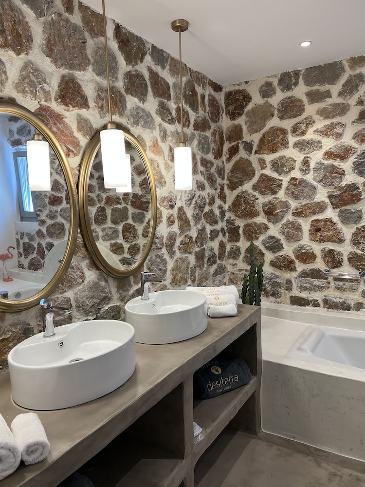 Si te alojas en Desiterra Santorini, en Exo Gialos (Exo Gialos), podrás llegar fácilmente a Playa de Vourvoulos y a Museo Arqueológico. Este complejo de apartamentos de 4 estrellas se encuentra muy cerca de Monasterio de Agios Nikolaos y Megaro Gyzi.Habitaciones Reserva una de las 4 habitaciones climatizadas, todas equipadas con piscina privada y televisor de pantalla plana. Las habitaciones disponen de balcón o patio con mobiliario. La cocina básica está equipada con frigorífico y placa de cocina. La conexión a Internet wifi gratis te mantendrá en contacto con los tuyos; también podrás ver tu programa favorito en el televisor con canales por cable.Servicios Con jardín donde descansar y comodidades como conexión a Internet wifi gratis, ¡no te faltará de nada!Servicios de negocios y otros Hay un aparcamiento sin asistencia gratuito disponible.