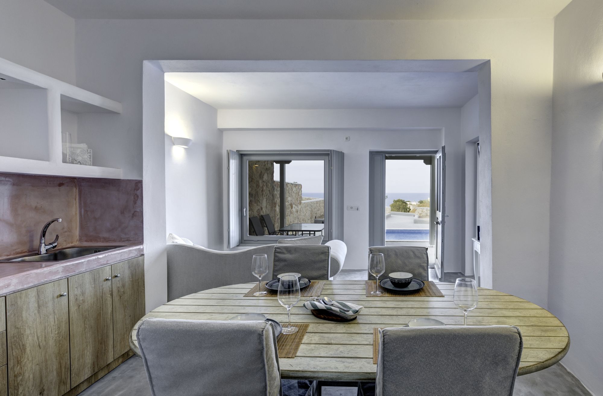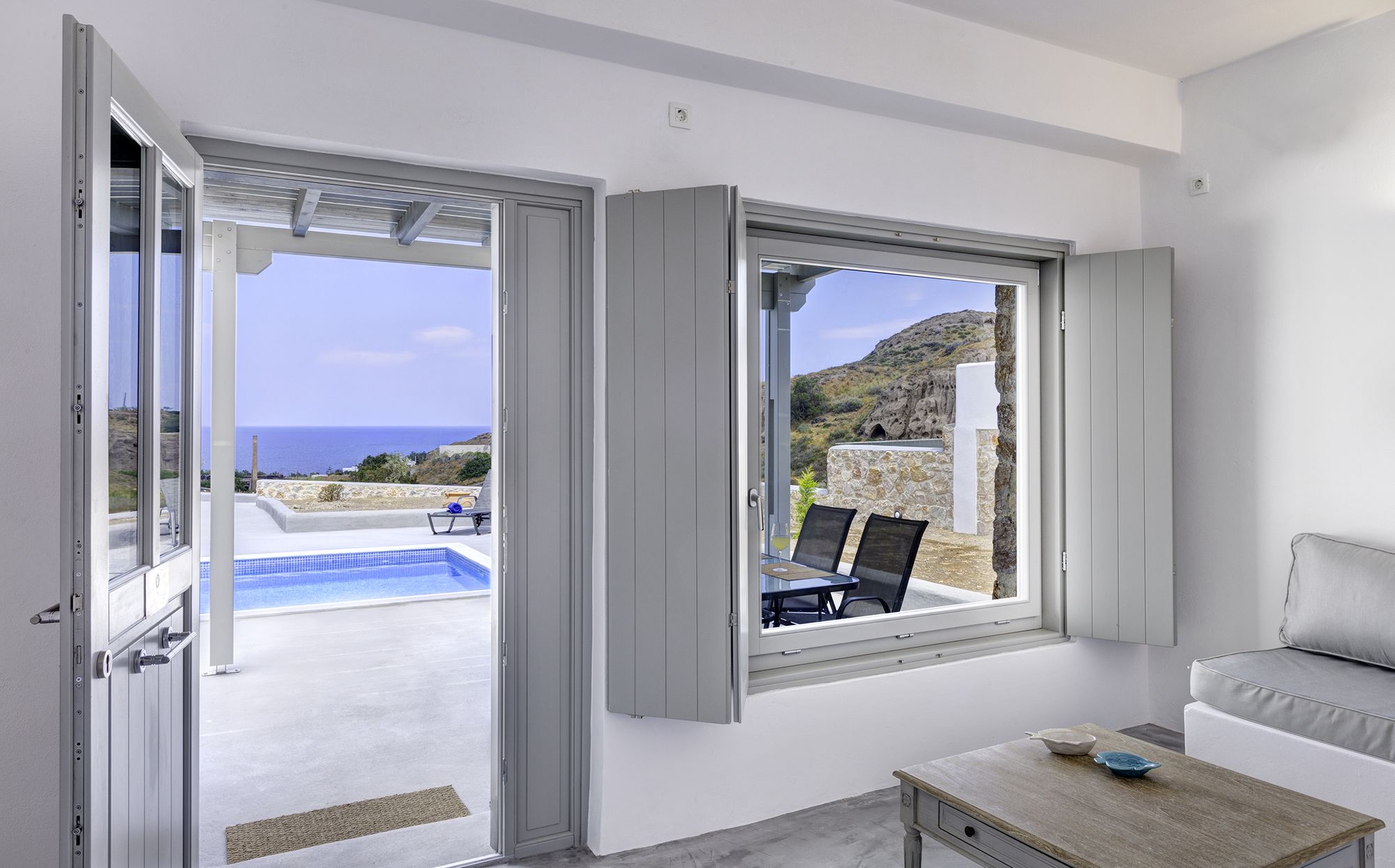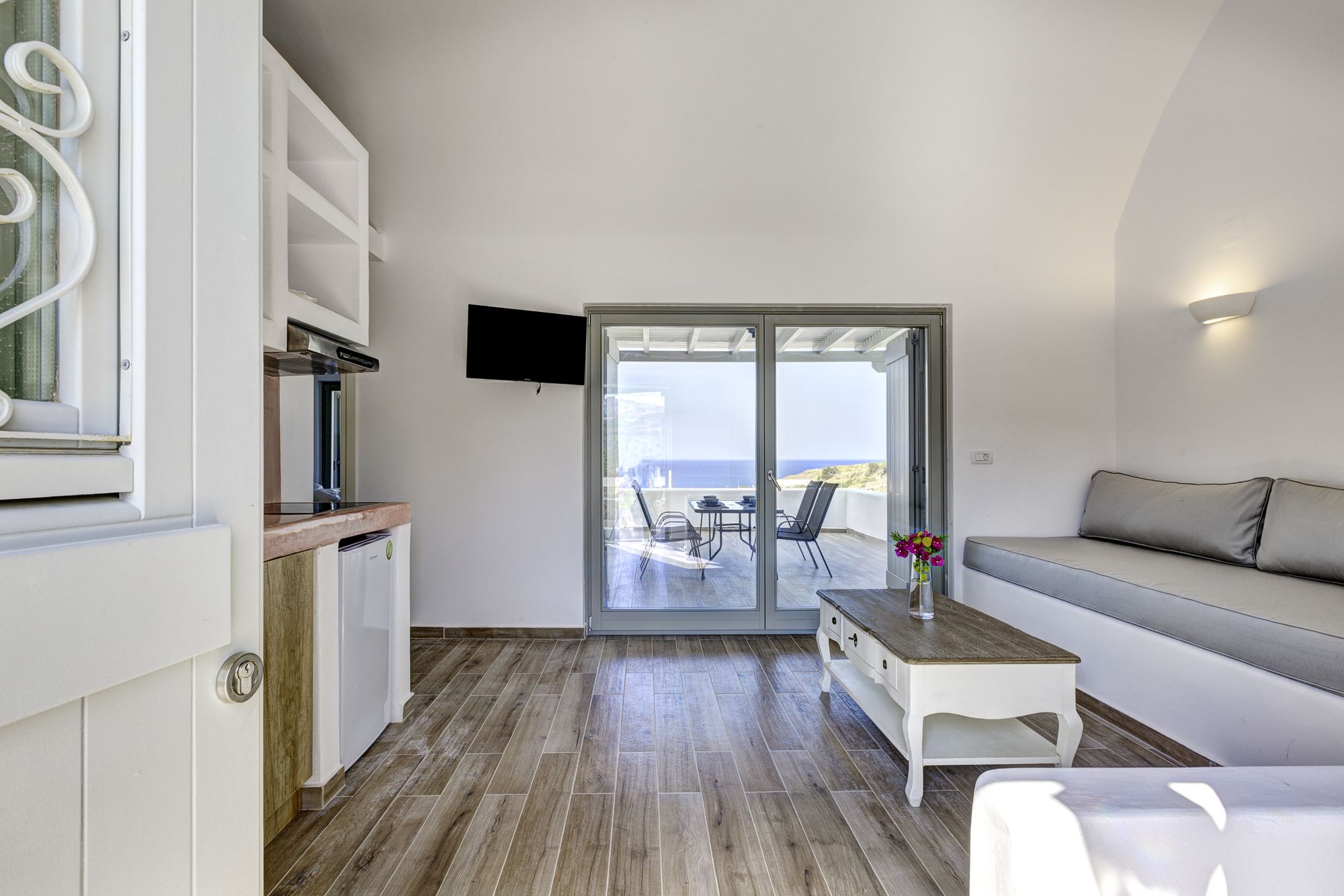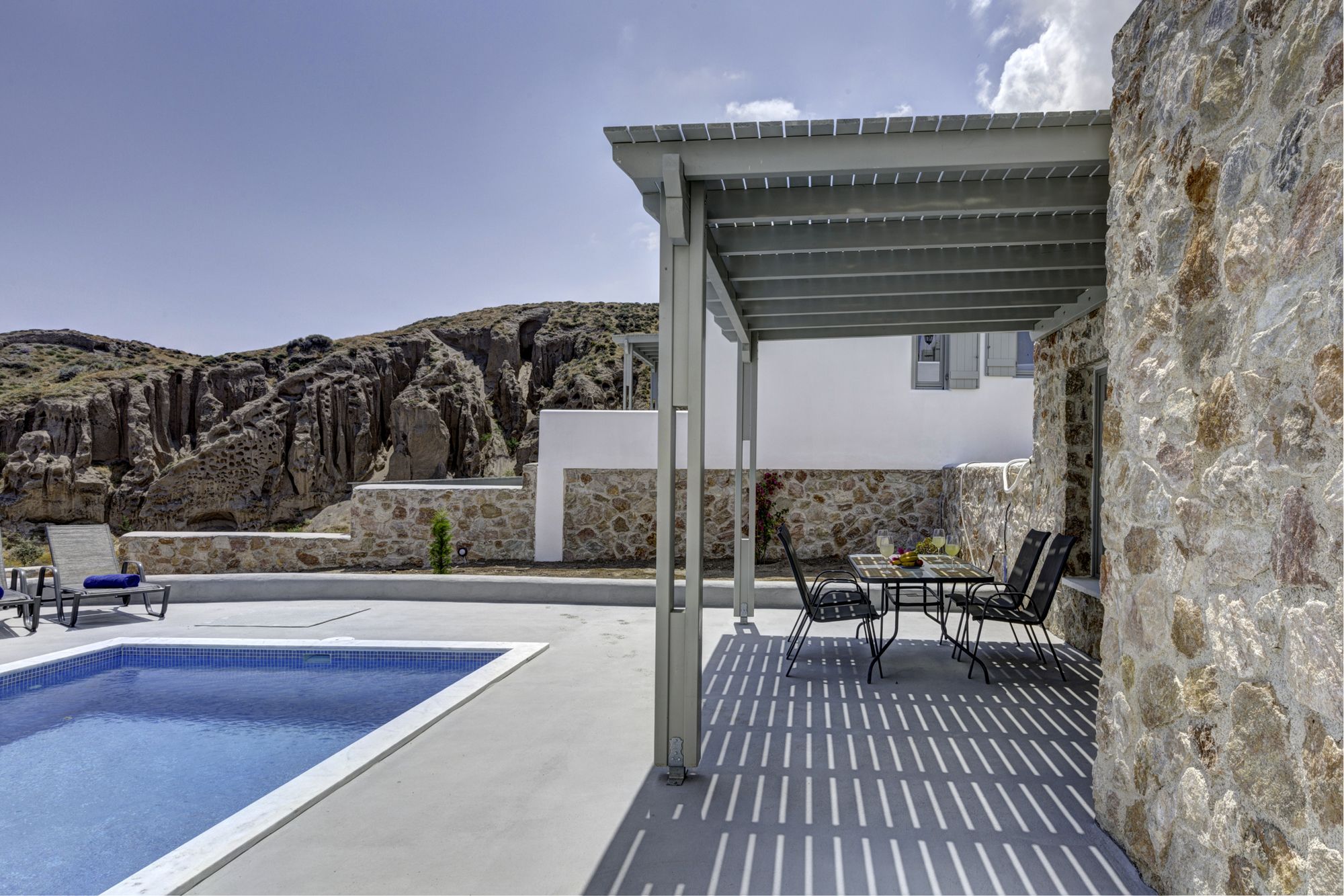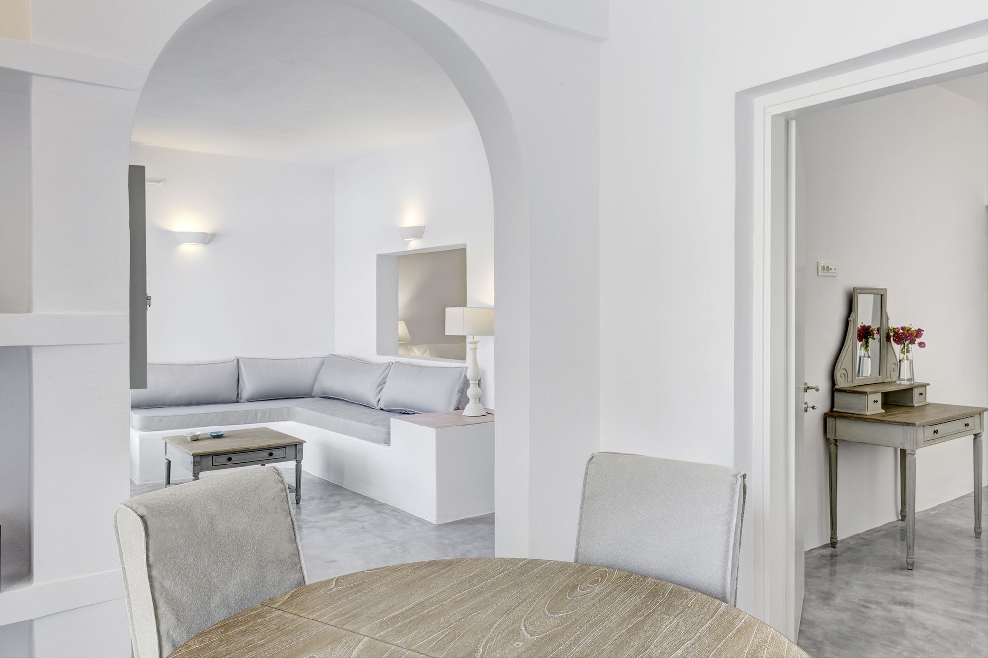 Si te alojas en Desiterra Santorini, en Exo Gialos (Exo Gialos), podrás llegar fácilmente a Playa de Vourvoulos y a Museo Arqueológico. Este complejo de apartamentos de 4 estrellas se encuentra muy cerca de Monasterio de Agios Nikolaos y Megaro Gyzi.Habitaciones Reserva una de las 4 habitaciones climatizadas, todas equipadas con piscina privada y televisor de pantalla plana. Las habitaciones disponen de balcón o patio con mobiliario. La cocina básica está equipada con frigorífico y placa de cocina. La conexión a Internet wifi gratis te mantendrá en contacto con los tuyos; también podrás ver tu programa favorito en el televisor con canales por cable.Servicios Con jardín donde descansar y comodidades como conexión a Internet wifi gratis, ¡no te faltará de nada!Servicios de negocios y otros Hay un aparcamiento sin asistencia gratuito disponible.