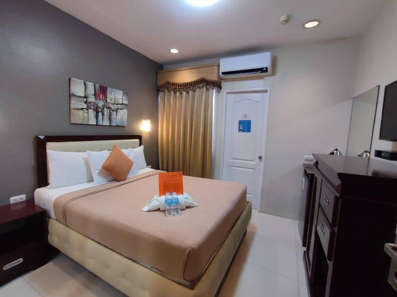 Situado en Angeles City, este alojamiento ofrece un lugar ideal para el descanso y la relajación para todos los visitantes de Pampanga. El Diosdado Macapagal International Airport se encuentra a 10 minutos en coche y puedes solicitar un servicio de traslado desde el hotel para que tu viaje sea un poco más cómodo. Los amantes de las compras estarán a solo 5 minutos en coche de las más de 300 tiendas y opciones de entretenimiento que alberga el SM City Clark Shopping Mall y a 20 minutos en coche de Clark Pampanga. El hotel en sí ofrece habitaciones acogedoras con una decoración moderna y todo lo necesario para una estancia agradable. Todas las unidades disponen de aire acondicionado, TV de pantalla plana, camas cómodas y caja fuerte para guardar tus objetos de valor. El WiFi gratuito está disponible en todo el establecimiento, incluso en el restaurante de la azotea, donde puedes disfrutar de un abundante desayuno o cenar con los deliciosos platos que se sirven durante el día.