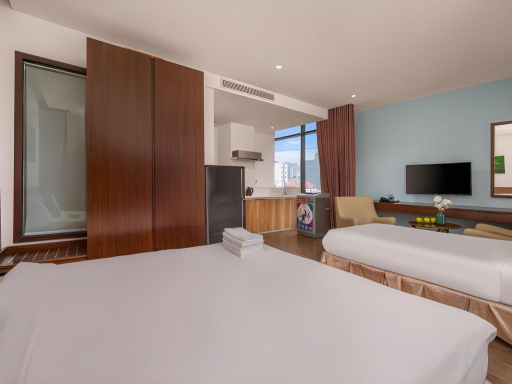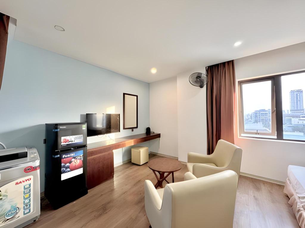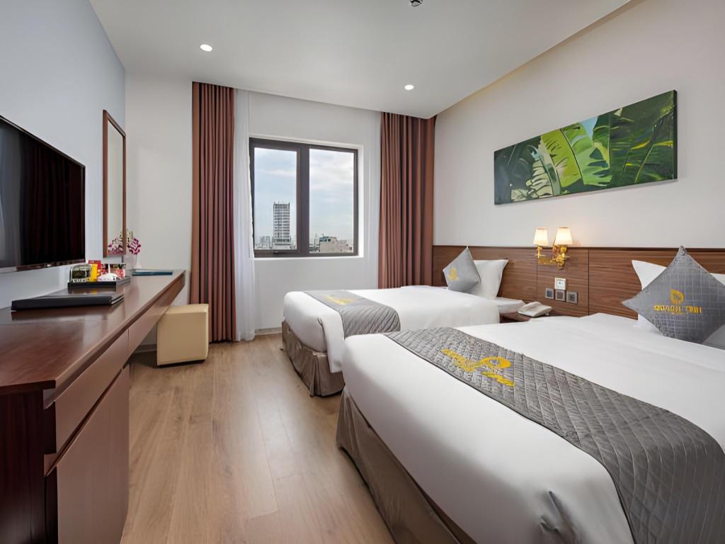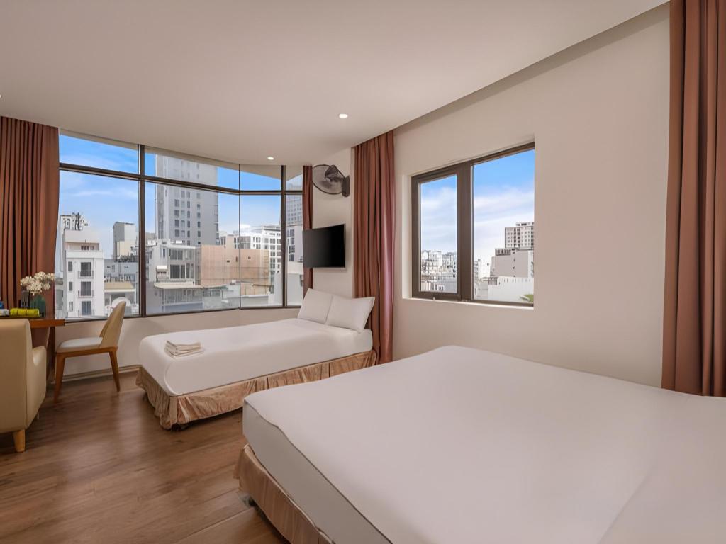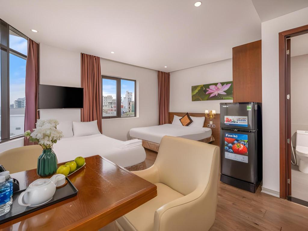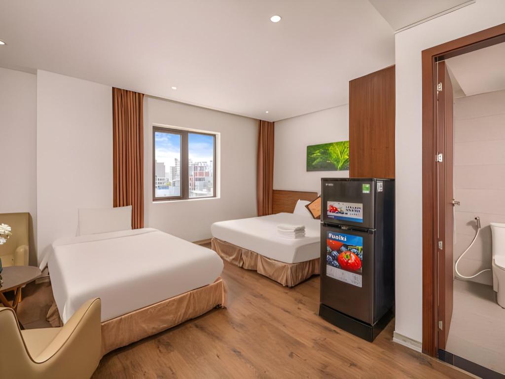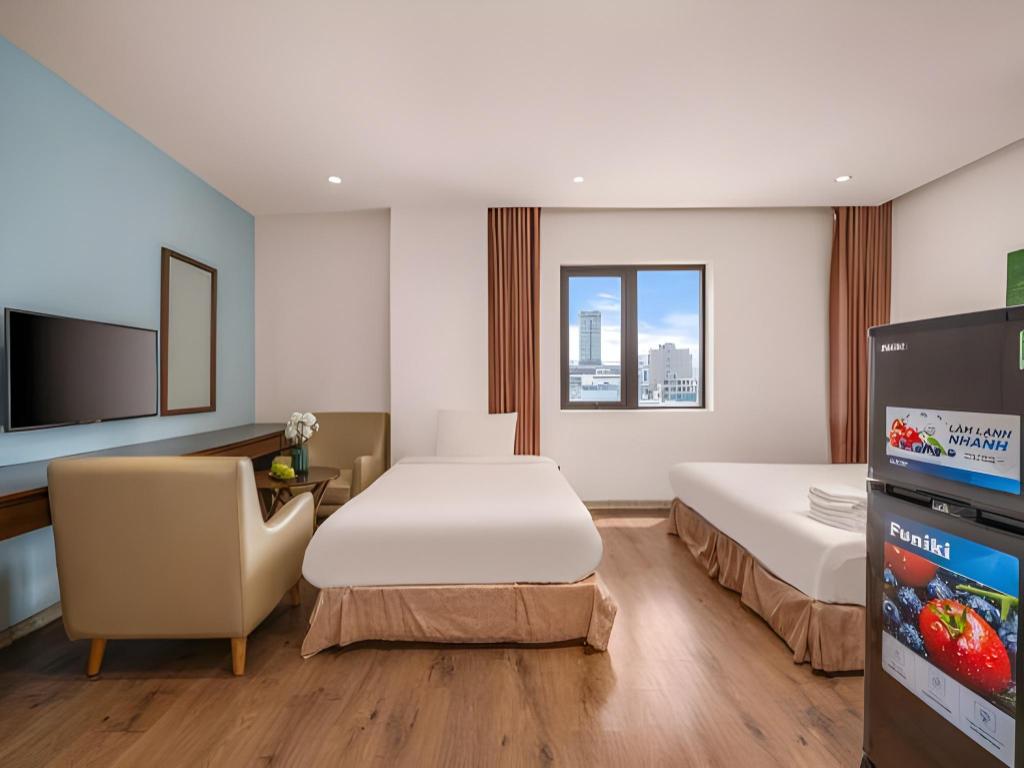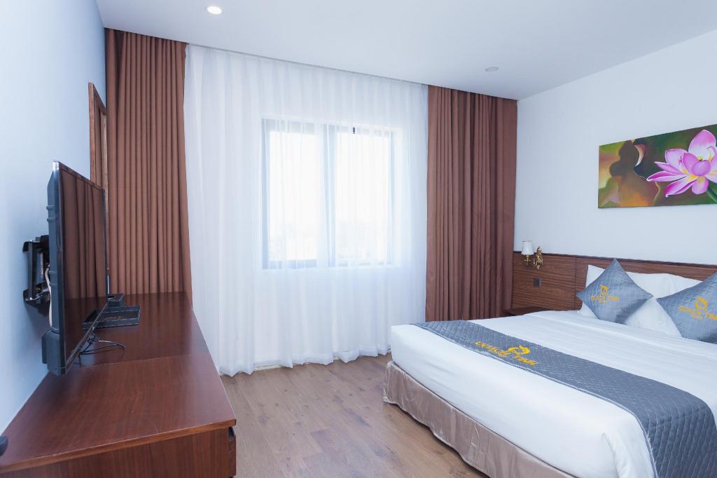 Si decides alojarte en Diamond Beach Hotel, te encontrarás en una fantástica zona de Da Nang (Centro de la ciudad de Đà Nẵng) y apenas te separarán diez minutos en coche de Museo de Escultura Cham y Parque del Mar del Este. Además, este hotel se encuentra a 10 km de Montañas de Mármol y a 1,3 km de Playa My Khe. Te sentirás como en tu propia casa en cualquiera de las 50 habitaciones con aire acondicionado y televisor LCD. La conexión a Internet wifi gratis te mantendrá en contacto con los tuyos; también podrás ver tu programa favorito en el televisor con canales por cable. El baño privado está provisto de artículos de higiene personal gratuitos y secador de pelo. Entre las comodidades, se incluyen escritorio y periódicos gratuitos, además de un servicio de limpieza disponible todos los días. Con piscina al aire libre y muchas otras instalaciones recreativas a tu disposición, no te quedará ni un minuto libre. Se ofrece también conexión a Internet wifi gratis y asistencia turística y para la compra de entradas. En pocos minutos estarás relajándote en la playa gracias al servicio de transporte disponible (de pago). Este hotel pone a tu disposición una cafetería. Tendrás periódicos gratuitos en el vestíbulo, servicio de tintorería y servicio de recepción 24 horas a tu disposición. Pagando un pequeño suplemento podrás aprovechar prestaciones como servicio de transporte al aeropuerto (ida y vuelta) (disponible las 24 horas) y aparcamiento sin asistencia gratuito.