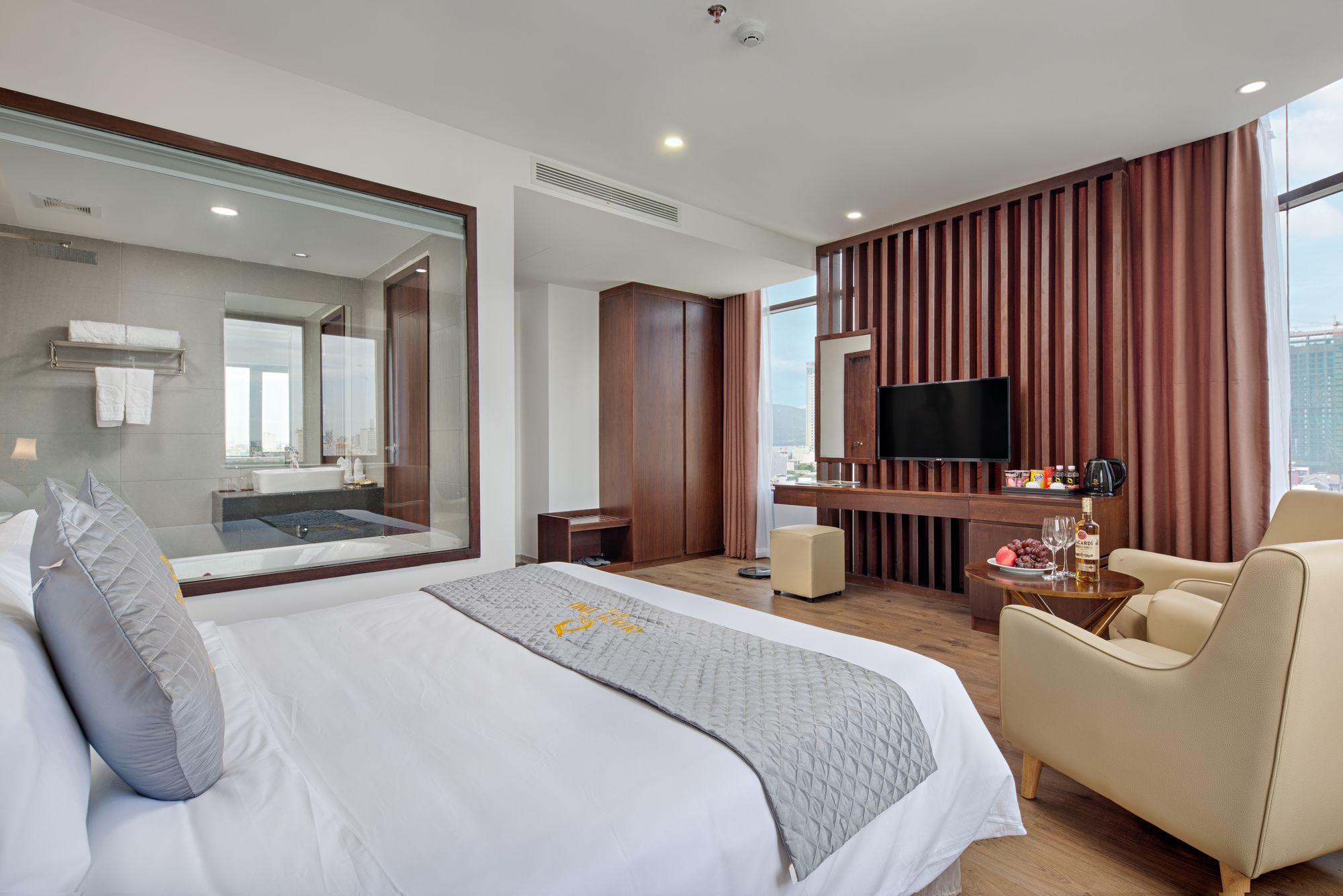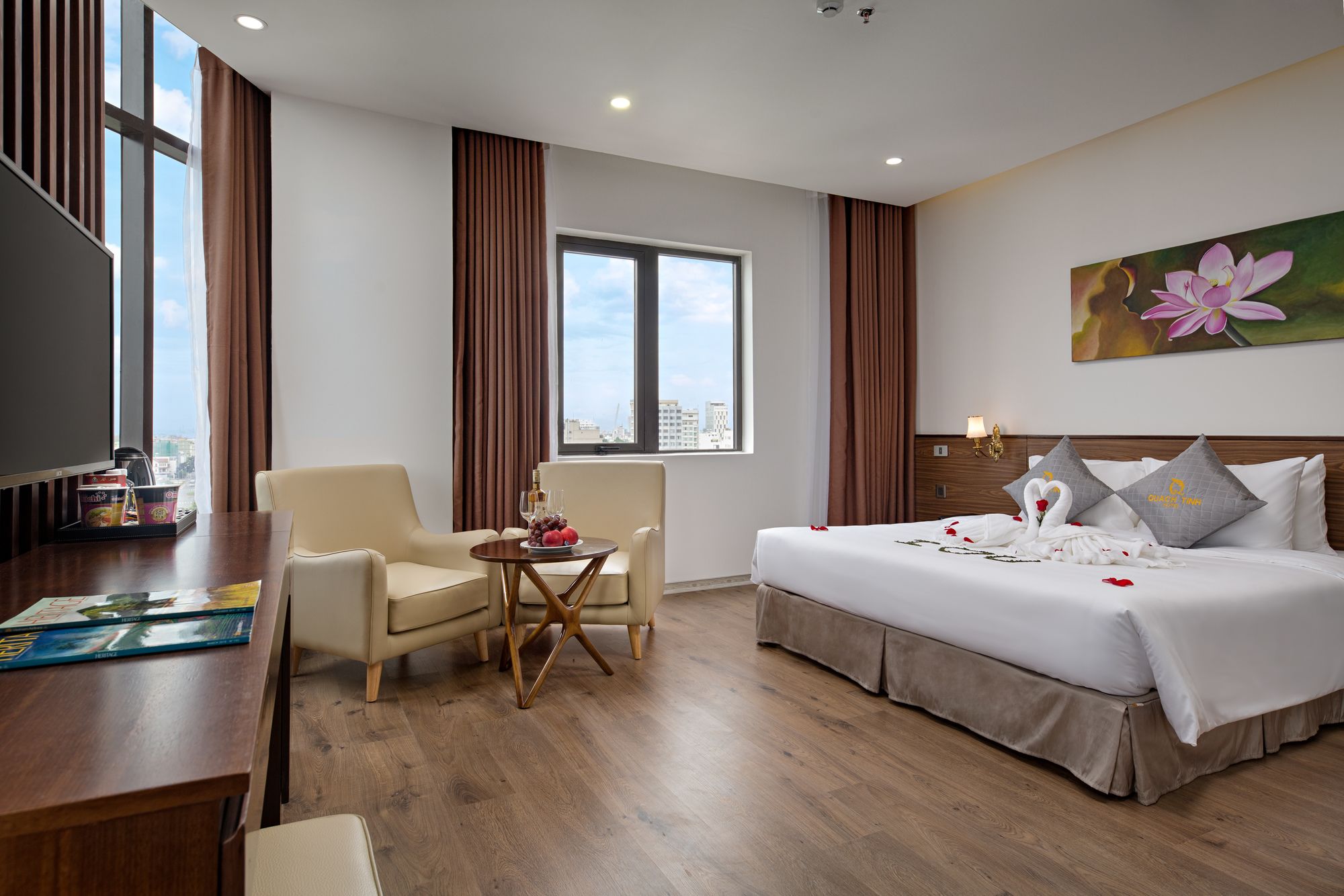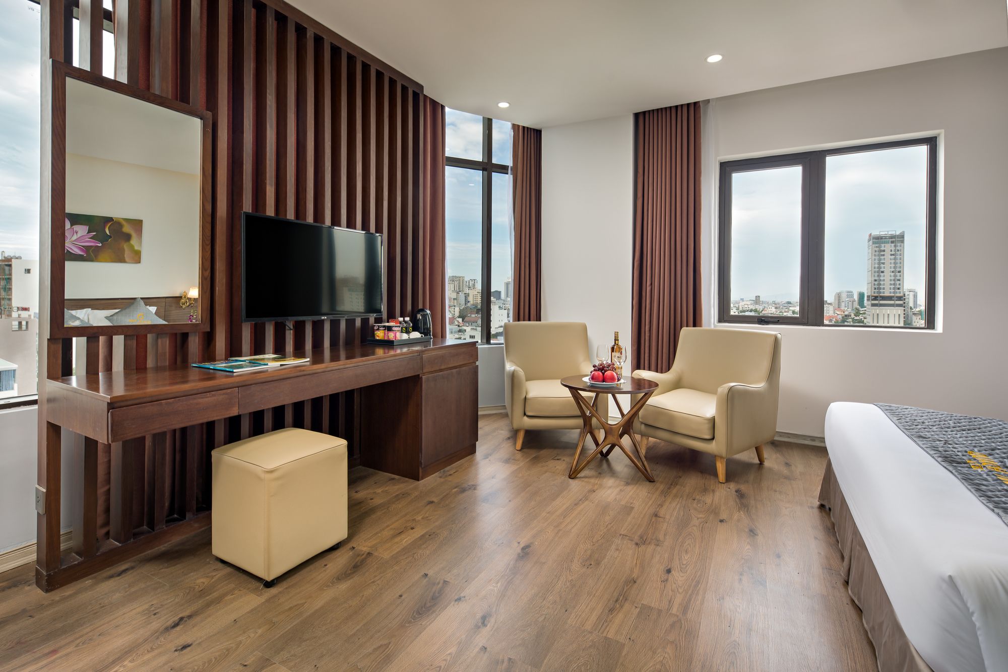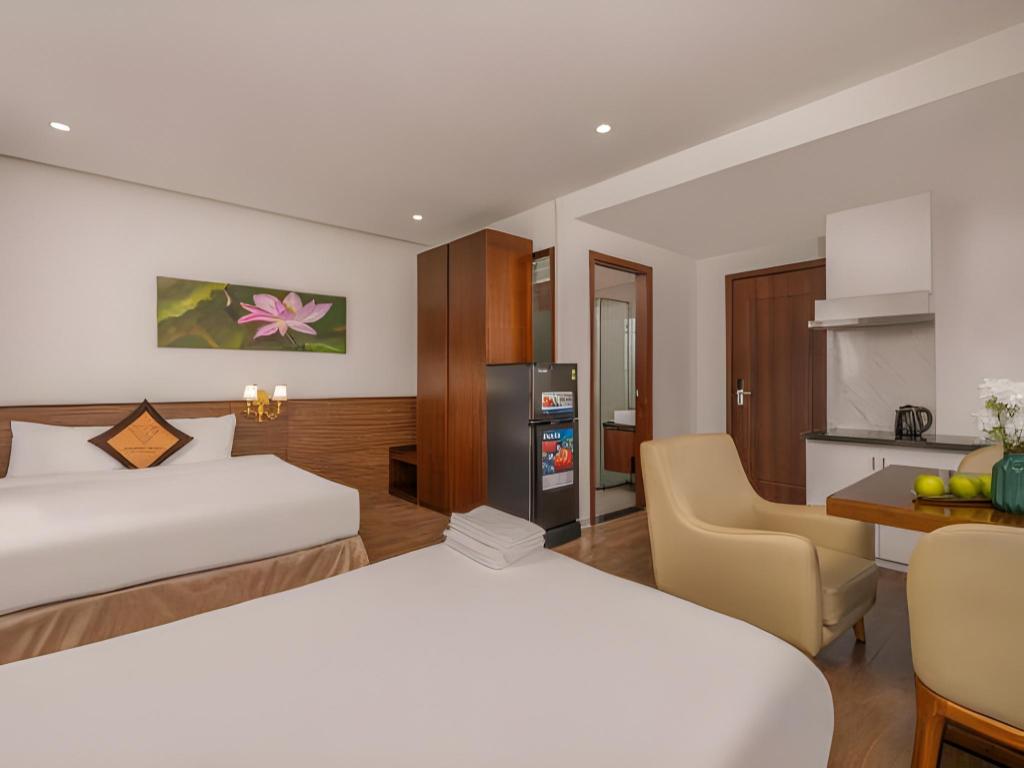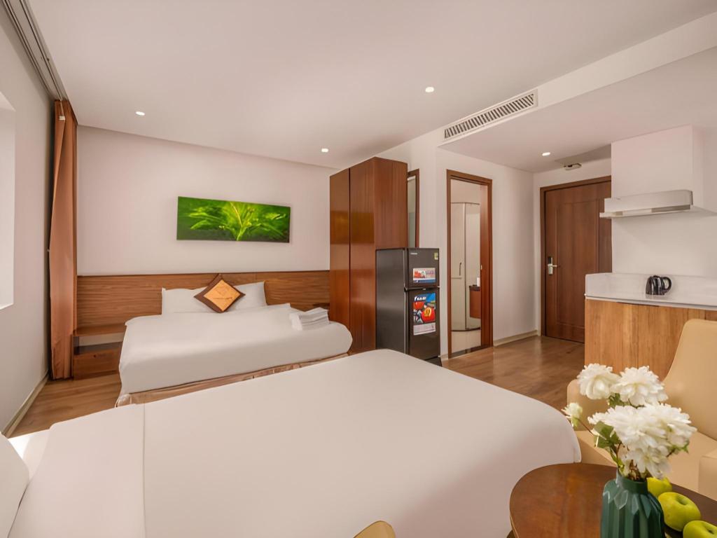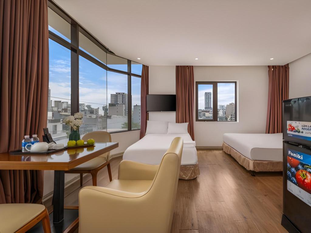 Si decides alojarte en Diamond Beach Hotel, te encontrarás en una fantástica zona de Da Nang (Centro de la ciudad de Đà Nẵng) y apenas te separarán diez minutos en coche de Museo de Escultura Cham y Parque del Mar del Este. Además, este hotel se encuentra a 10 km de Montañas de Mármol y a 1,3 km de Playa My Khe. Te sentirás como en tu propia casa en cualquiera de las 50 habitaciones con aire acondicionado y televisor LCD. La conexión a Internet wifi gratis te mantendrá en contacto con los tuyos; también podrás ver tu programa favorito en el televisor con canales por cable. El baño privado está provisto de artículos de higiene personal gratuitos y secador de pelo. Entre las comodidades, se incluyen escritorio y periódicos gratuitos, además de un servicio de limpieza disponible todos los días. Con piscina al aire libre y muchas otras instalaciones recreativas a tu disposición, no te quedará ni un minuto libre. Se ofrece también conexión a Internet wifi gratis y asistencia turística y para la compra de entradas. En pocos minutos estarás relajándote en la playa gracias al servicio de transporte disponible (de pago). Este hotel pone a tu disposición una cafetería. Tendrás periódicos gratuitos en el vestíbulo, servicio de tintorería y servicio de recepción 24 horas a tu disposición. Pagando un pequeño suplemento podrás aprovechar prestaciones como servicio de transporte al aeropuerto (ida y vuelta) (disponible las 24 horas) y aparcamiento sin asistencia gratuito.