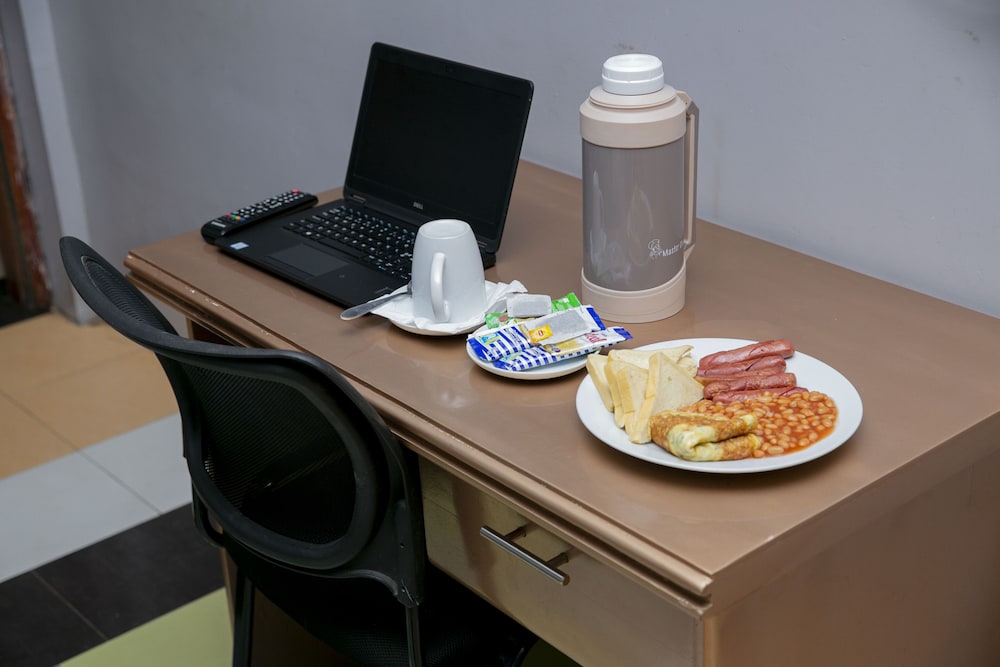 En Acra, Dikab Hotel se sitúa a poca distancia de Playa de Teshie y de Playa de Labadi. Este bed and breakfast se encuentra a pocos kilómetros de Centro comercial The Junction Mall y de Embajada de los Estados Unidos. Reserva una de las 30 habitaciones climatizadas, todas equipadas con chimenea y televisor de pantalla plana. La conexión a Internet wifi gratis te mantendrá en contacto con los tuyos; también podrás ver tu programa favorito en el televisor con canales por cable. Entre las comodidades, se incluyen escritorio y frigorífico, además de un servicio de limpieza disponible todos los días. Aprovecha los prácticos servicios que se te ofrecen, como conexión a Internet wifi gratis o asistencia turística y para la compra de entradas. Toma algo de cocina local e internacional en Dikab restaurant , restaurante con un bar, aunque también puedes llamar al servicio de habitaciones las 24 horas. Se sirve un desayuno inglés gratuito todos los días de 7:00 a 9:00. Tendrás servicio de tintorería, atención multilingüe y caja fuerte en recepción a tu disposición. Pagando un pequeño suplemento podrás aprovechar prestaciones como servicio de transporte desde el aeropuerto hasta el hotel (disponible las 24 horas) y aparcamiento sin asistencia gratuito.