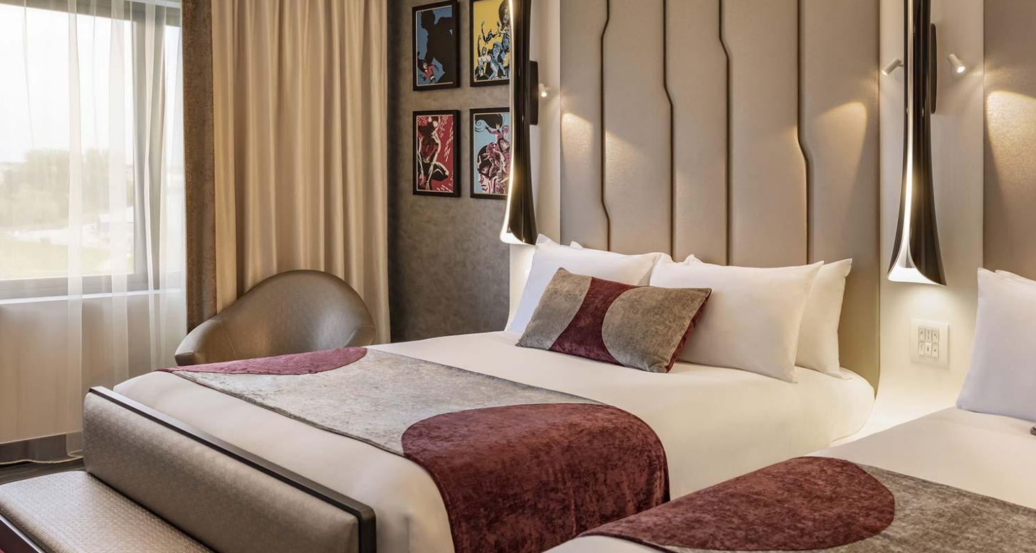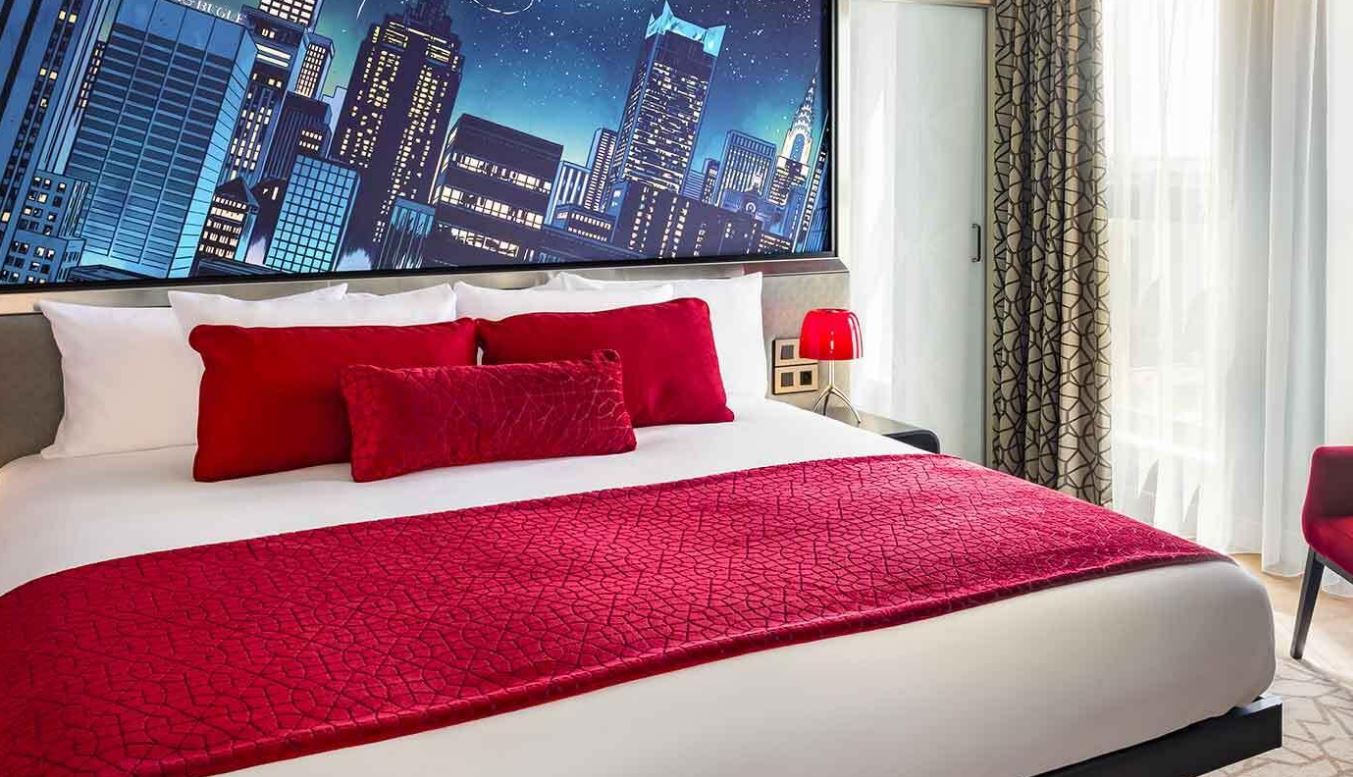 Disney's Hotel New York - The Art of Marvel se encuentra en Chessy, en el distrito de ocio y cerca del paseo marítimo. Zona comercial y de diversión Disney Village y Val d'Europe son lugares imprescindibles para los amantes de las tiendas; añádelos a tu itinerario junto a otros atractivos turísticos como Disneyland® Paris y Walt Disney Studios Park. El hotel ofrece 2 restaurantes, una piscina cubierta y 2 bares o salas. Podrás disfrutar de wifi gratis en las zonas comunes, aparcamiento gratuito y servicio gratuito de traslado desde la estación de tren. También encontrarás un centro de bienestar, un snack bar o delicatessen y una pista de tenis al aire libre. Las 561 habitaciones con sistema de insonorización disponen de wifi gratis y servicio de habitaciones las 24 horas. En tus ratos libres, puedes aprovechar las opciones de entretenimiento como el televisión de pantalla plana con canales por cable, que se suma a otros prácticos servicios, como ropa de cama de alta calidad y cafetera y tetera. Se ofrece servicio de cambio de toallas a petición. Disney's Hotel New York - The Art of Marvel ofrece 561 alojamientos con caja fuerte y cafetera y tetera. Las camas están vestidas con ropa de cama de alta calidad. Se ofrece un televisión de pantalla plana de 55 pulgadas con canales por cable de suscripción. Los baños están equipados con bañera o ducha, artículos de higiene personal gratuitos y secador de pelo. Este hotel en Chessy ofrece acceso a Internet wifi gratis. Los servicios para las personas de negocios incluyen escritorio y teléfono. Las habitaciones también incluyen tabla de planchar con plancha y cortinas opacas. Es posible solicitar cambio de toallas y cambio de sábanas. Se ofrece servicio de limpieza todos los días. En el alojamiento hay piscina cubierta, piscina infantil, piscina al aire libre de temporada y bañera de hidromasaje. Otros servicios de ocio y esparcimiento incluyen una pista de tenis al aire libre, un centro de bienestar y una sauna. Se pueden practicar las actividades de ocio y esparcimiento que se indican más abajo en las instalaciones o cerca del alojamiento (es posible que se aplique un recargo).