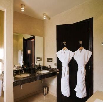 Ubicación - El hotel está situado en el corazón de la Palmeraie de Marrakech. Con sus 2 hectáreas de terreno y las impresionantes vistas de la cordillera del Atlas, es un genuino oasis de paz y tranquilidad. El centro de la ciudad de Marrakech está a 4 km, lo mismo que la medina.. Instalaciones - El hotel fue construido en el año 2008. El alojamiento ofrece a los huéspedes un total de 32 habitaciones. Las instalaciones incluyen un guardarropa, una caja fuerte y una oficina de cambio. En las zonas públicas hay conexión a Internet (por un cargo extra) a disposición de los huéspedes. Hay diferentes instalaciones gastronómicas entre las que escoger, como un restaurante, un comedor, una sala de desayunos y una cafetería. Hay comercios. Además, hay un jardín. Las instalaciones del establecimiento incluyen una sala de juegos. Aquellos que viajen con vehículo propio pueden dejarlo en el aparcamiento del hotel. La oferta disponible incluye servicio de habitaciones, una lavandería y una peluquería.. Habitaciones - Se ofrecen habitaciones con aire acondicionado, calefacción central y un cuarto de baño. El equipamiento de la mayoría de las habitaciones se completa con una terraza que invita a relajarse. Las habitaciones disponen de cama doble o cama king size. Además, hay una caja fuerte y un minibar. Para proporcionar un confort óptimo se ofrecen conexión a Internet, un teléfono y un televisor. Una ducha y una bañera se incluyen en el equipamiento de los cuartos de baño. Además, hay un secador de pelo.. Deporte y ocio - En el recinto así como en los alrededores los huéspedes podrán disfrutar de una variada oferta deportiva y de entretenimiento. viajeros que deseen disfrutar de un descanso activo se sentirán a gusto en el alojamiento. El establecimiento dispone de una piscina al aire libre. Las tumbonas y sombrillas invitan a relajarse. En el bar de piscina se ofrecen bebidas refrescantes. En la zona de ocio, el hotel ofrece tenis, un gimnasio y un solárium, así como, por un cargo extra, masajes. Tarjetas de crédito - En el alojamiento se aceptan las siguientes tarjetas de crédito: American Express, Visa y MasterCard..