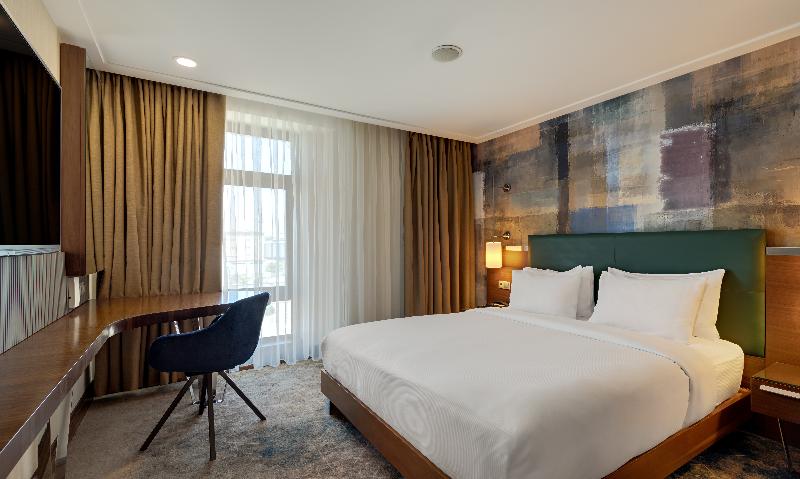 Disfruta de hermosas vistas al lago y de un rápido acceso a la ciudad al alojarte en el DoubleTree by Hilton Hotel Van. Este nuevo hotel está a solo dos kilómetros del Aeropuerto Van Ferit Melen y a 10 minutos del centro de la ciudad. Visita la Catedral de la Santa Cruz en la Isla de Akdamar o el histórico Castillo de Van y la Ruta de la Seda, todos a poca distancia del hotel. Los principales bancos, empresas y la Ciudad Textil están a 15 minutos. Te recibiremos en el check-in con una cálida galleta DoubleTree con chispas de chocolate. Acomódate en una espaciosa habitación con wifi gratuito, HDTV de 42 pulgadas, escritorio y silla ergonómica, y vistas a la montaña y al lago. Algunas habitaciones también tienen un balcón amueblado. Elige una suite para disfrutar de una sala de estar independiente con sofá. Nuestro hotel en Van cuenta con seis restaurantes y salones con sabrosa cocina internacional. Prueba un desayuno tradicional de Van en el Restaurante Esperanza o contempla la ciudad desde la última planta en el Barde Cielo. Un bar de sangría, un bar de vitaminas, el Lobby Coffee Bar y un restaurante de temporada al aire libre son otras deliciosas opciones. El DoubleTree Van tiene opciones de recreación familiar cubiertas con una piscina cubierta y una piscina para niños, un gimnasio abierto las 24 horas y un Kinder Garden interior/exterior. El hotel también ofrece servicio de niñera, perfecto para una tarde de indulgencia en el Spa La Belleza. Organiza una convención para 1000 invitados o una recepción de boda para 650 invitados en uno de los centros de conferencias más grandes de la ciudad, convenientemente conectado al hotel. Adelanta tu trabajo en nuestro centro de negocios abierto las 24 horas.