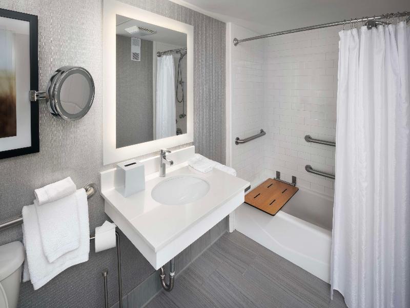 Mi primera estancia en el Doubletree fue agobiante. La decoración en general es oscura y sombría. Mi habitación estaba en el lado de la piscina y el ruido constante de agujero de maíz? y piscina...
