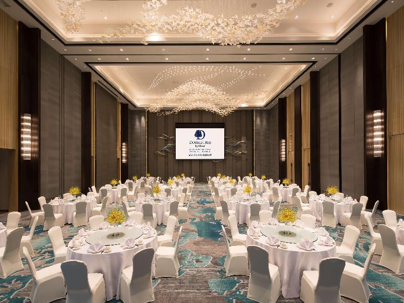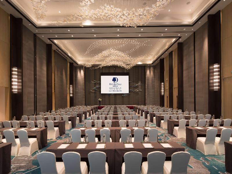 El DoubleTree by Hilton Qingdao Oriental Movie Metropolis se encuentra en el distrito Huangdao de la ciudad de Qingdao, cerca de las zonas económicas y tecnológicas. Estamos a una hora de la estación de Qingdao y la estación norte de Qingdao, y a 90 minutos del aeropuerto Qingdao Liuting. Disfruta de fácil acceso a destinos populares como Golden Beach, Wanda Plaza, Langyatai, Tangdao Bay y Xiaozhushan. Te esperamos con nuestra distintiva galleta de chispas de chocolate a tu llegada. Nuestro elegante hotel ofrece espaciosas habitaciones y suites que cuentan con una larga lista de comodidades, amplios escritorios y wifi gratuito, también disponible en todo el hotel. Si te alojas en habitaciones y suites ejecutivas, disfrutarás de comodidades adicionales y acceso exclusivo al Executive Lounge con desayuno y wifi de cortesía, además de refrigerios durante todo el día. Saborea deliciosas opciones gastronómicas en uno de los tres establecimientos del hotel. Nuestro restaurante abierto todo el día ofrece una variedad de bufés, que incluyen especialidades asiáticas y occidentales como sushi, dim sum, fideos y carnes asadas preparadas en estaciones de cocina en vivo. Disfruta de una cena íntima en uno de los reservados semiprivados del restaurante chino o relájate en el Lobby Lounge con cómodos asientos, una decoración sofisticada y un excelente menú de bar. También disponemos de comedores privados. Después de un día ajetreado, date un chapuzón en la piscina cubierta o haz ejercicio en el moderno gimnasio. Nuestro hotel en Qingdao ofrece 1390 m² de espacio para reuniones, incluyendo un salón de baile de 600 m², perfecto para bodas y recepciones.
