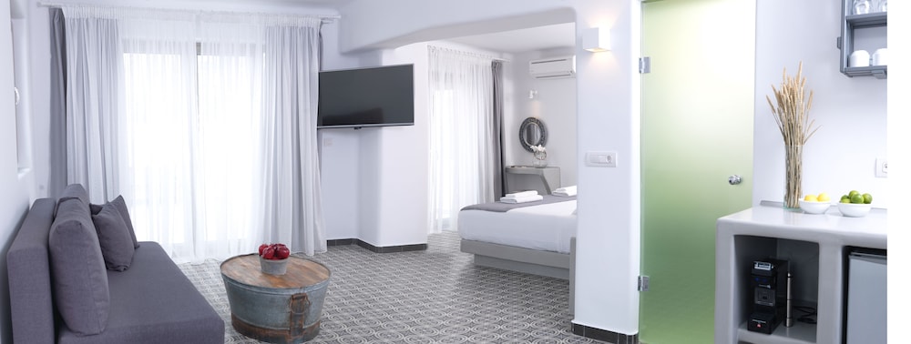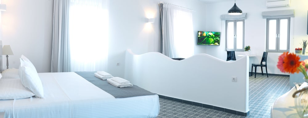 Si te alojas en Drops villas, en Santorini (Messariá), estarás a pocos minutos de Museo del Vino de la Isla de Santorini y Museo Prehistórico de Thera. Esta villa se encuentra cerca de Aegean Divers Dive Center - Day Excursions y de Centro artístico Art Space Santorini.Habitaciones Reserva una de las 3 habitaciones climatizadas, todas dotadas de cocina básica con frigorífico y máquina de café espresso. Las habitaciones disponen de balcón amueblado. La conexión a Internet wifi gratis te permite comunicarte con los tuyos, y en tus ratos libres tendrás televisor de plasma de 40 pulgadas y reproductor de DVD para entretenerte. Las comodidades incluyen minibar, además de un servicio de limpieza disponible todos los días y la posibilidad de solicitar cunas gratuitas.Servicios Aprovecha las instalaciones recreativas, que incluyen bañera de hidromasaje y piscina al aire libre de temporada. Se ofrece además conexión a Internet wifi gratis, servicios de conserjería y servicio de canguro (de pago).Para comer Aprovecha el servicio de habitaciones con horario limitado de esta villa.Servicios de negocios y otros Tendrás conexión a Internet de alta velocidad por cable (gratuita), servicio de tintorería y depósito de equipaje a tu disposición. Hay un aparcamiento sin asistencia gratuito disponible.