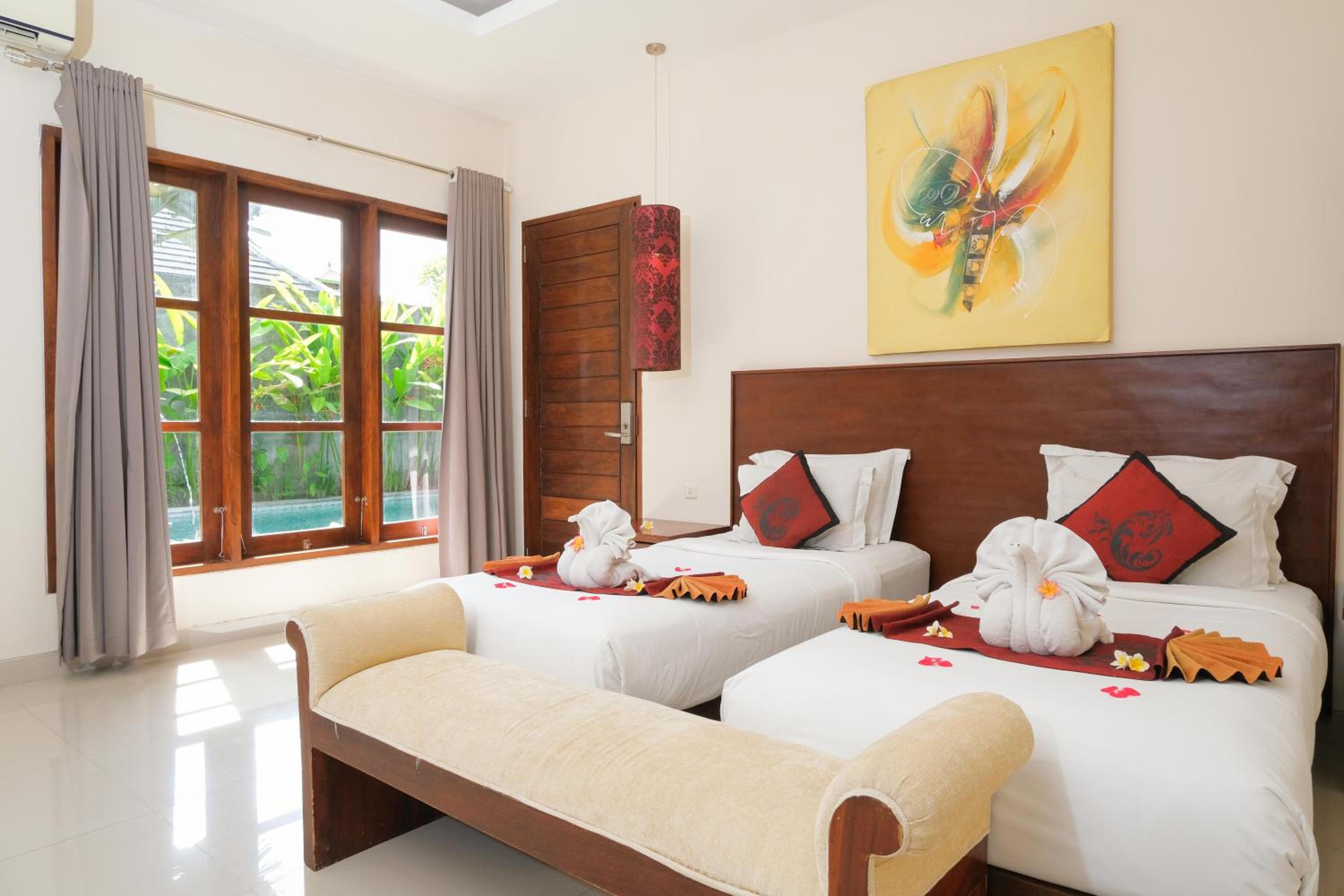 D'Sawah Bali Villas and Spa se sitúa en Kerobokan, a poca distancia de Ulun Danu Temple y de Plaza Seminyak. Esta villa de 4 estrellas se encuentra muy cerca de Kerobokan Jail y Playa Berawa.Habitaciones En las 30 habitaciones climatizadas, equipadas con piscina privada, te espera una estancia inolvidable. La cocina básica está equipada con frigorífico/congelador grande, placa de cocina y microondas. La conexión a Internet wifi gratis te mantendrá en contacto con los tuyos; también podrás ver tu programa favorito en el televisor con canales por cable. Las comodidades incluyen caja fuerte y escritorio, además de un servicio de limpieza disponible todos los días.Servicios Con piscina al aire libre y muchas otras instalaciones recreativas a tu disposición, no te quedará ni un minuto libre. Tienes también una terraza y jardín donde sentarte a contemplar el paisaje.Para comer Se sirve un desayuno gratuito.Servicios de negocios y otros Tendrás servicio de tintorería, servicio de recepción 24 horas y depósito de equipaje a tu disposición. Hay un aparcamiento sin asistencia gratuito disponible.