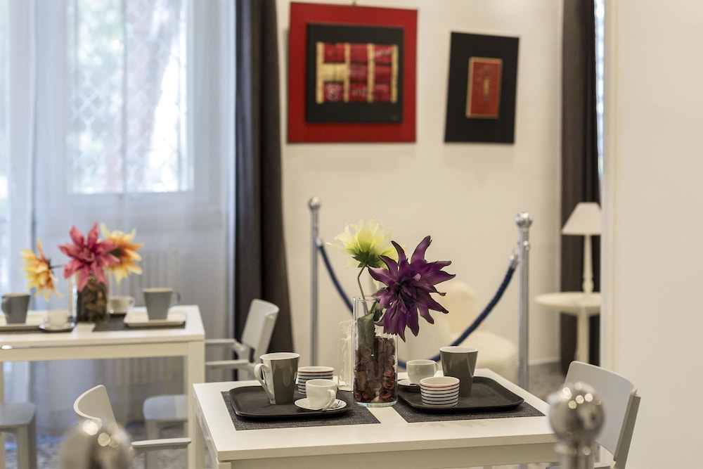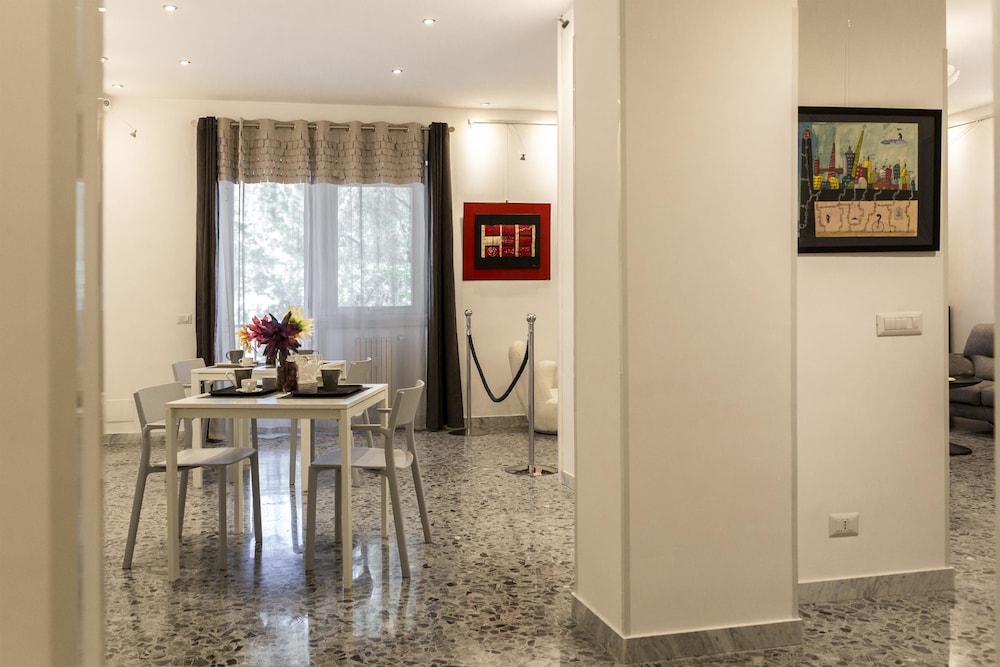 Facilities and services include car parking, free Wi-Fi, family rooms, non-smoking rooms, daily housekeeping, terrace, tea and coffee maker.All guest rooms come with air conditioning, a microwave, a fridge, a kettle, a bidet, a hairdryer and a desk. At the guest house the rooms come with a flat-screen TV, a private bathroom, and a patio with a garden view.Address: Angelo Emo 147, scala D int 5, Trionfale, 00136 Rome, Italy