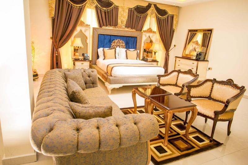 El aeropuerto más cercano es el Aeropuerto Internacional de Port Harcourt, a 1 hora en coche. Disfrutarás de un entorno tranquilo y seguro durante tu estancia. Cada habitación del Echelon Heights Hotel cuenta con aire acondicionado, escritorio completo, albornoz, baño amplio y refrigerador. El hotel también ofrece un restaurante y un bar que sirven una variedad de platos locales e internacionales. Los servicios disponibles incluyen servicio de habitaciones, servicio de conserjería y servicio de lavandería. También puedes solicitar servicio de transporte y disfrutar de aparcamiento gratuito.