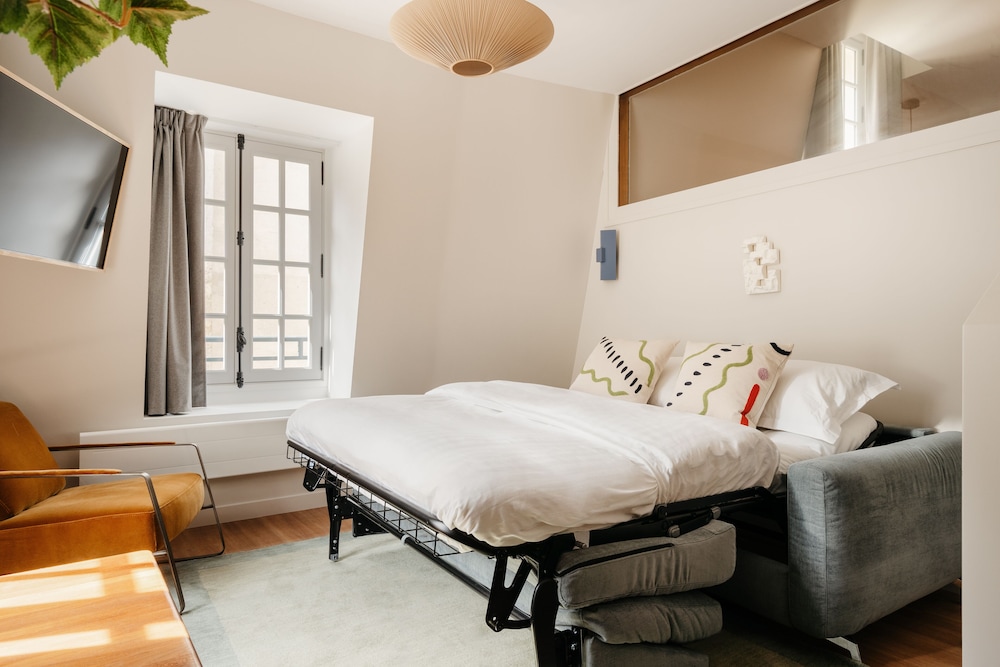 Facilities and services include air conditioning, Wi-Fi access, elevator, laundry, shuttle service(extra charge), and airport shuttle (extra charge).Rooms feature a flat-screen TV, Air conditioning, Wi-Fi access, private bathroom, bath or shower, and hairdryer. Address: 25 Rue du Jour 75001 Paris